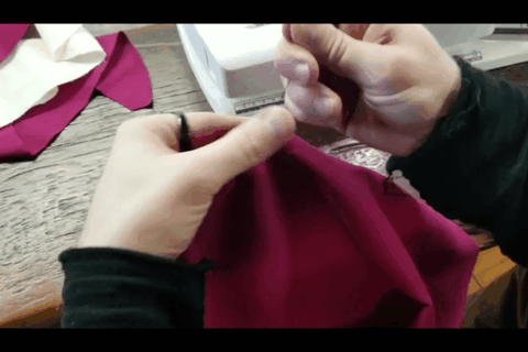 Carefully pull the loose end and "ease" the fabric over towards the tied end. Do this a little bit at a time, and smooth it out as shown in the video. You want your ease stitch to pull your sleeve cap into a slight dome shape, but not tight enough to pucker.