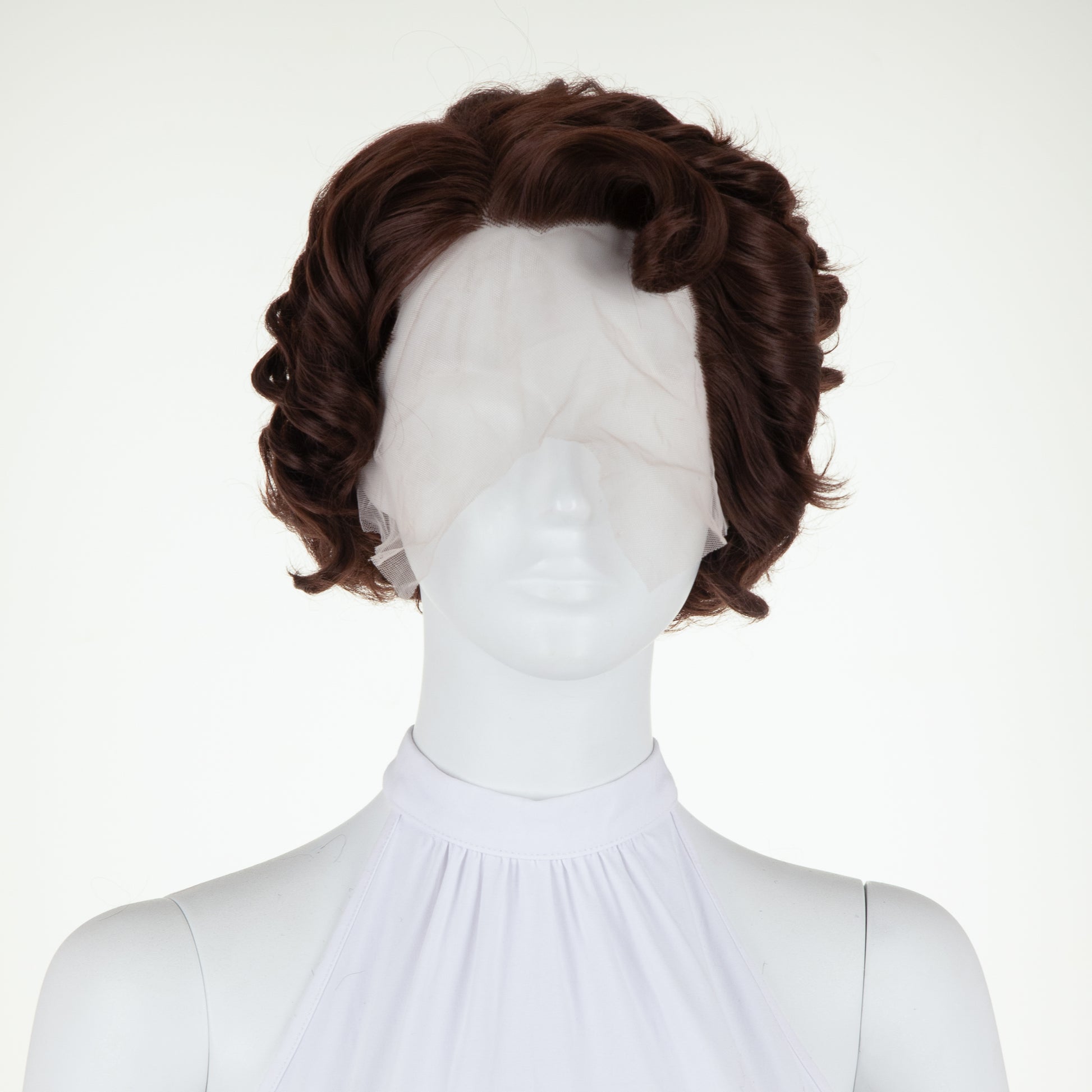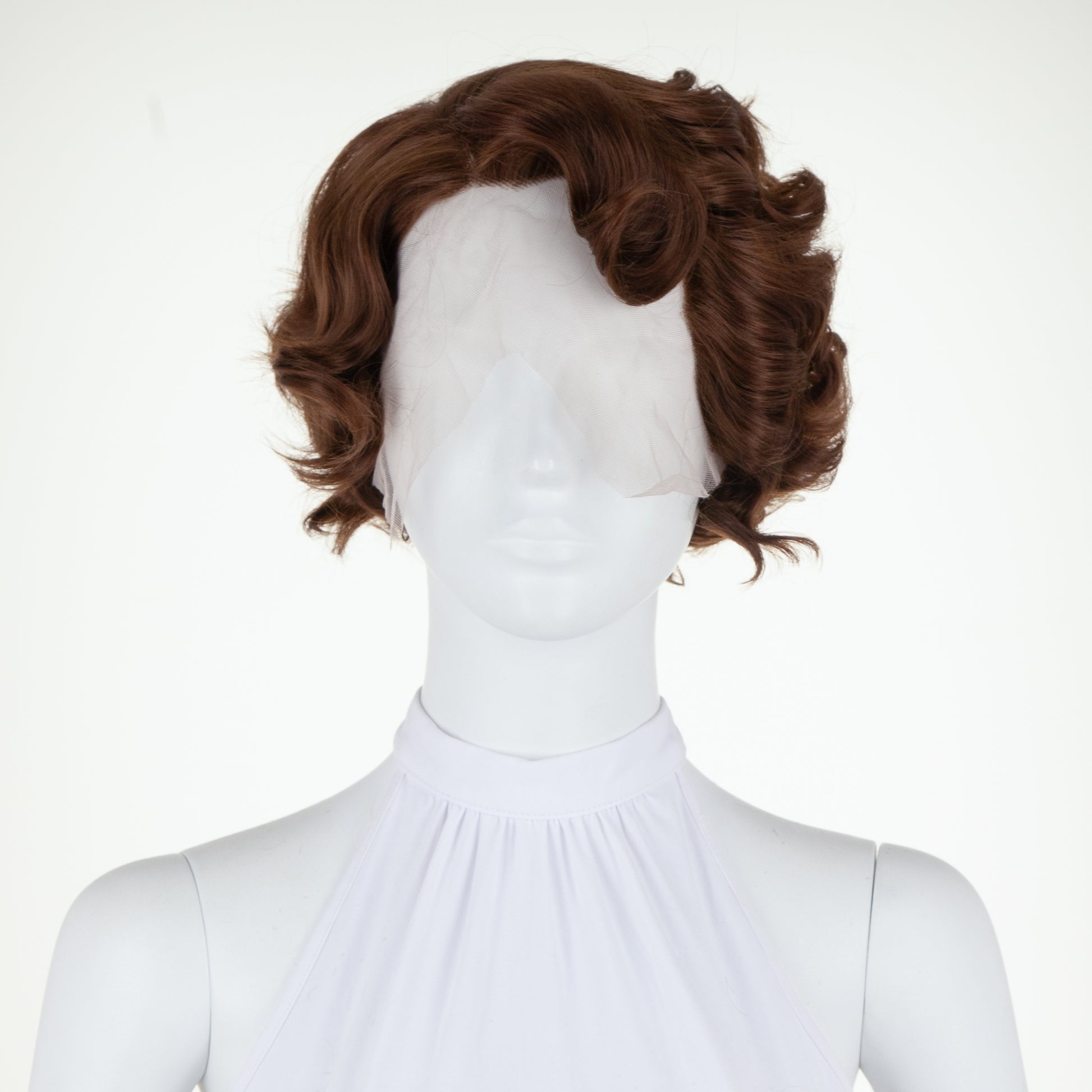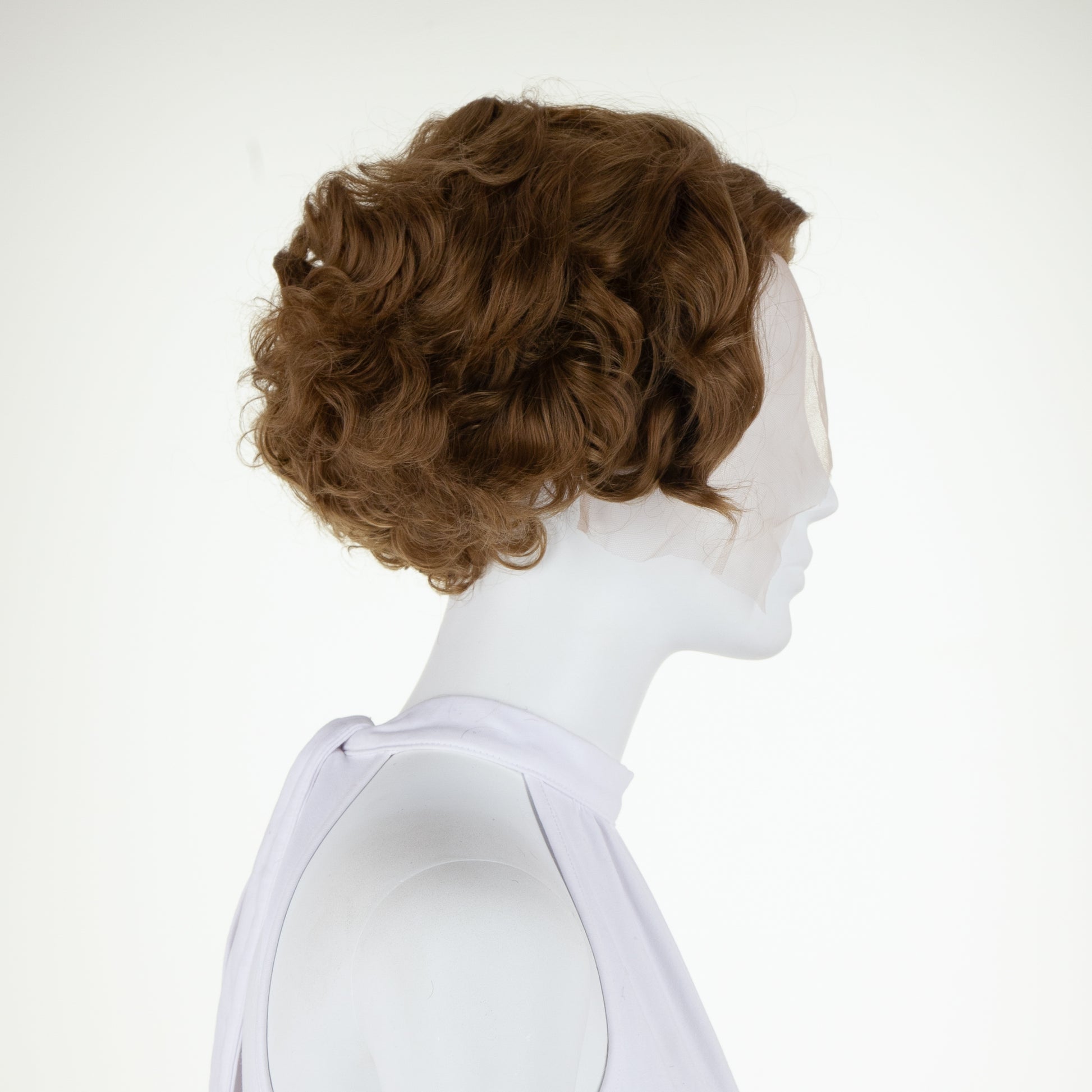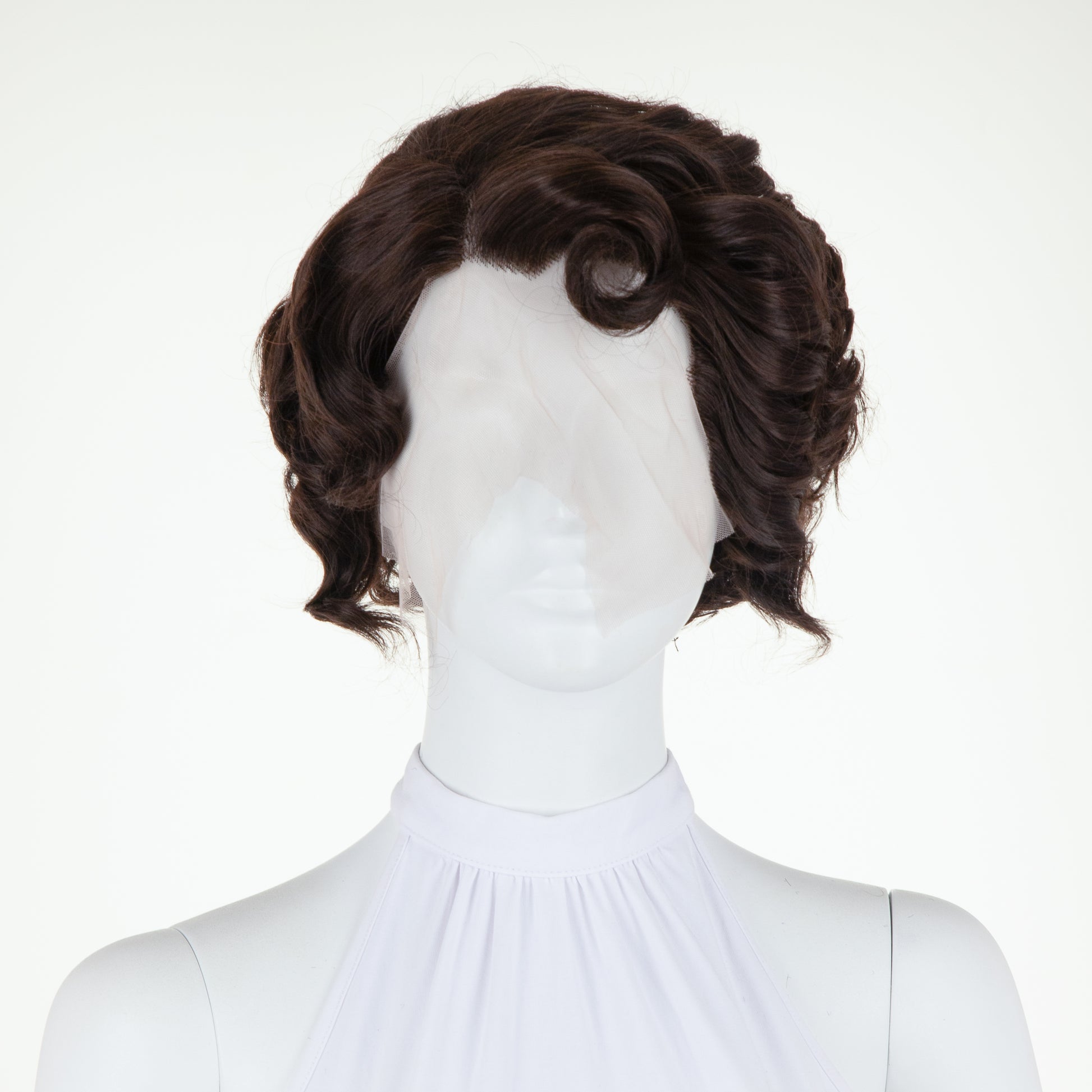 The Elrond is a short curled lace front wig with a longer front and sides and a short back.
