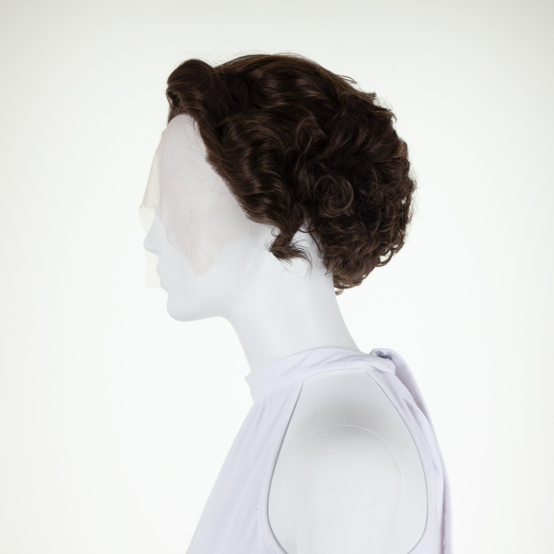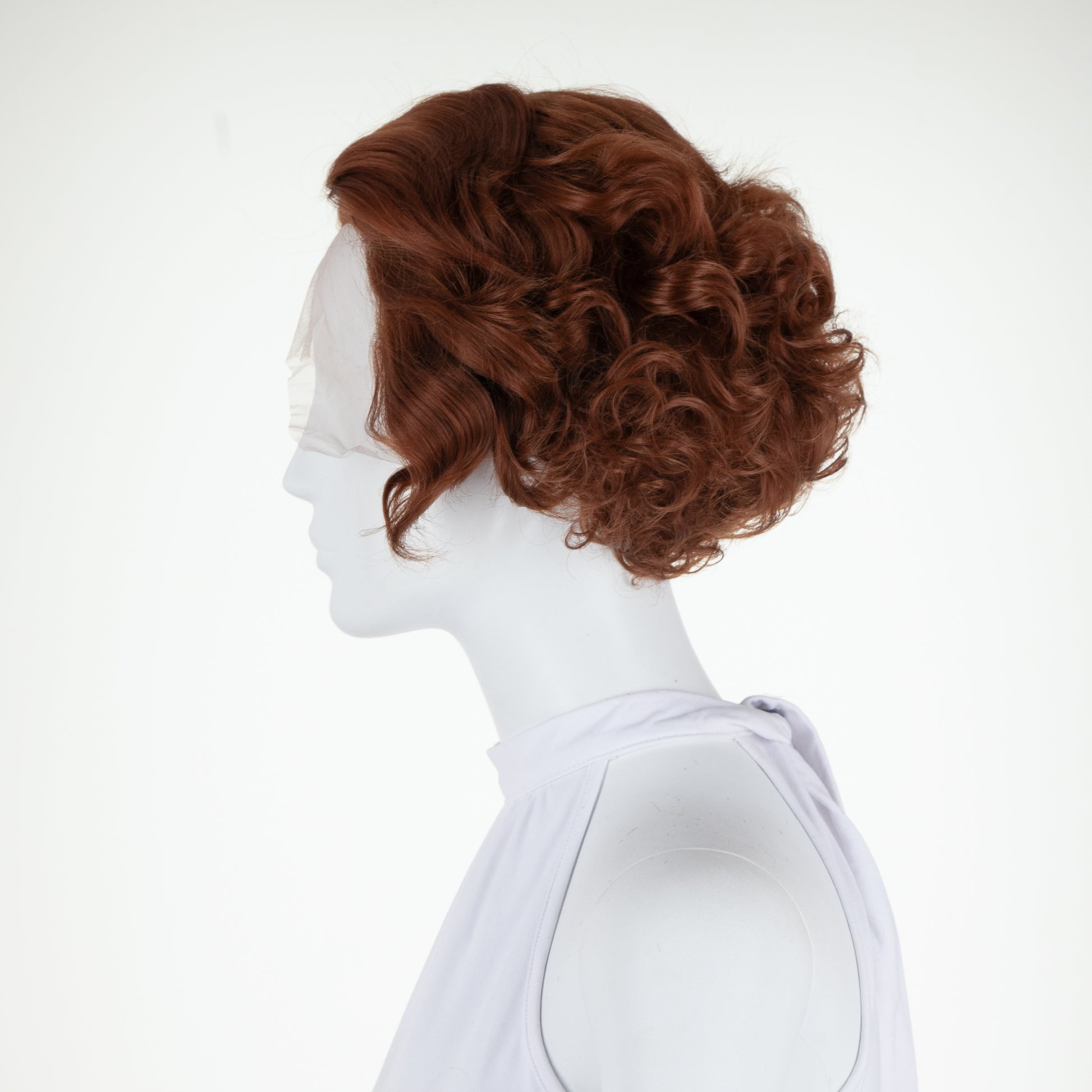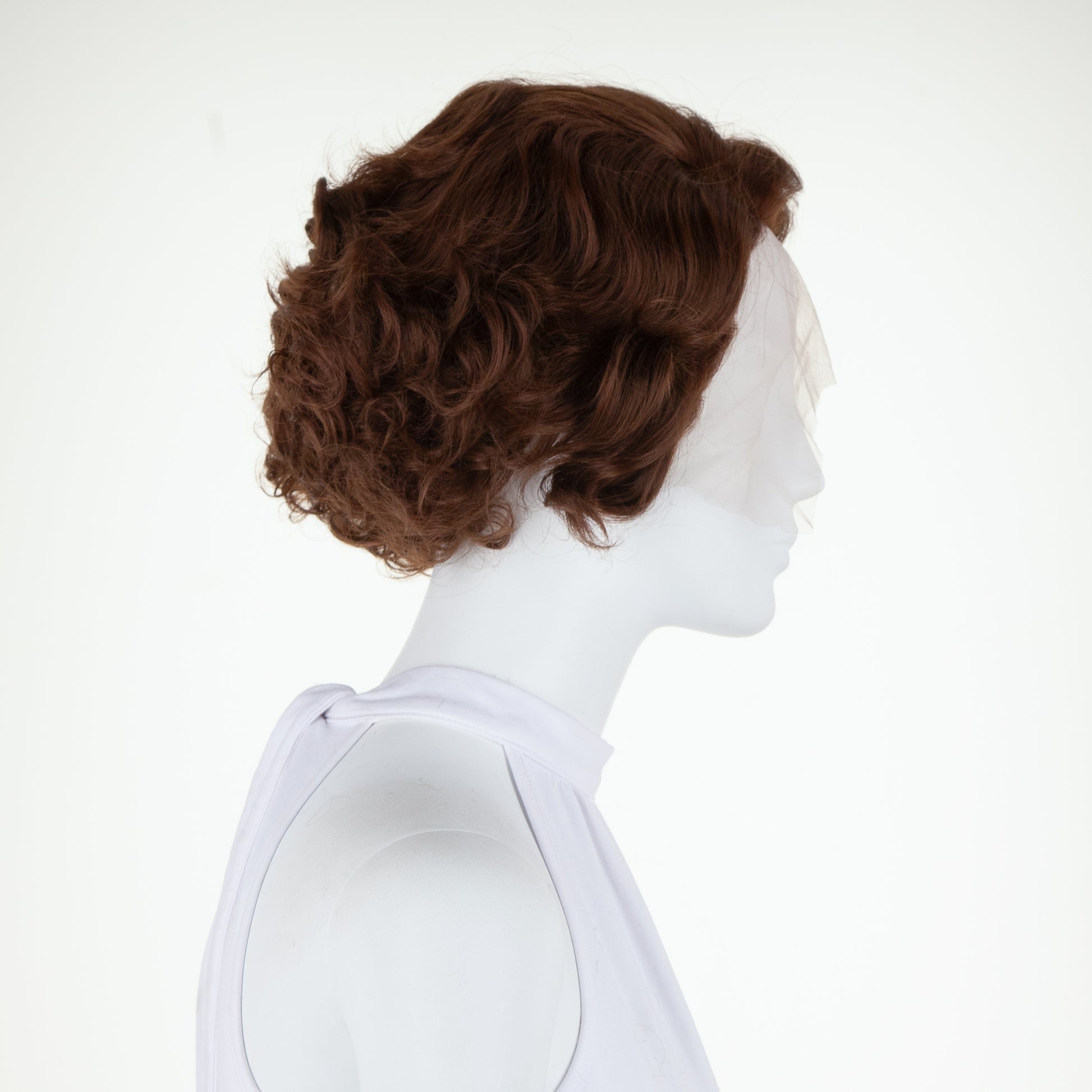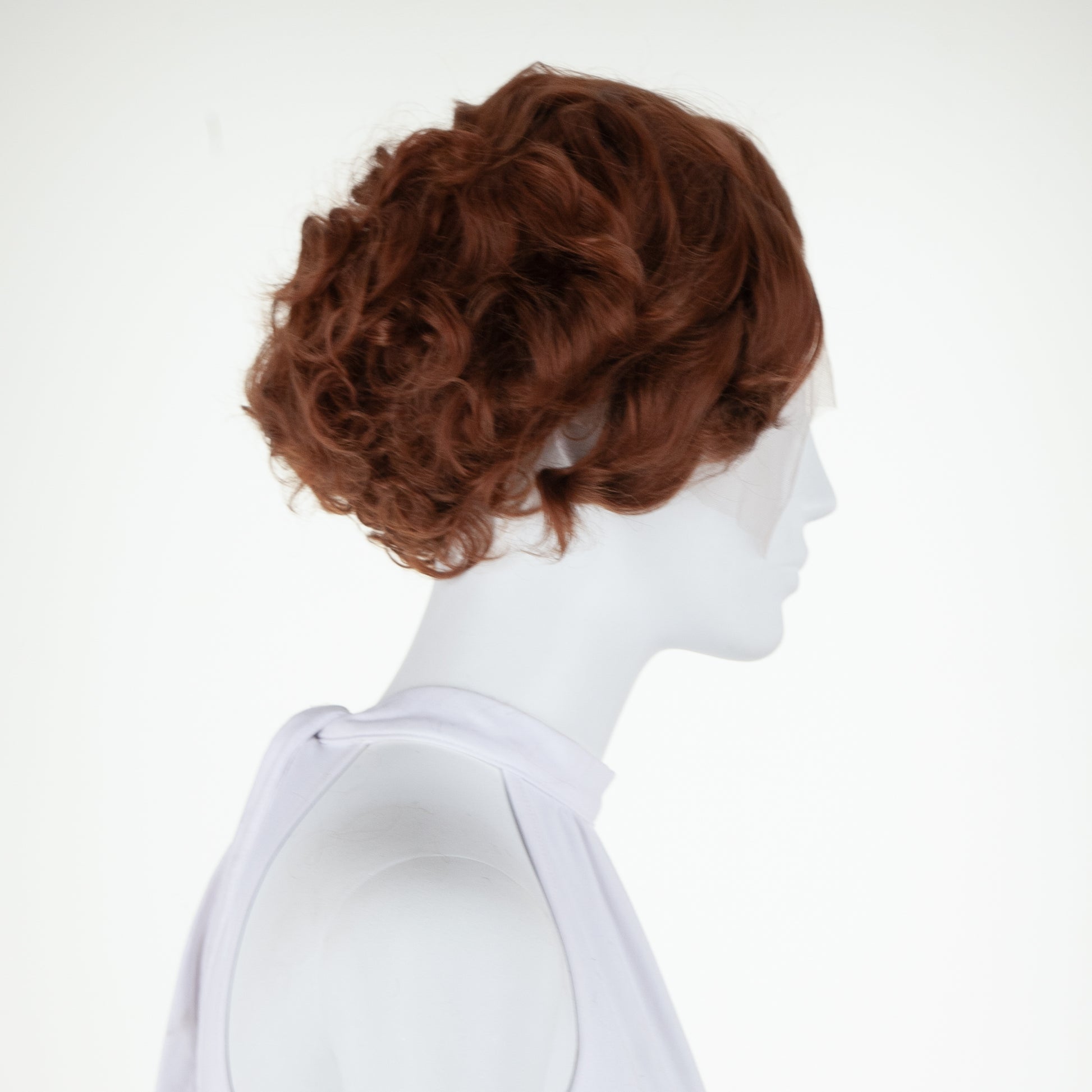 The Elrond is a short curled lace front wig with a longer front and sides and a short back.