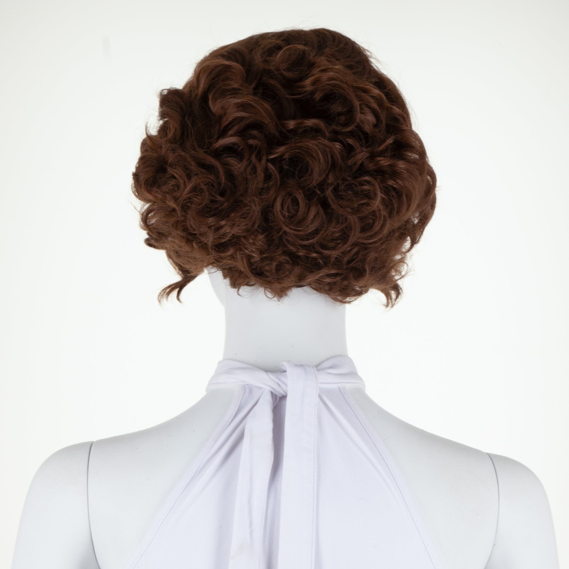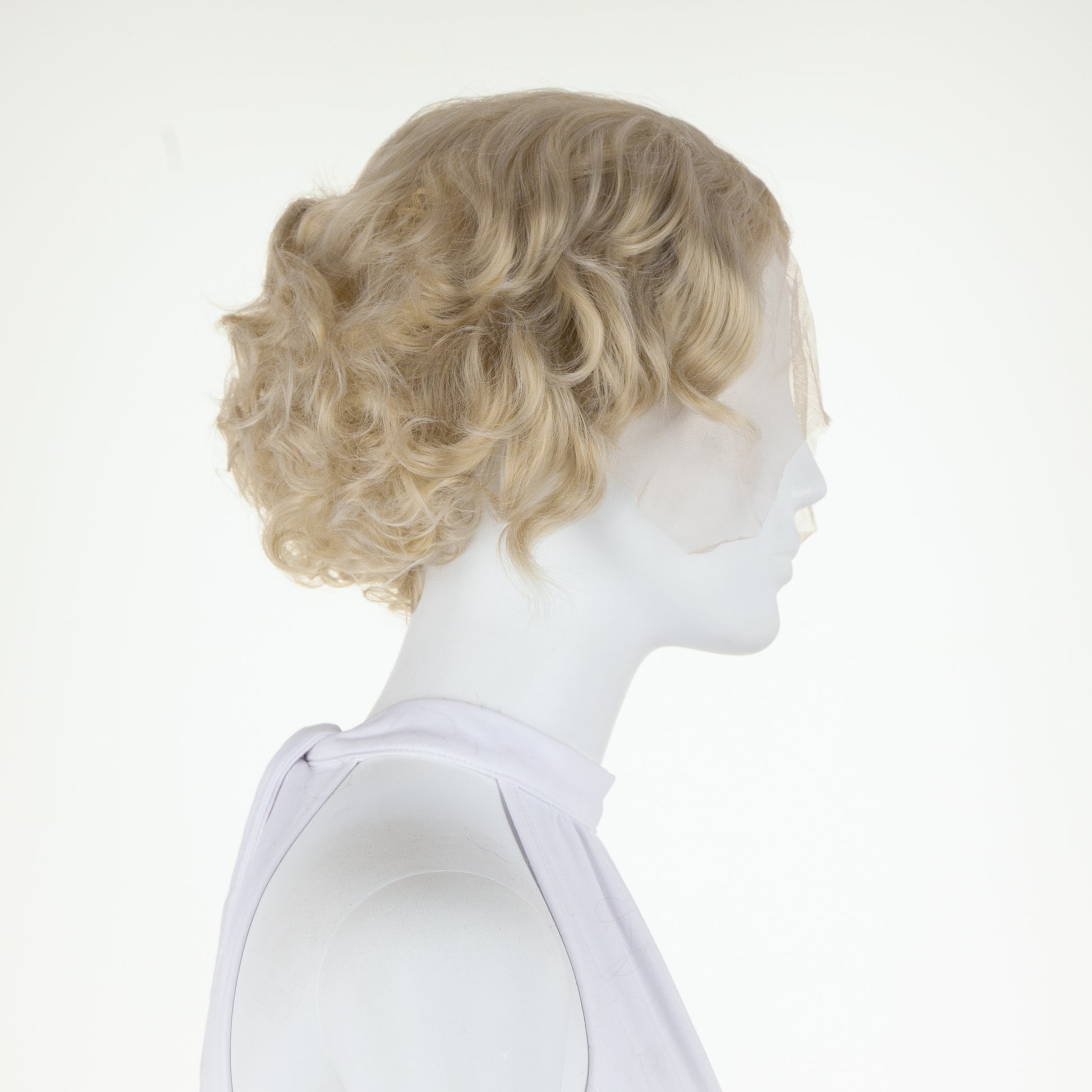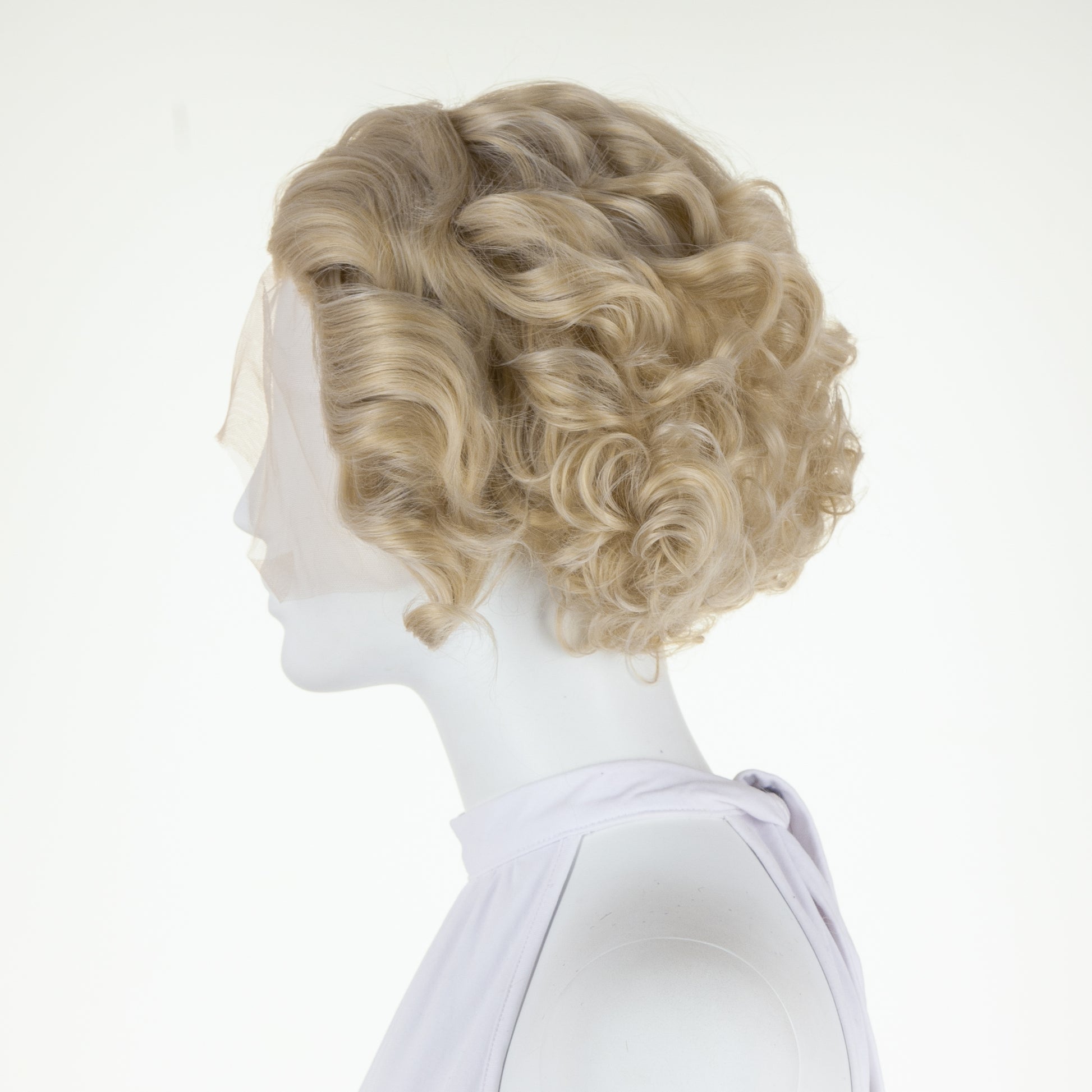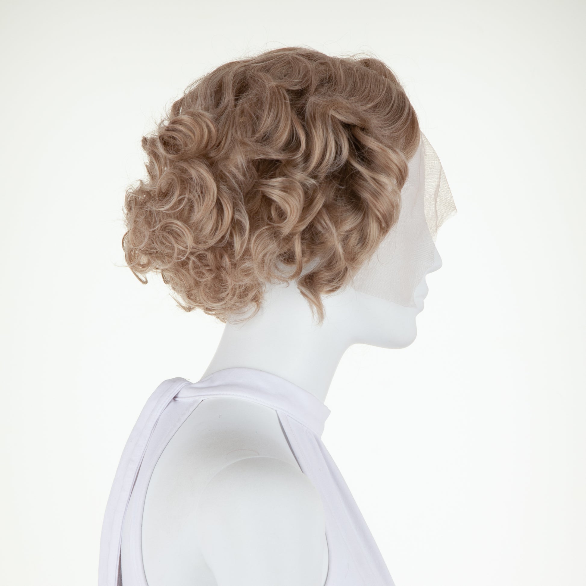 The Elrond is a short curled lace front wig with a longer front and sides and a short back.