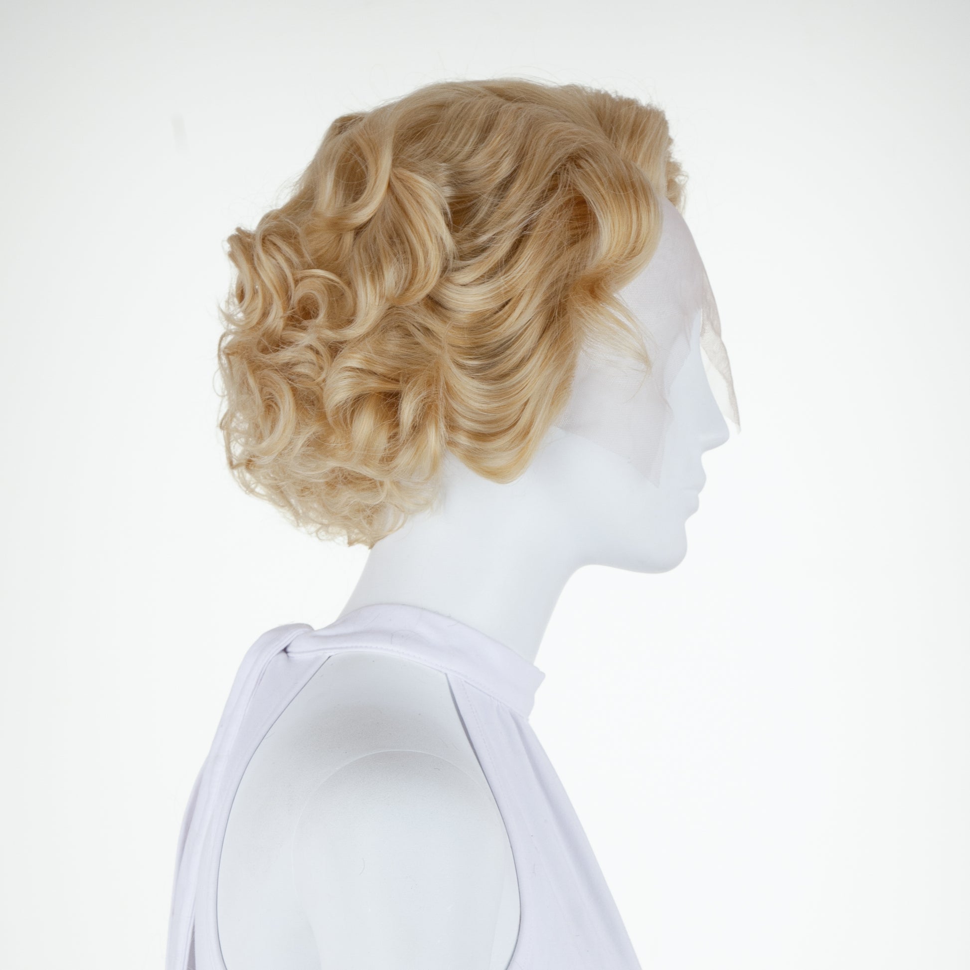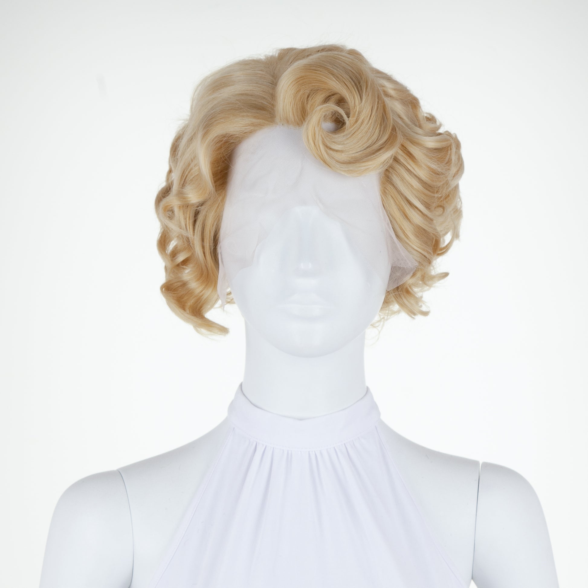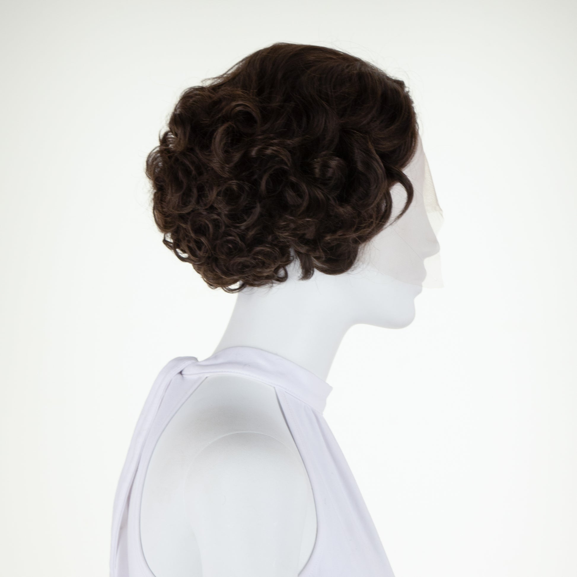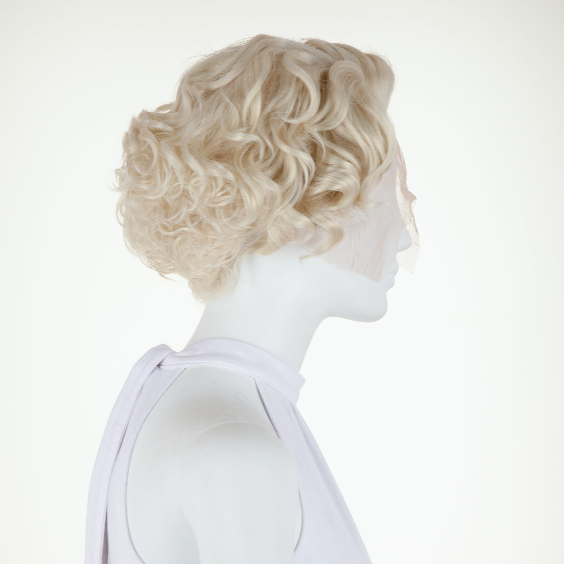 The Elrond is a short curled lace front wig with a longer front and sides and a short back.
