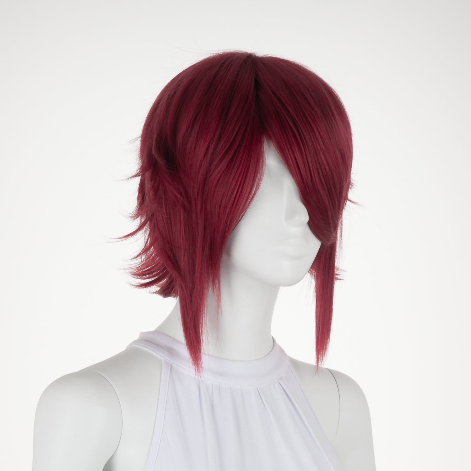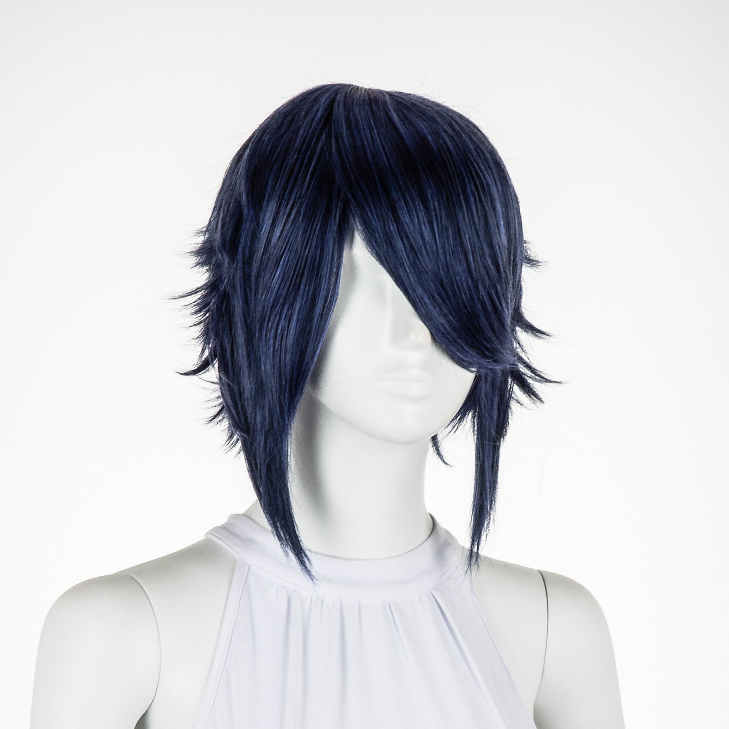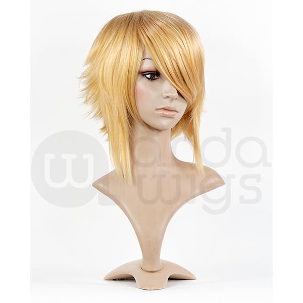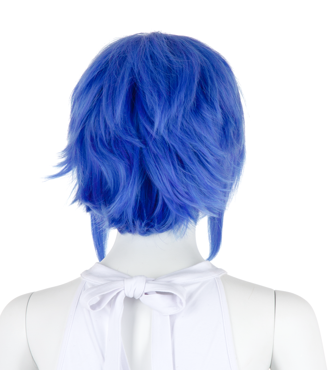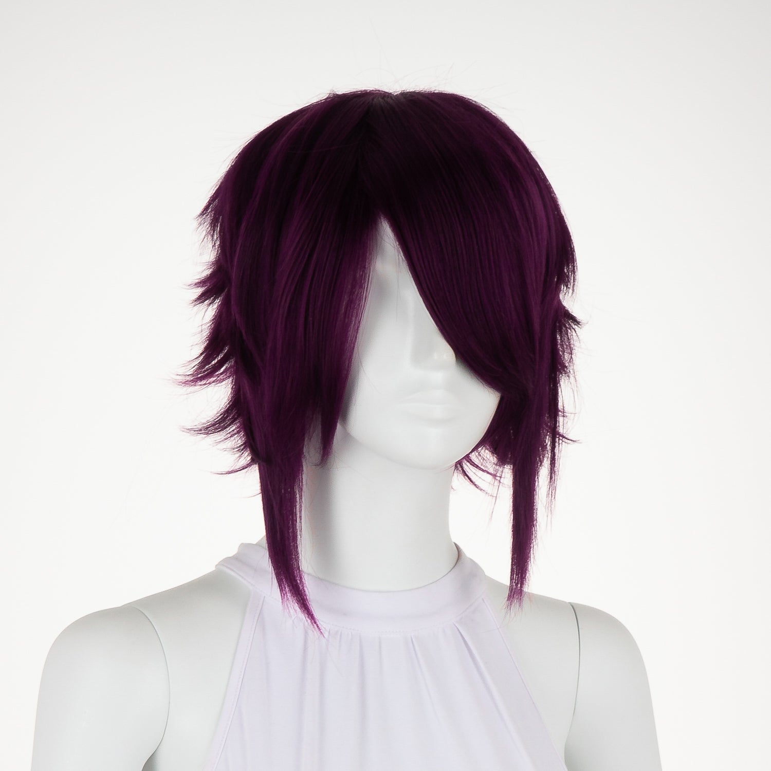 This wig has short, choppy layers in the back with long side sections at the ears. The bangs are long and reach just around the nose on a person. Jaguar's overall length measures 5'' to 6'' (13 cm to 15 cm). This wig has a crimped top - thick and great for spiking, teasing, fluffing, or leaving as-is.