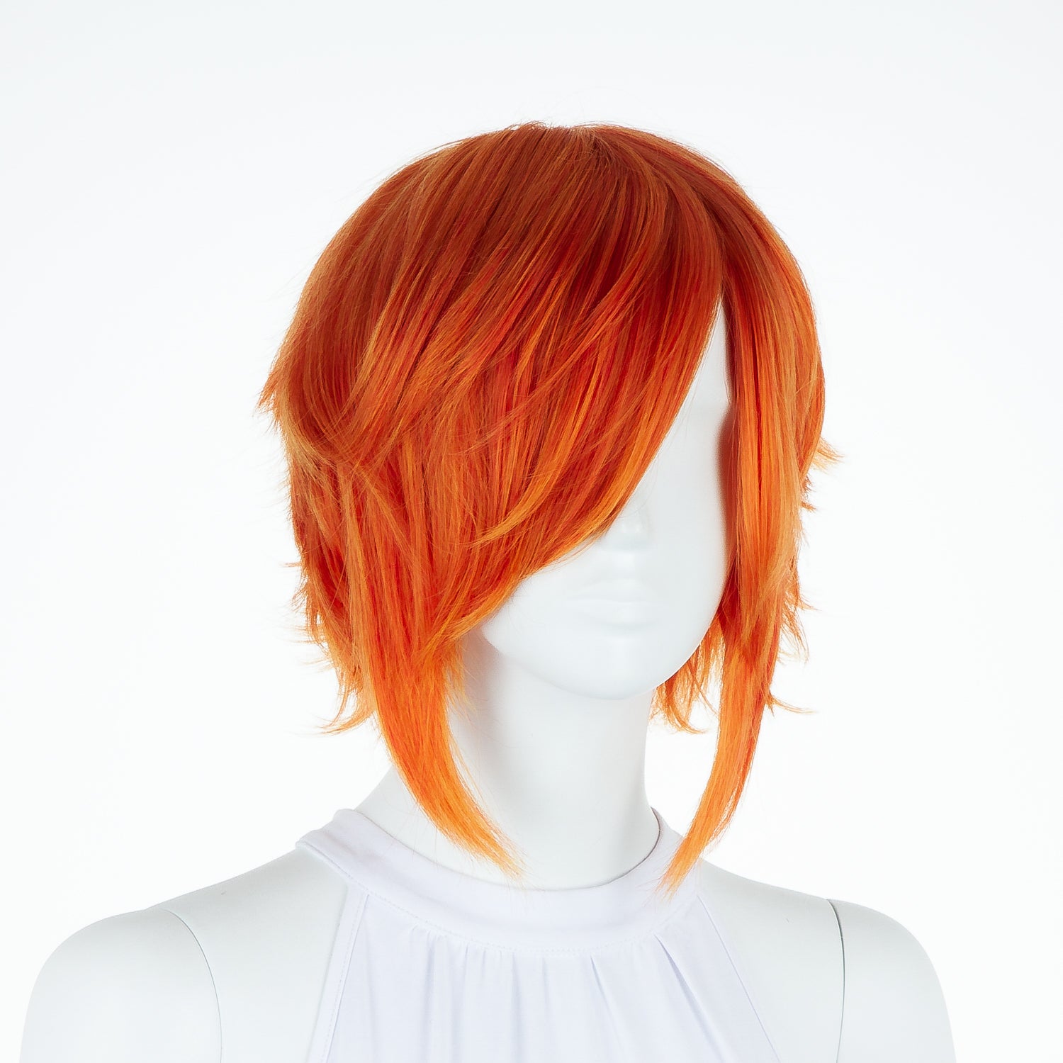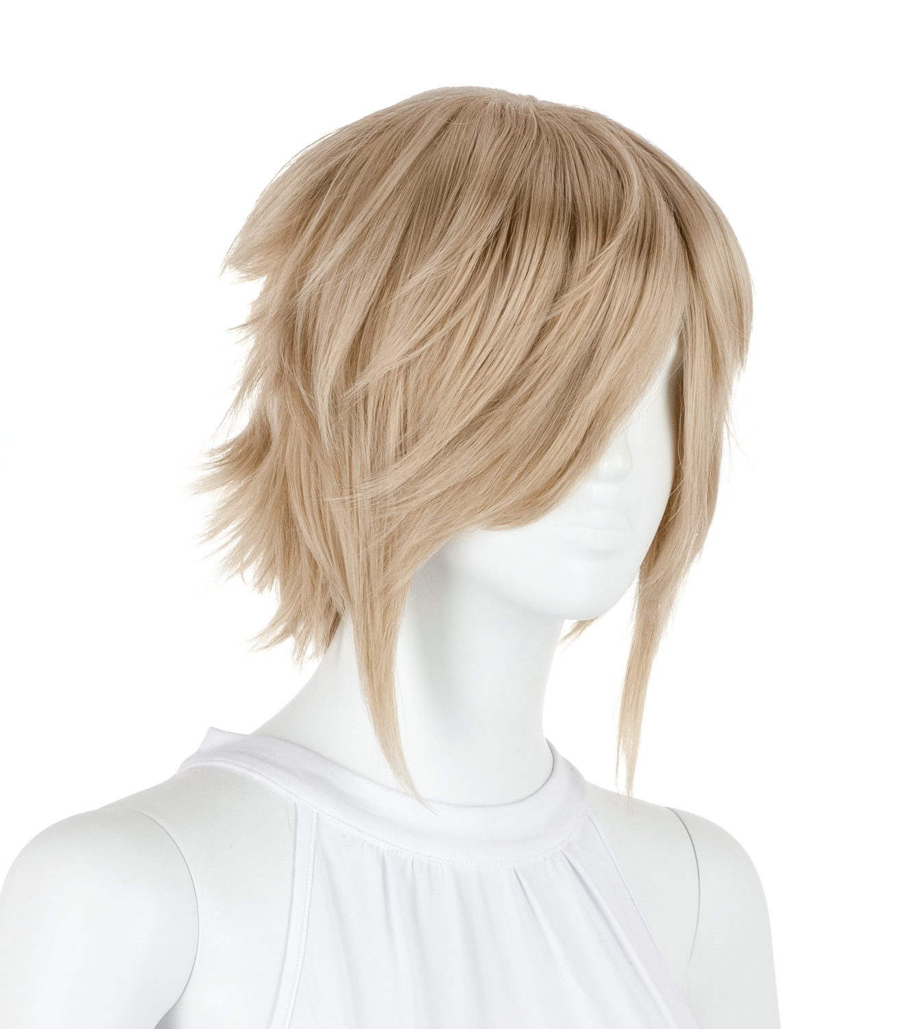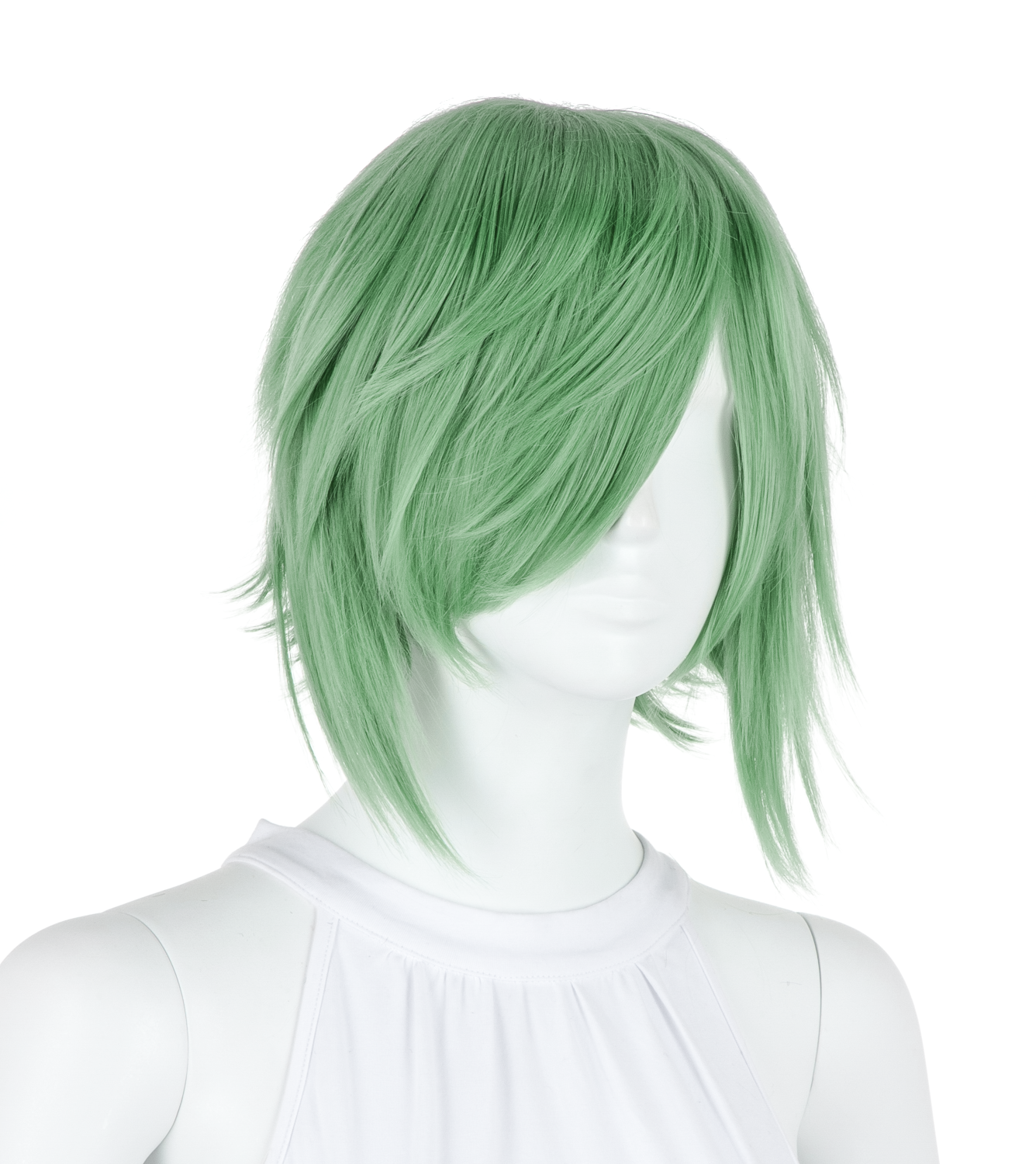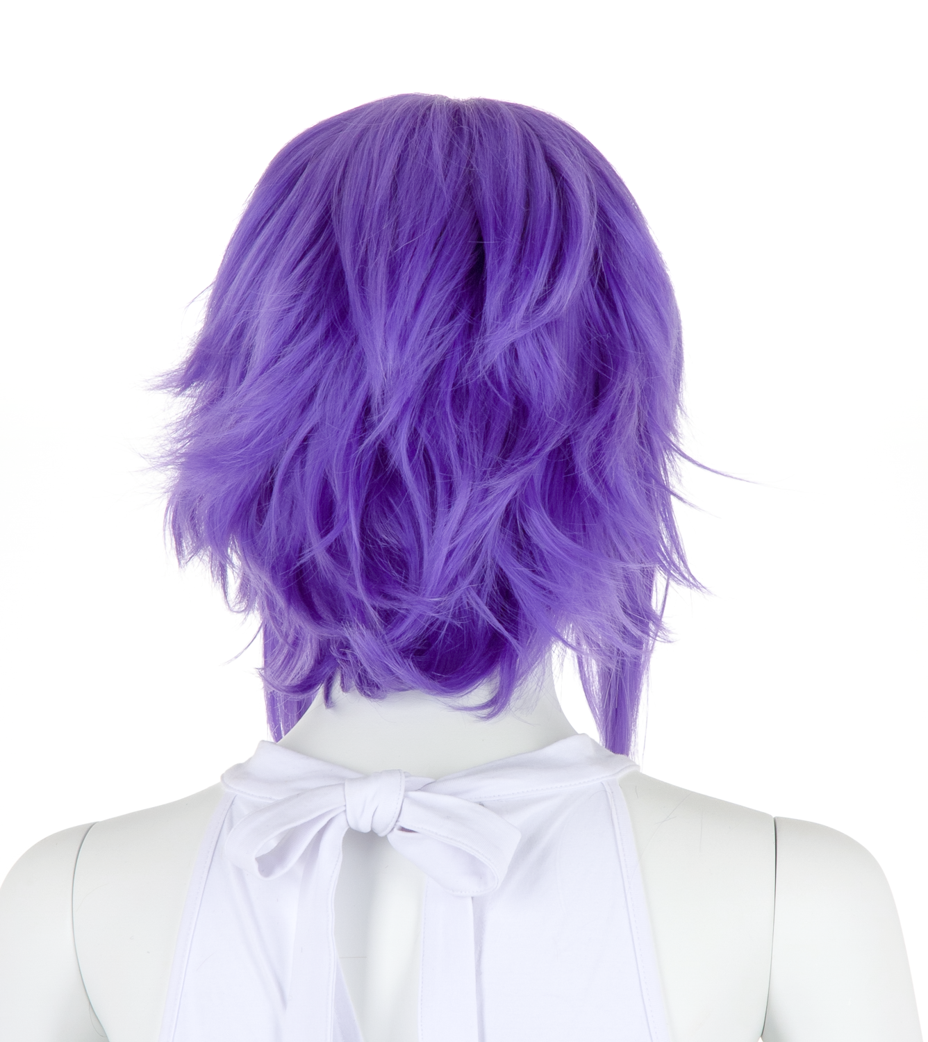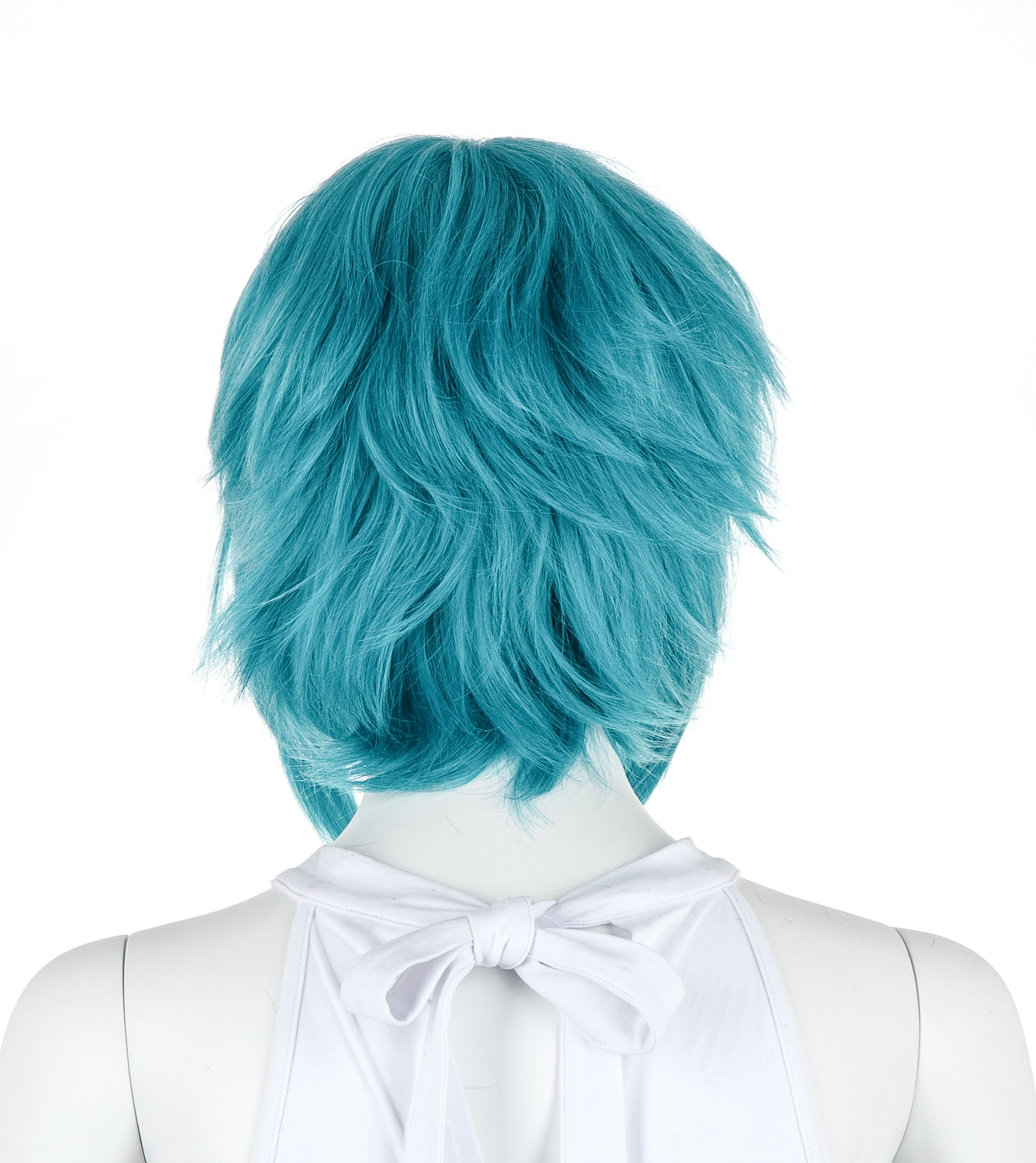 This wig has short, choppy layers in the back with long side sections at the ears. The bangs are long and reach just around the nose on a person. Jaguar's overall length measures 5'' to 6'' (13 cm to 15 cm). This wig has a crimped top - thick and great for spiking, teasing, fluffing, or leaving as-is.