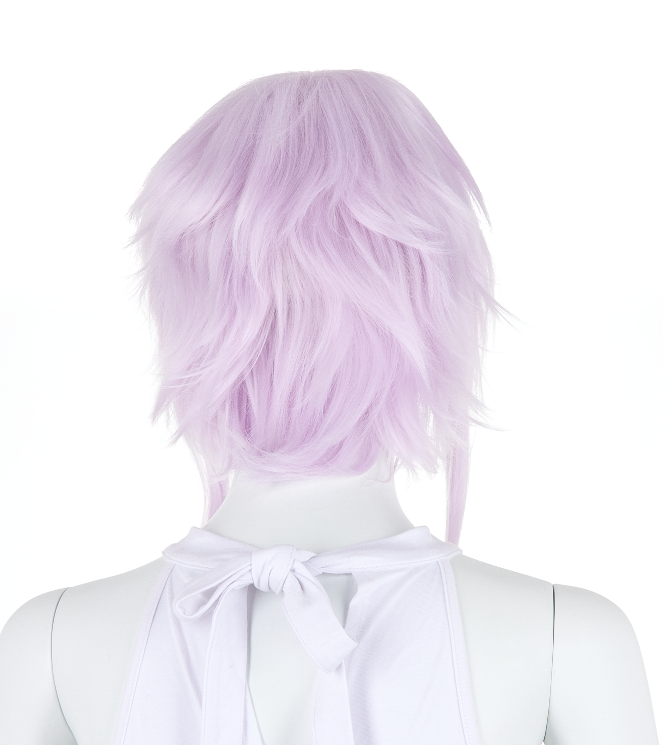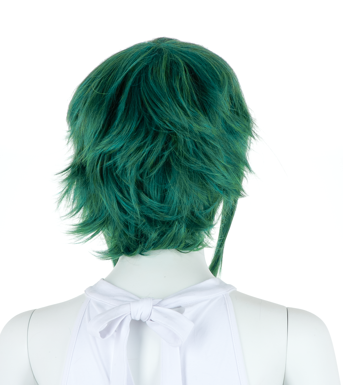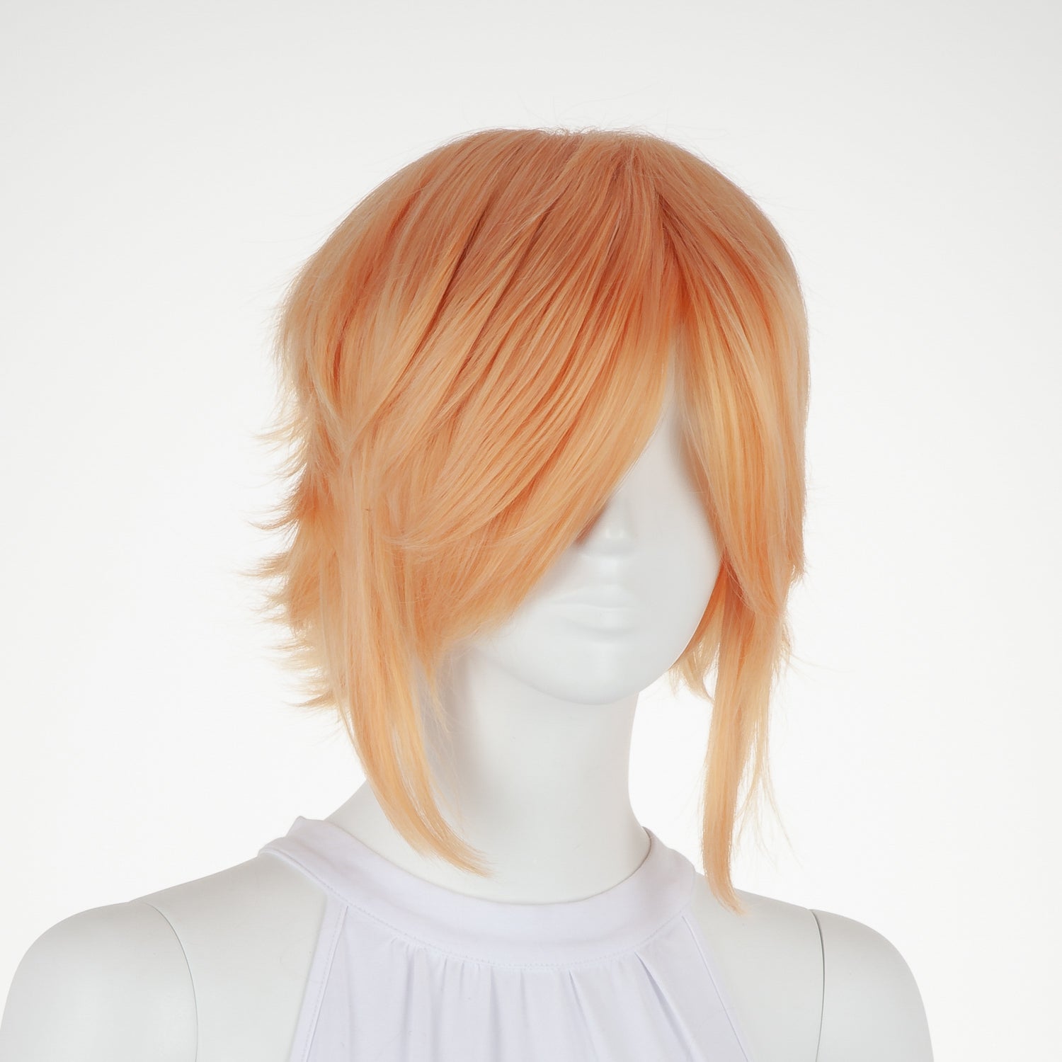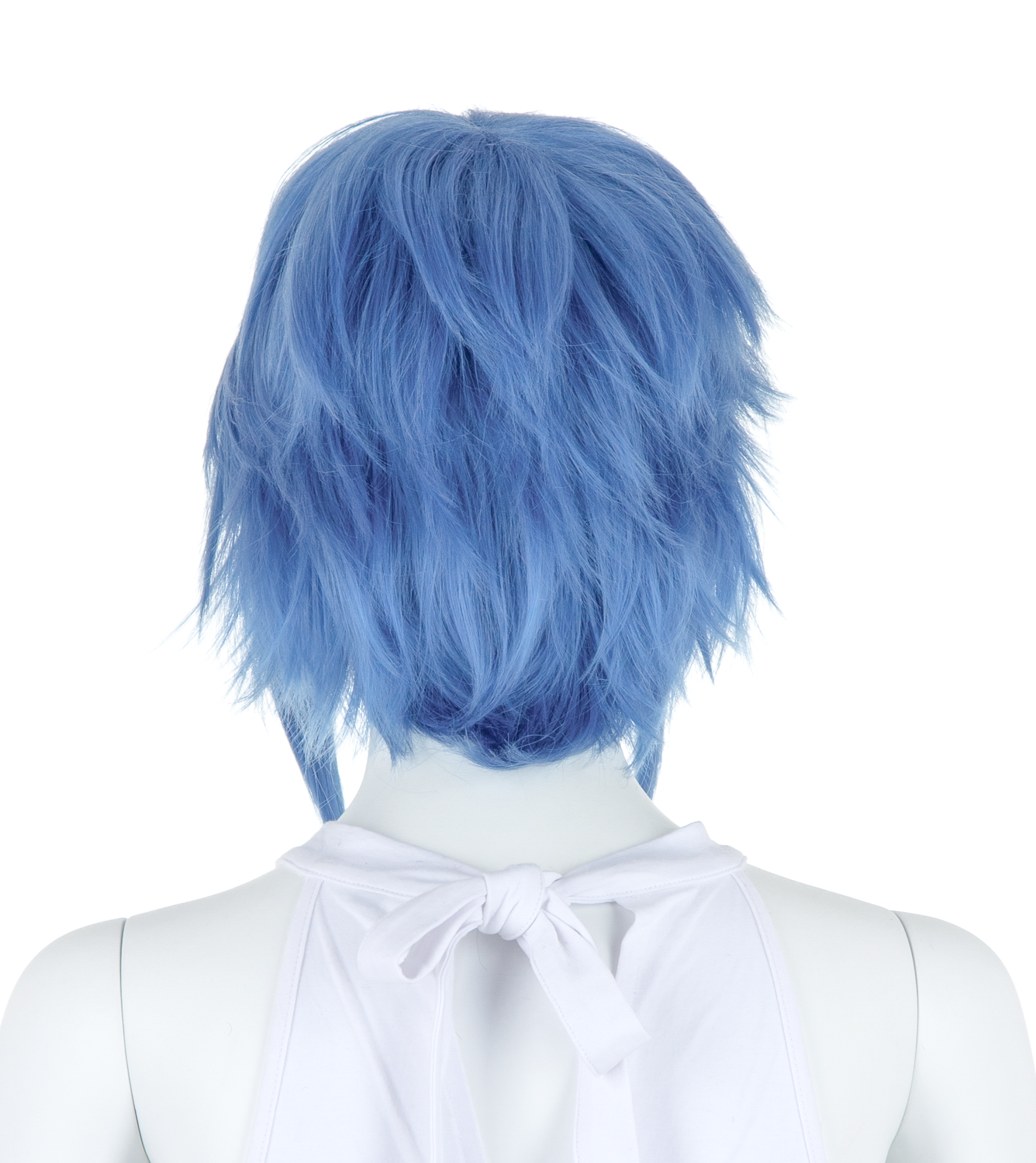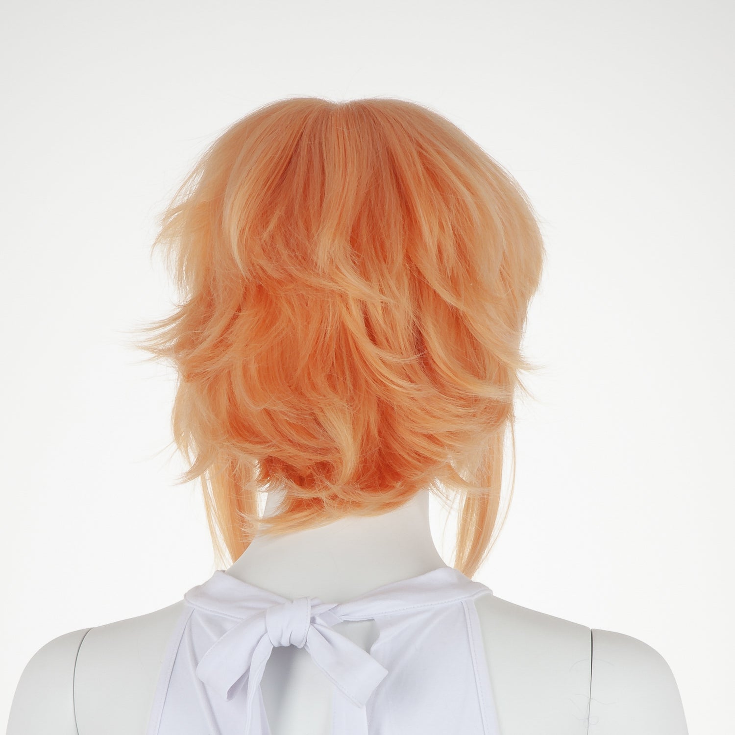 This wig has short, choppy layers in the back with long side sections at the ears. The bangs are long and reach just around the nose on a person. Jaguar's overall length measures 5'' to 6'' (13 cm to 15 cm). This wig has a crimped top - thick and great for spiking, teasing, fluffing, or leaving as-is.