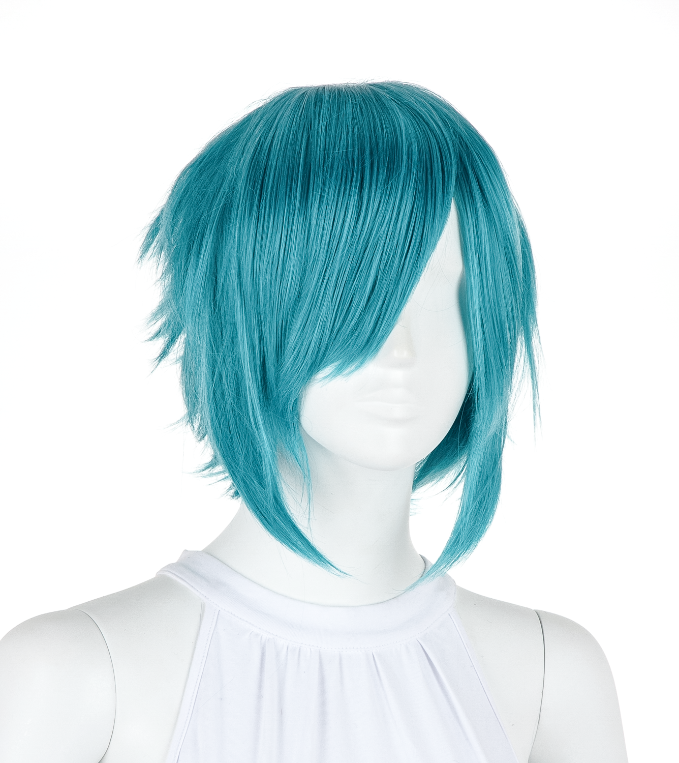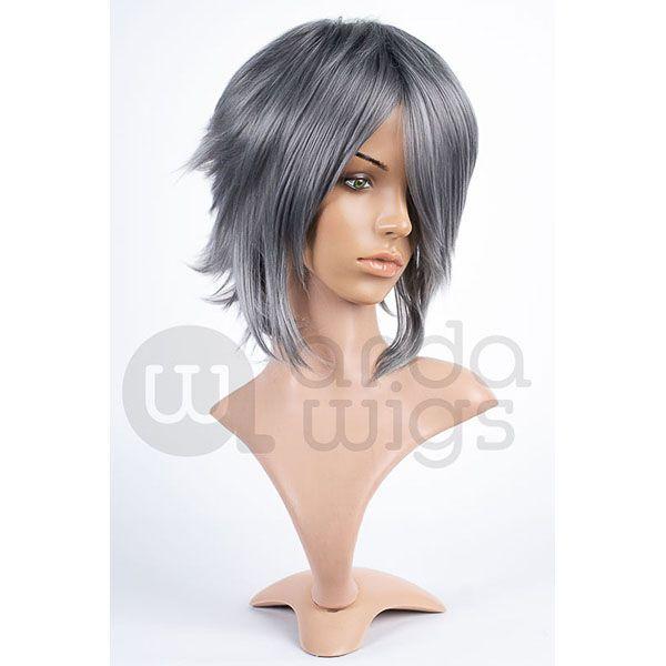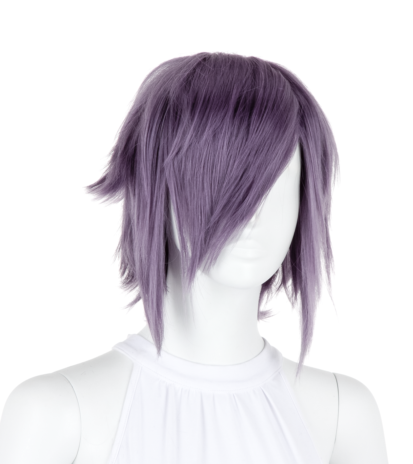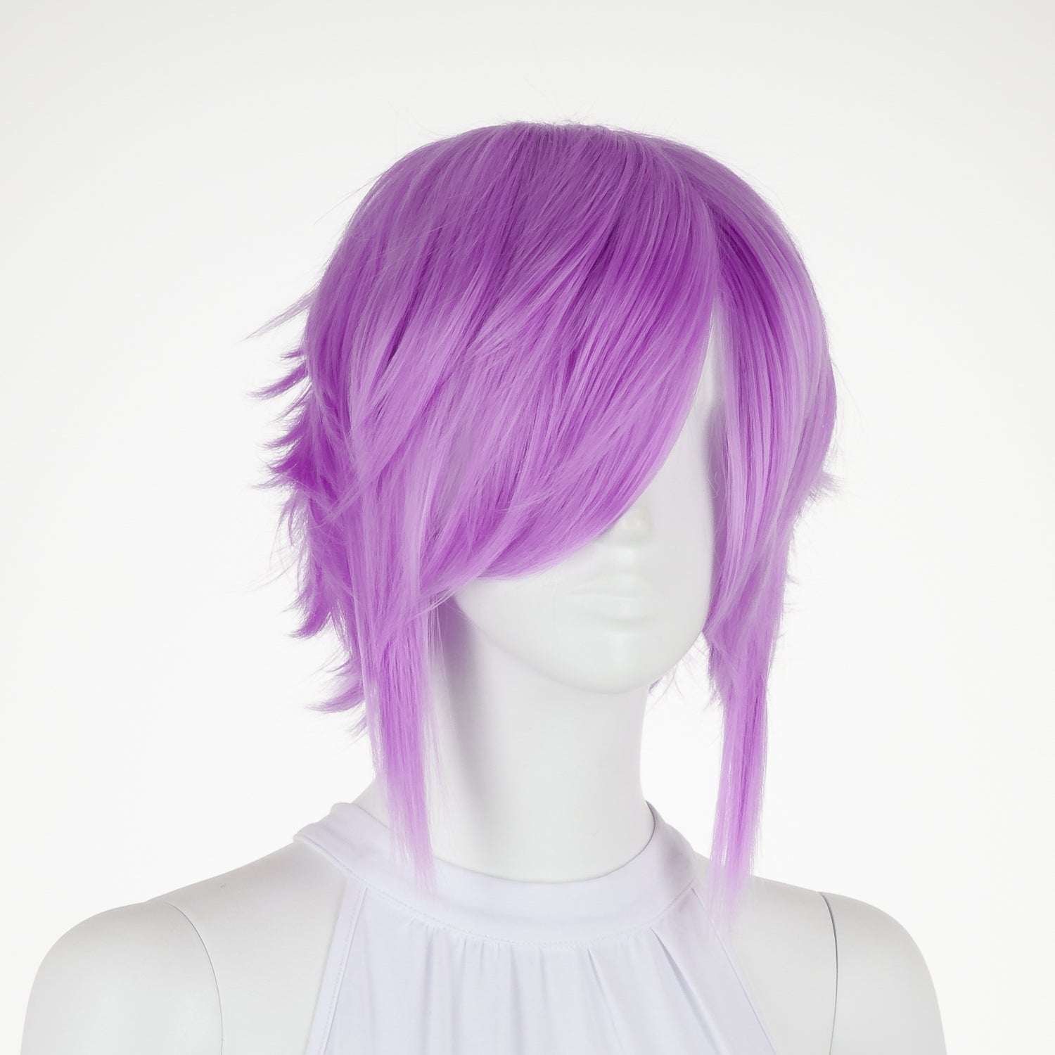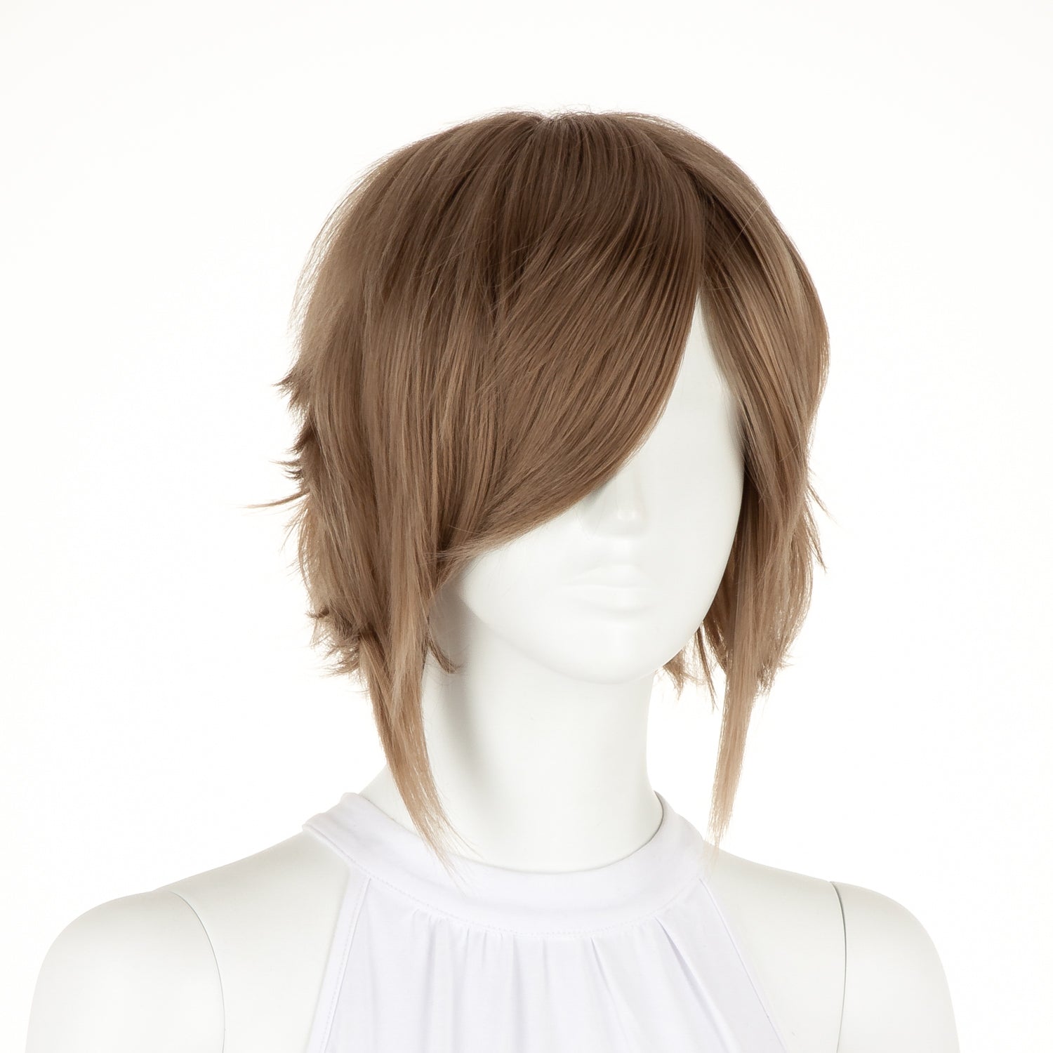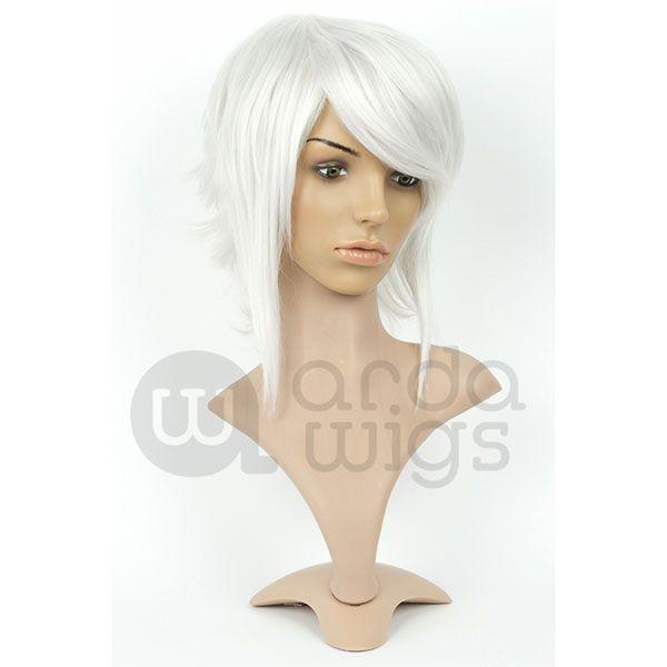This wig has short, choppy layers in the back with long side sections at the ears. The bangs are long and reach just around the nose on a person. Jaguar's overall length measures 5'' to 6'' (13 cm to 15 cm). This wig has a crimped top - thick and great for spiking, teasing, fluffing, or leaving as-is.