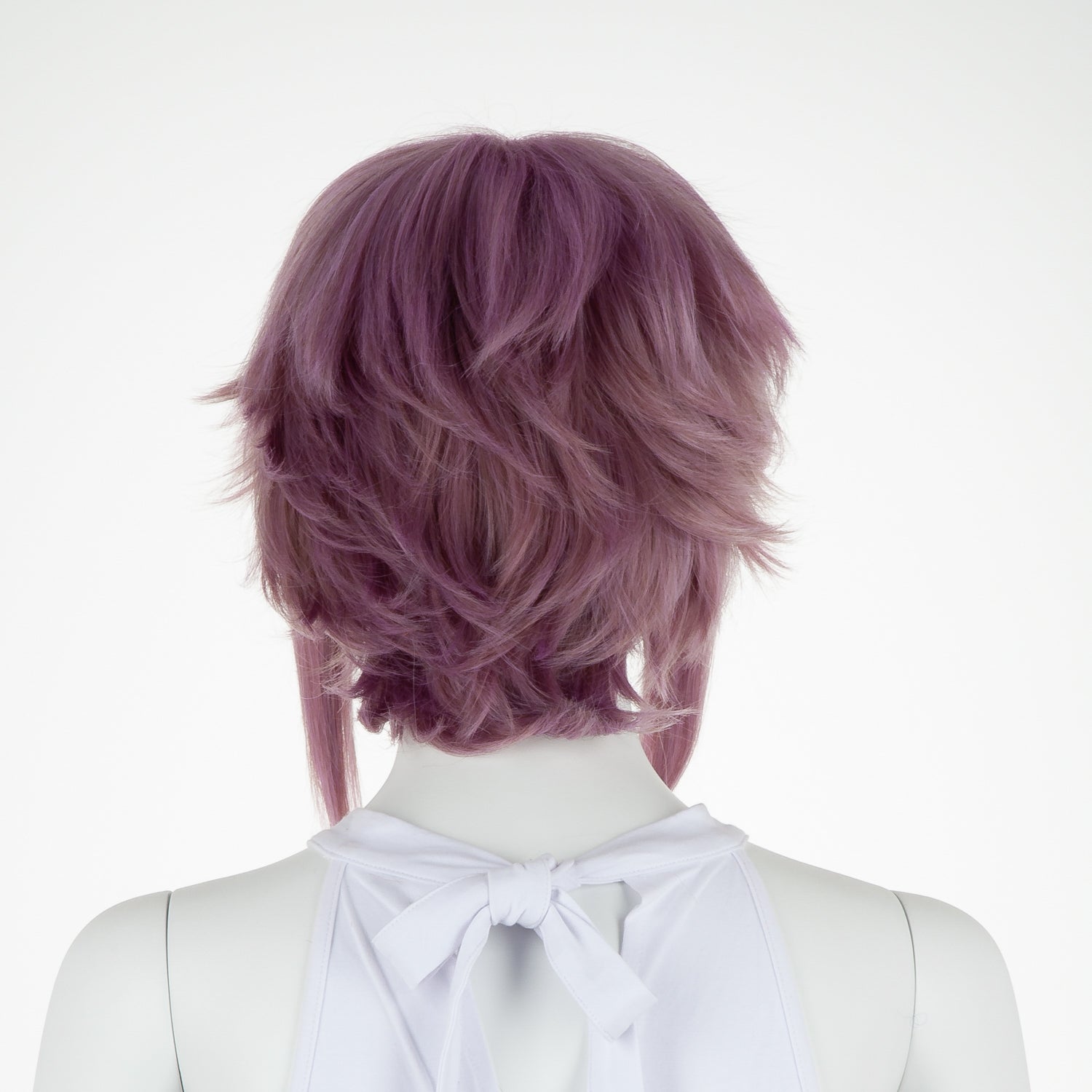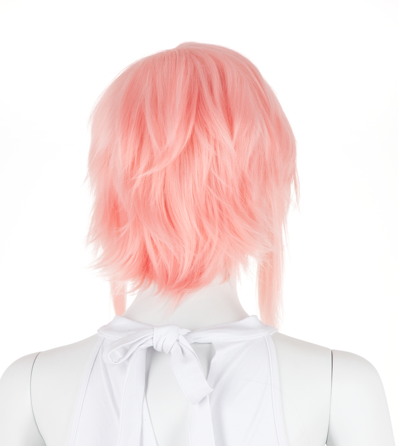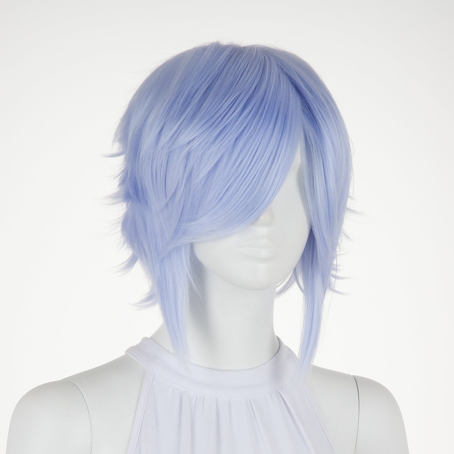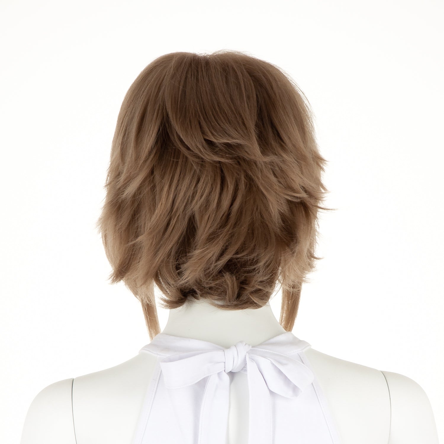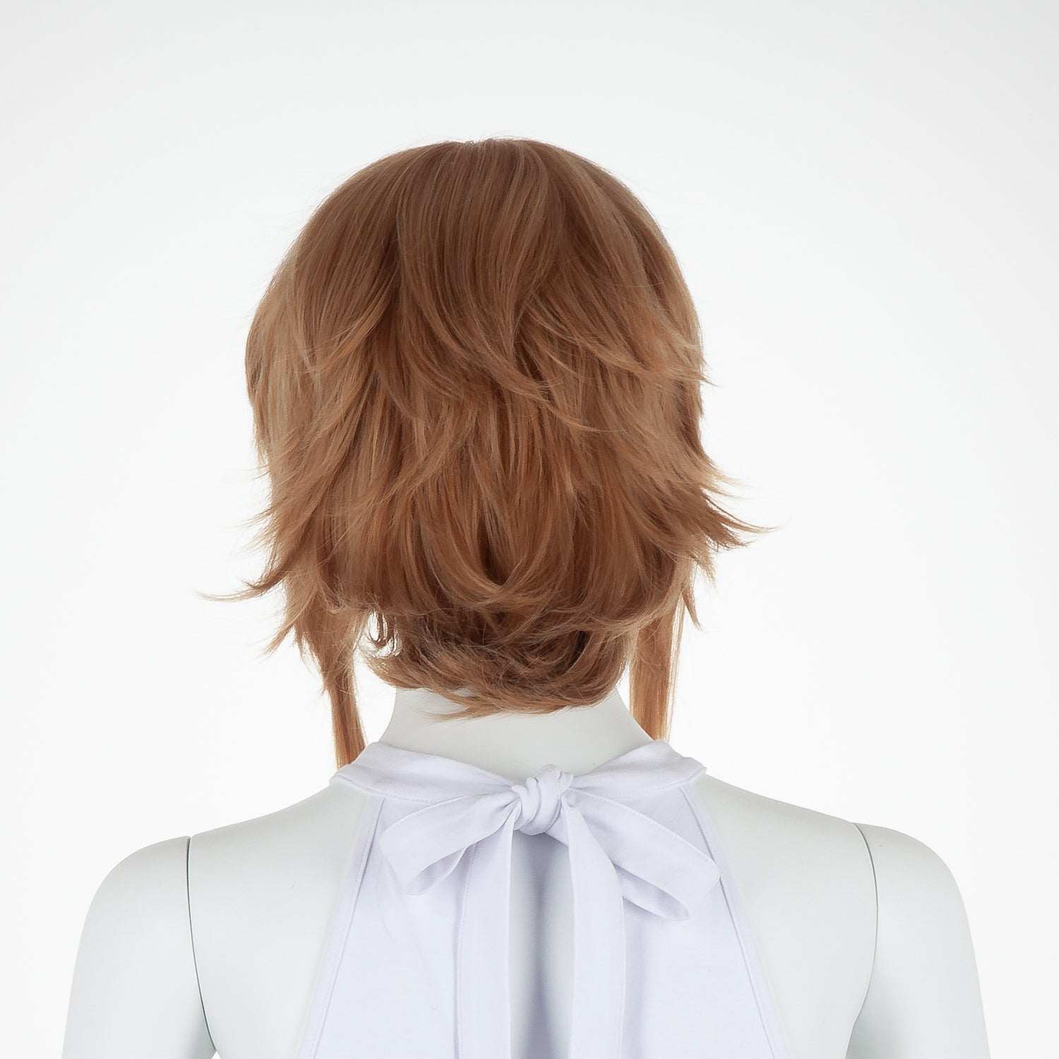 This wig has short, choppy layers in the back with long side sections at the ears. The bangs are long and reach just around the nose on a person. Jaguar's overall length measures 5'' to 6'' (13 cm to 15 cm). This wig has a crimped top - thick and great for spiking, teasing, fluffing, or leaving as-is.