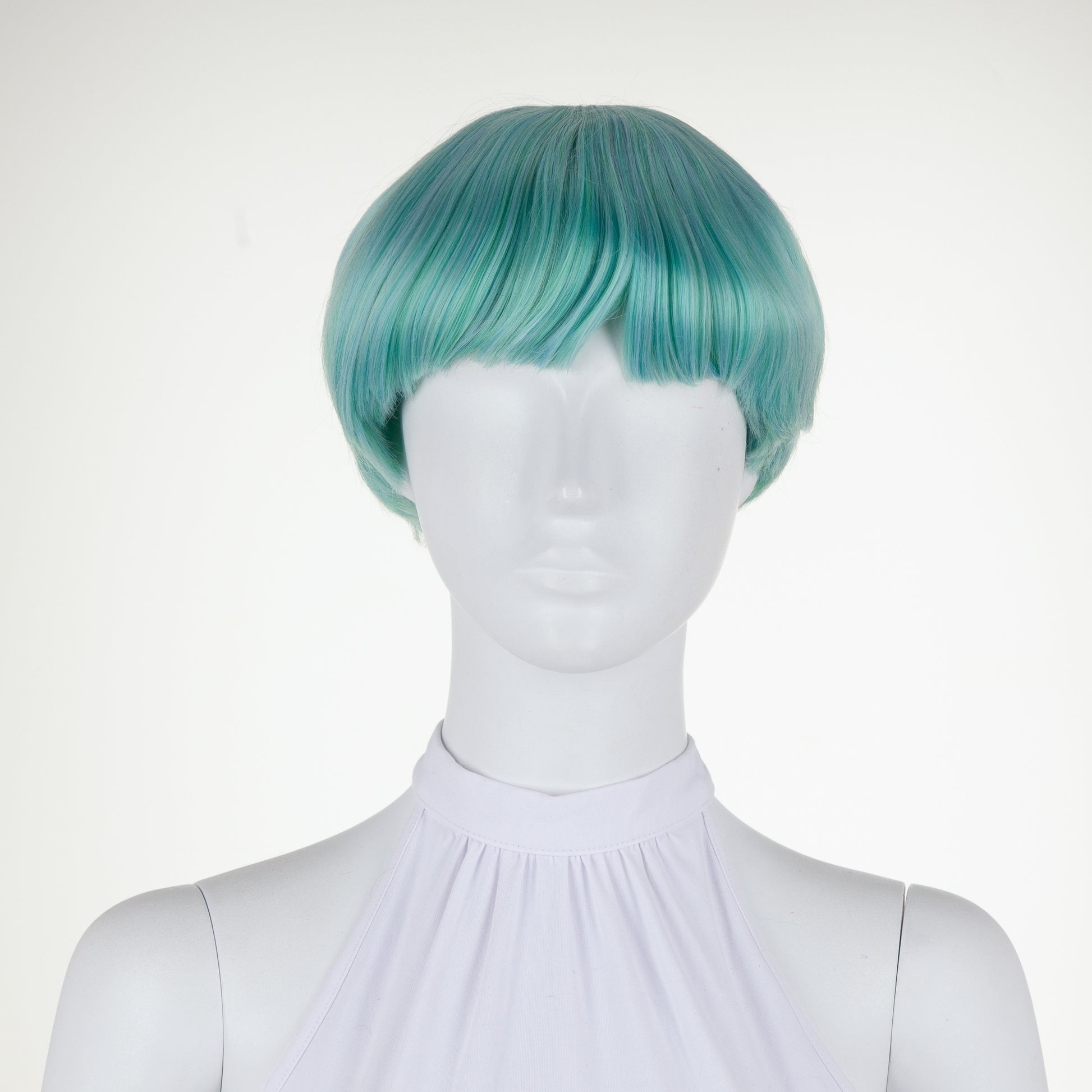 Nothing feels like YOUTH more than a bowl cut! The longest fibers measure 8" (20 cm) near the crown, and the shortest sections at the nape are 1.5" (3.8 cm). Lee's bangs measure 4" (10 cm) from the front hairline. This style has a small 1.75" (4.5 cm) radial skin top at the crown of the head.