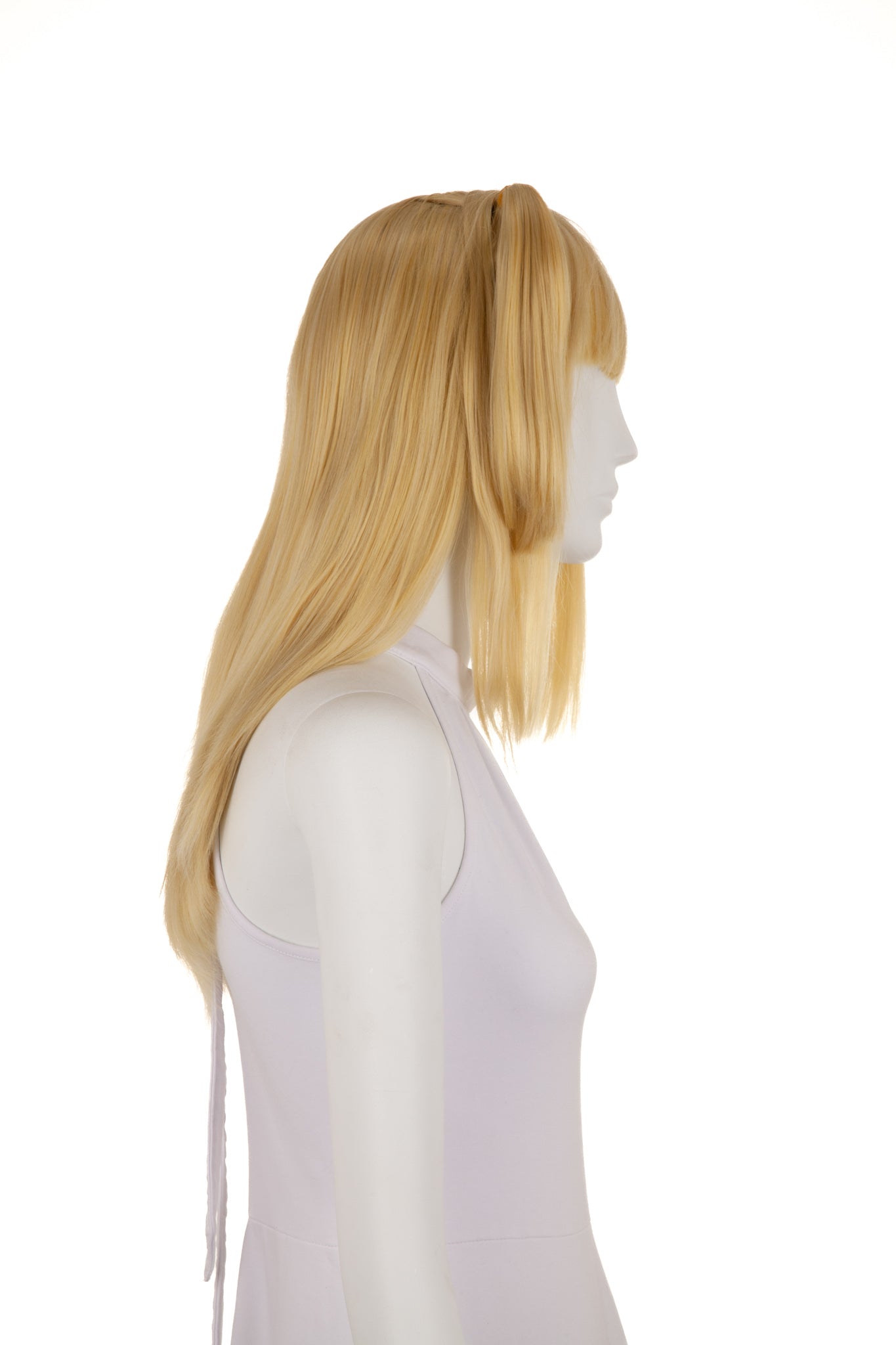 The Misa comes with pigtails styled in and are approximately 9.5" long. The bangs of Misa measure 5" and shift to the sides measuring 15". The sides of this wig have slight layering, measuring between 9" and 14". The Misa features some longer layering in the back with the shortest layer measuring 15" and the longest layer measuring 21".