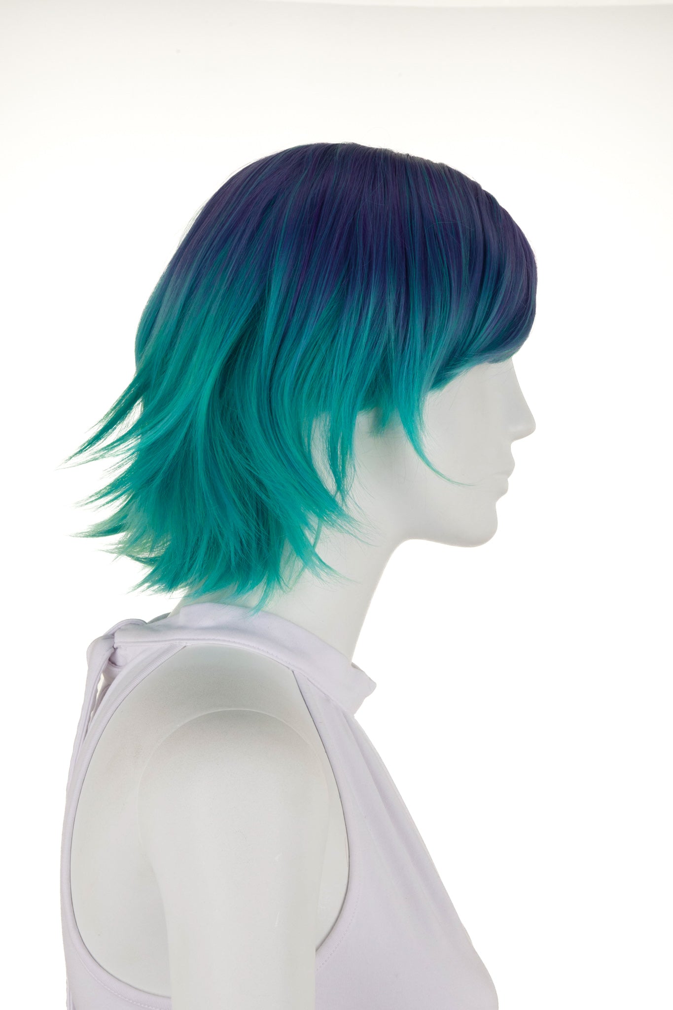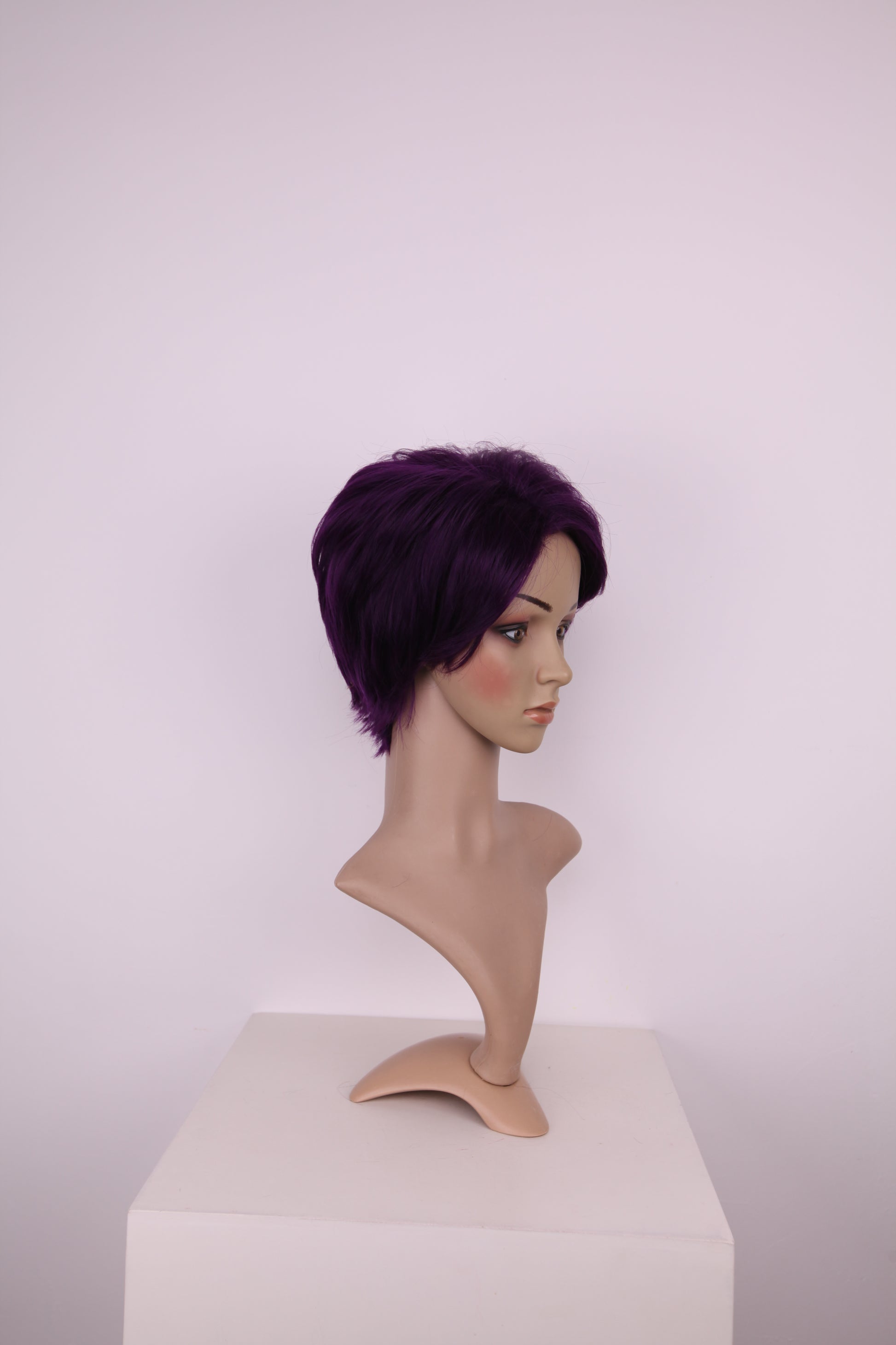 This cute shaggy, pixie cut comes in a unique purple that is similar to our Plum (CL-021). The bangs of the Rebel 4 measure approximately 4" (10cm) long. From the crown of the wig, the sides will measure about 8" (20cm). The back of the wig has a shaggy cut that will feather out and taper off around the nape of the neck.