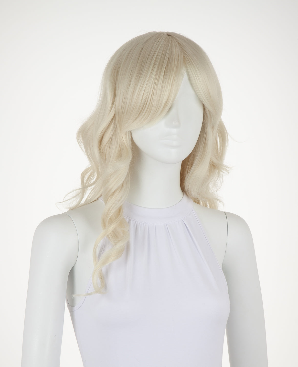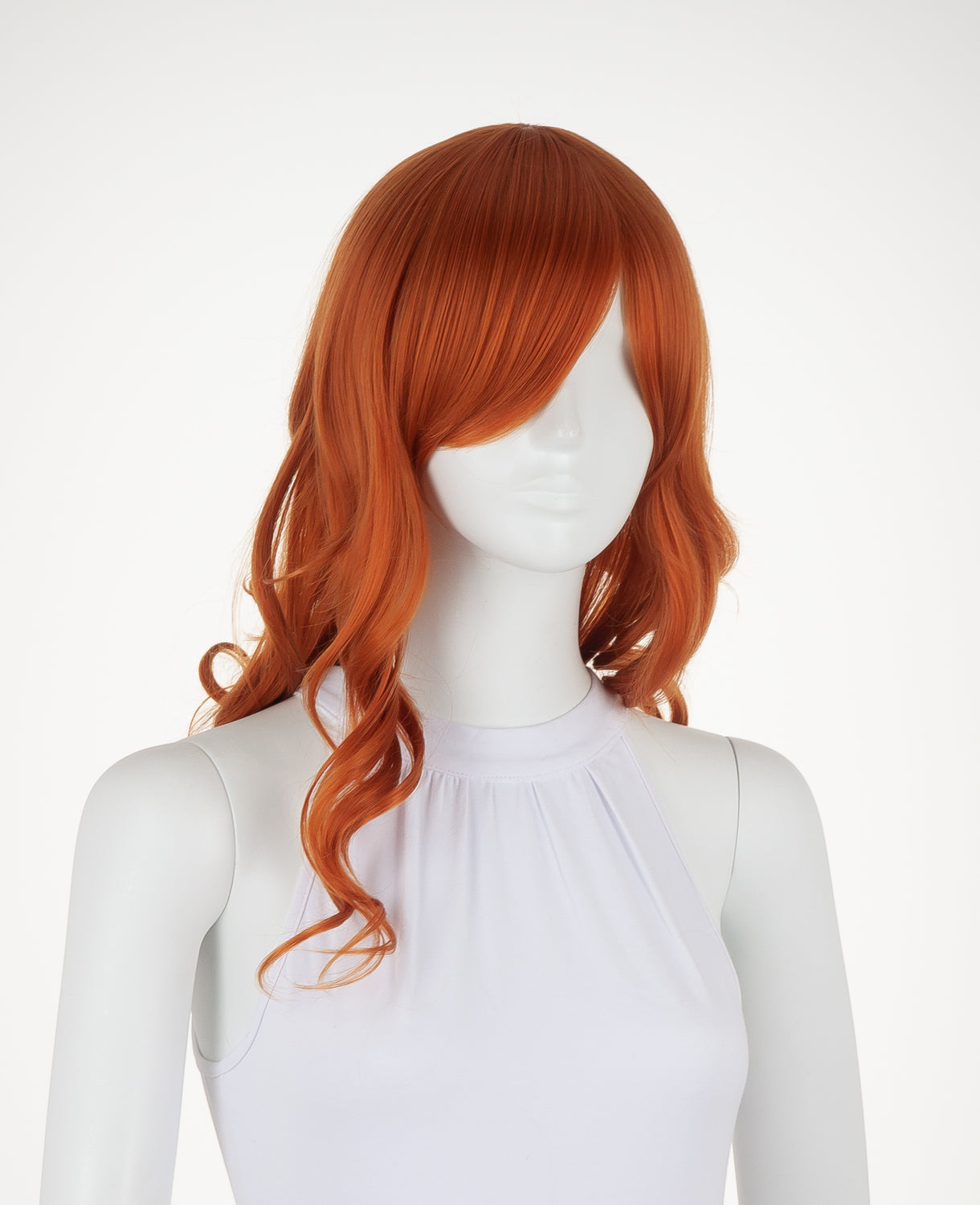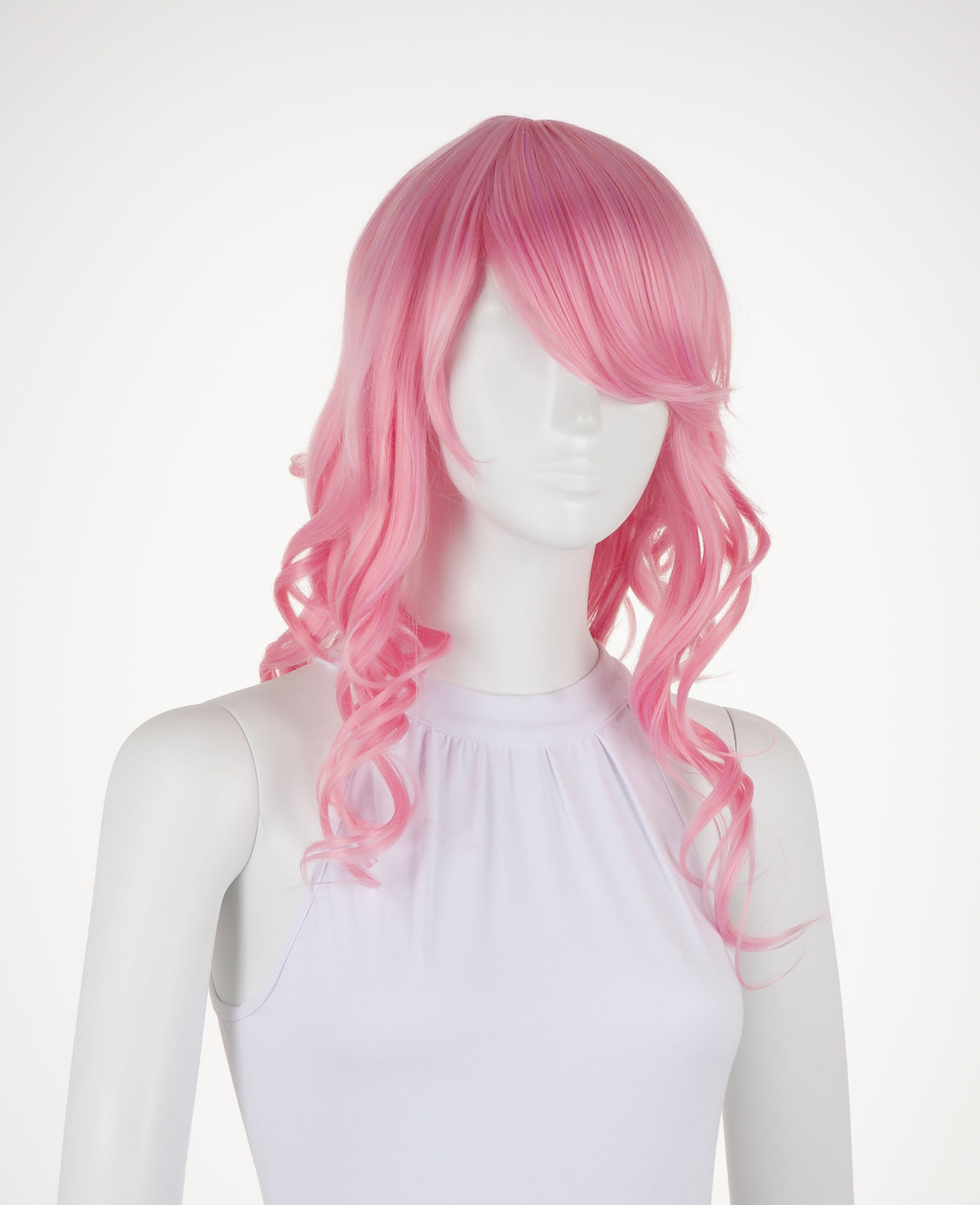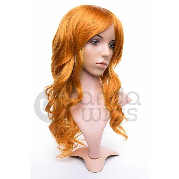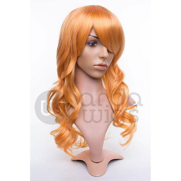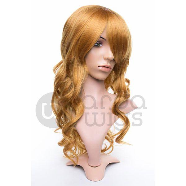 Ferrari is a medium-length wavy wig that measures slightly less than 23" (58.5 cm). This wig is great for cosplay and everyday wear. It has a 1" (2.5 cm) skin top at the crown and long bangs. This wig is thick enough for low ponytails or buns, but is not suitable for a high up-do without re-wefting.
