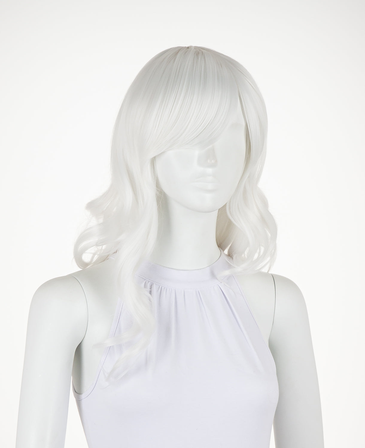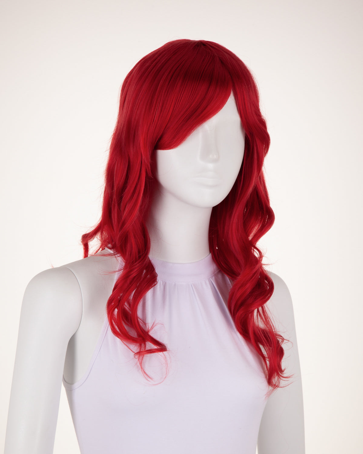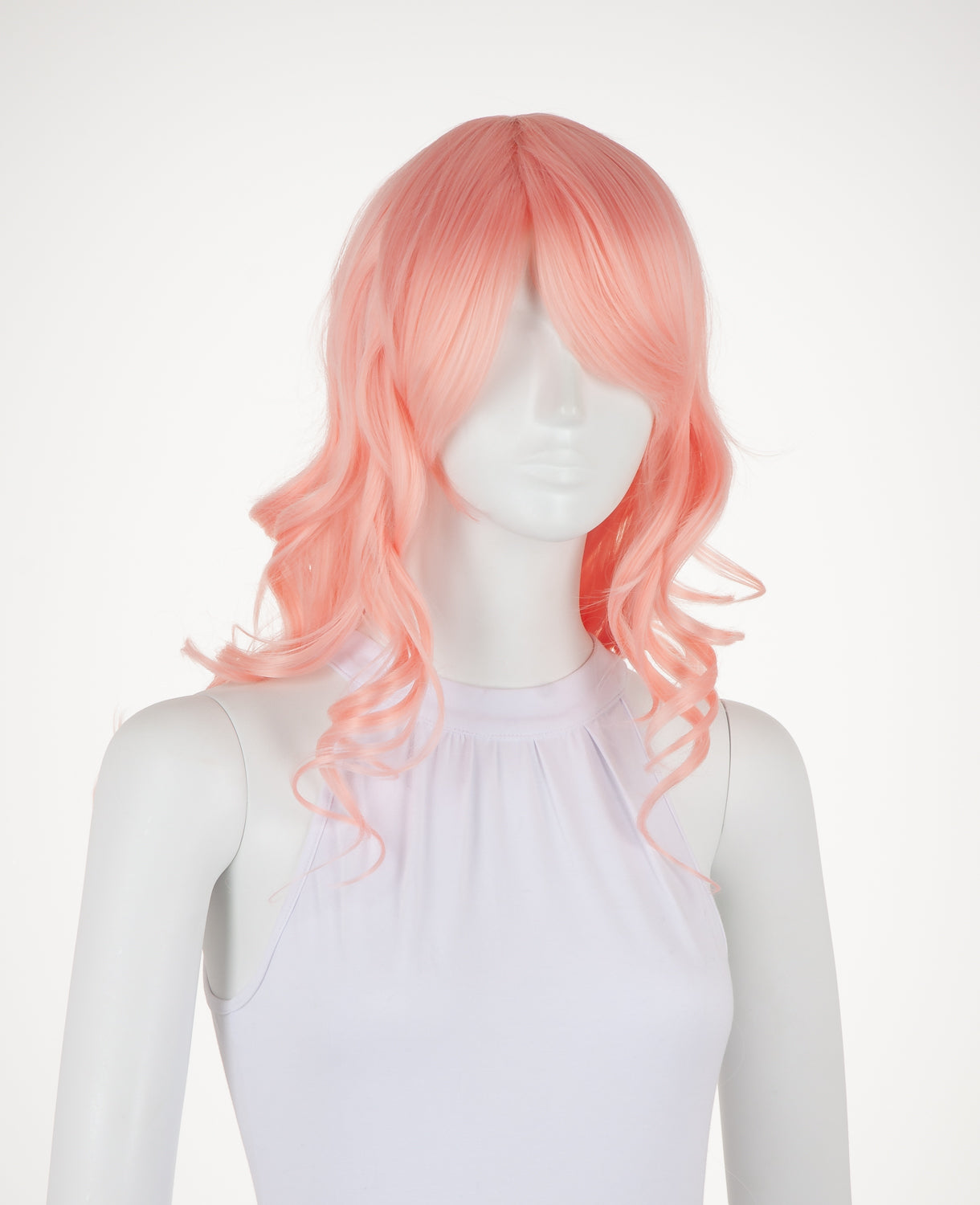 Ferrari is a medium-length wavy wig that measures slightly less than 23" (58.5 cm). This wig is great for cosplay and everyday wear. It has a 1" (2.5 cm) skin top at the crown and long bangs. This wig is thick enough for low ponytails or buns, but is not suitable for a high up-do without re-wefting.
