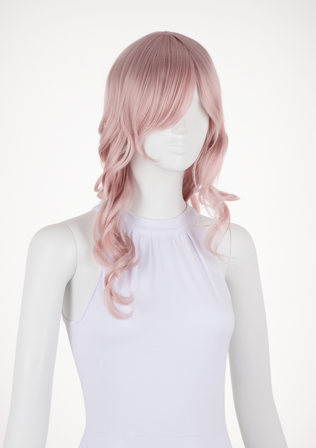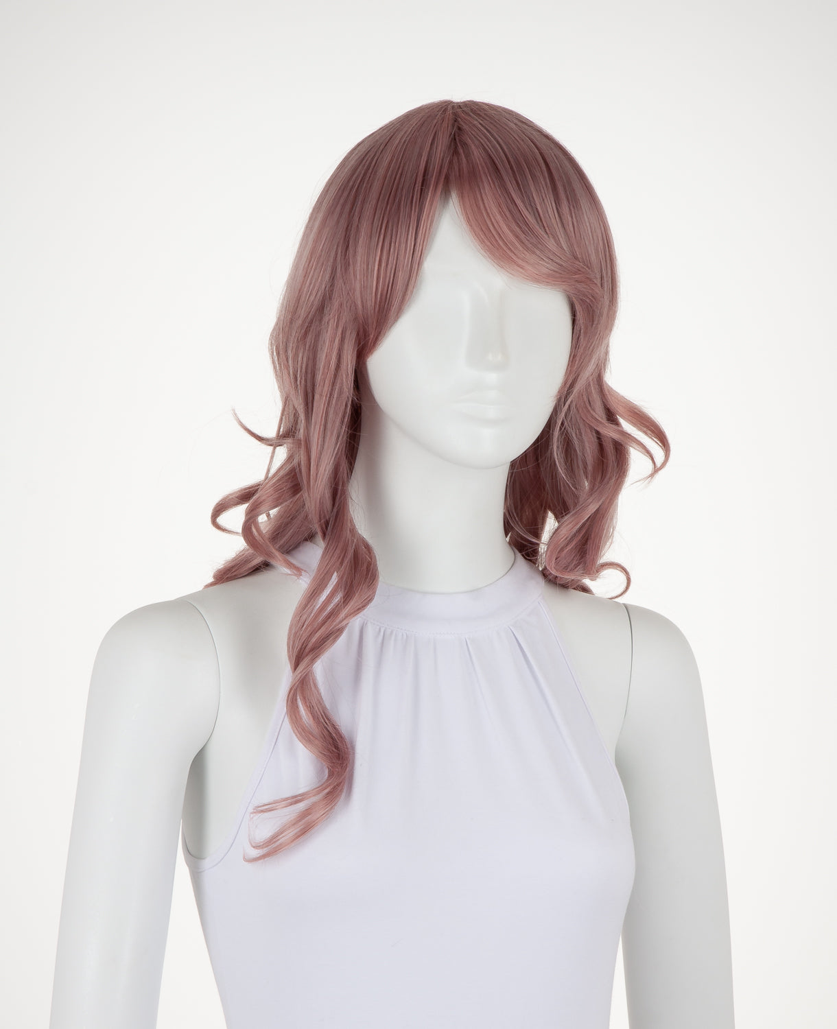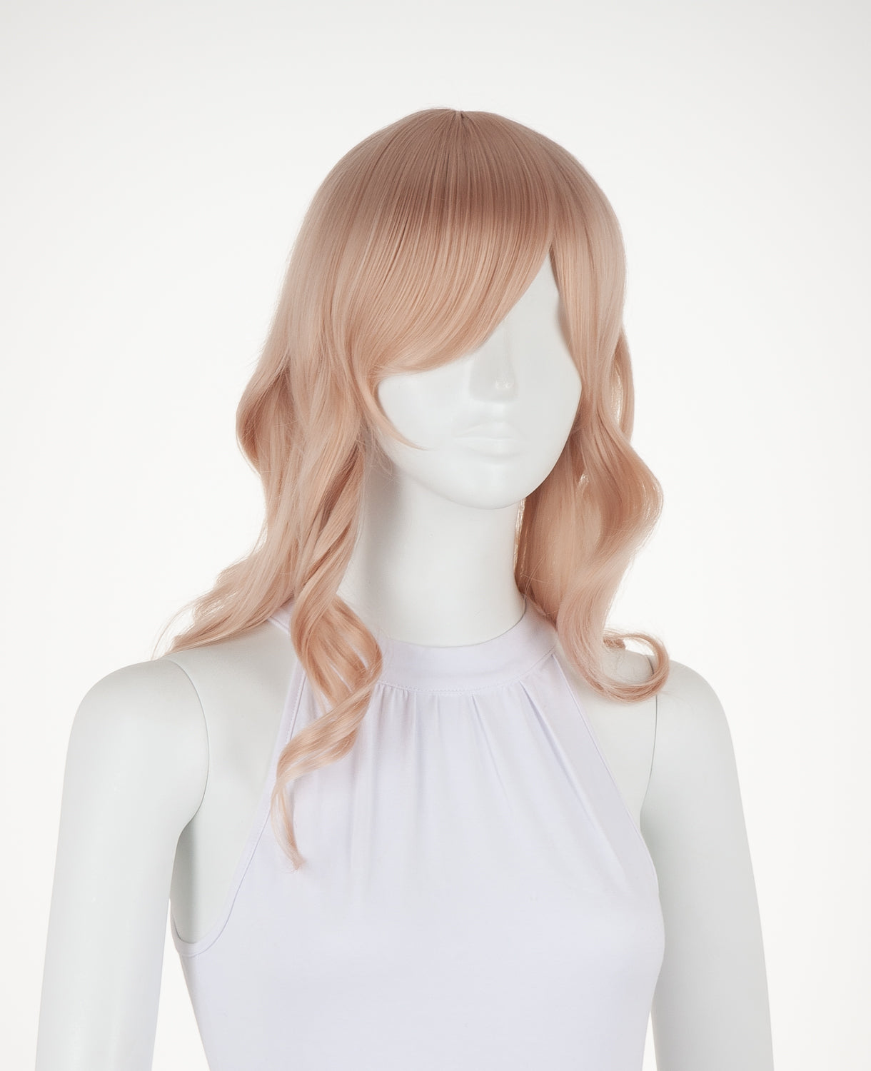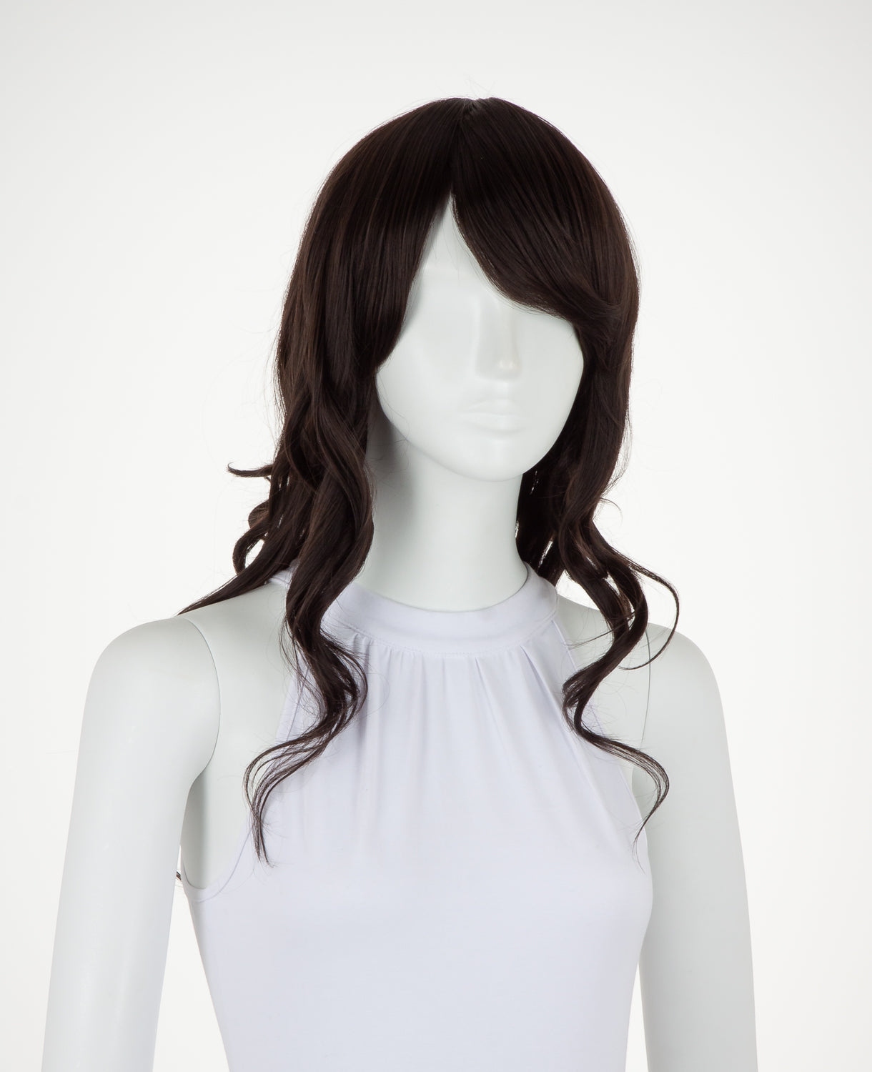 Ferrari is a medium-length wavy wig that measures slightly less than 23" (58.5 cm). This wig is great for cosplay and everyday wear. It has a 1" (2.5 cm) skin top at the crown and long bangs. This wig is thick enough for low ponytails or buns, but is not suitable for a high up-do without re-wefting.