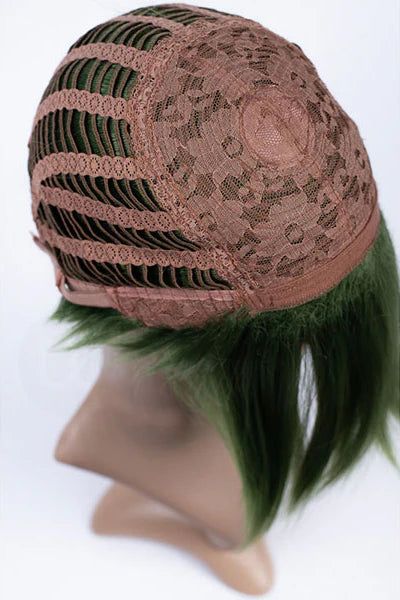 Specs: 12" (30.5 cm) long bangs | 1/2'' to 3/4" long cropped back | 1.5" (2 cm) radial skin top at the crown | 23" cap before stretch | Heat-resistant up to 420°F/300-325°F recommended.