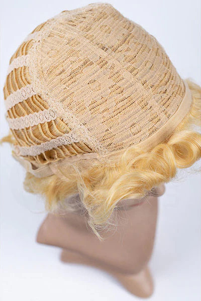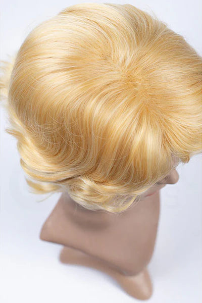 Benny is a short wig with no skin top and thick curled wefting for a curly mop-top look. The bangs can be parted in any direction. We do our best to display wigs accurately, but display heads are smaller than life, and colors may appear different based on screens. Consider purchasing our color samples first.
