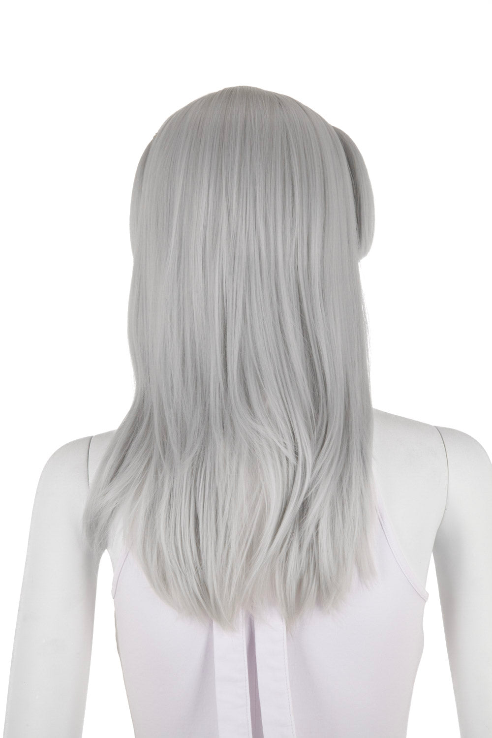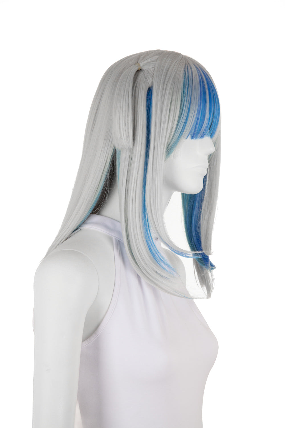 Don’t worry, this wig won’t bite…probably. Gigi offers layered side bangs and a blunt front bang that frames your face. Alternating colors similar to our Light Grey (CL-081) and Royal Blue (CL-033) adorn the bangs and side bangs. Small side ponytails are perfect for clipping in your shark tooth accessories!
