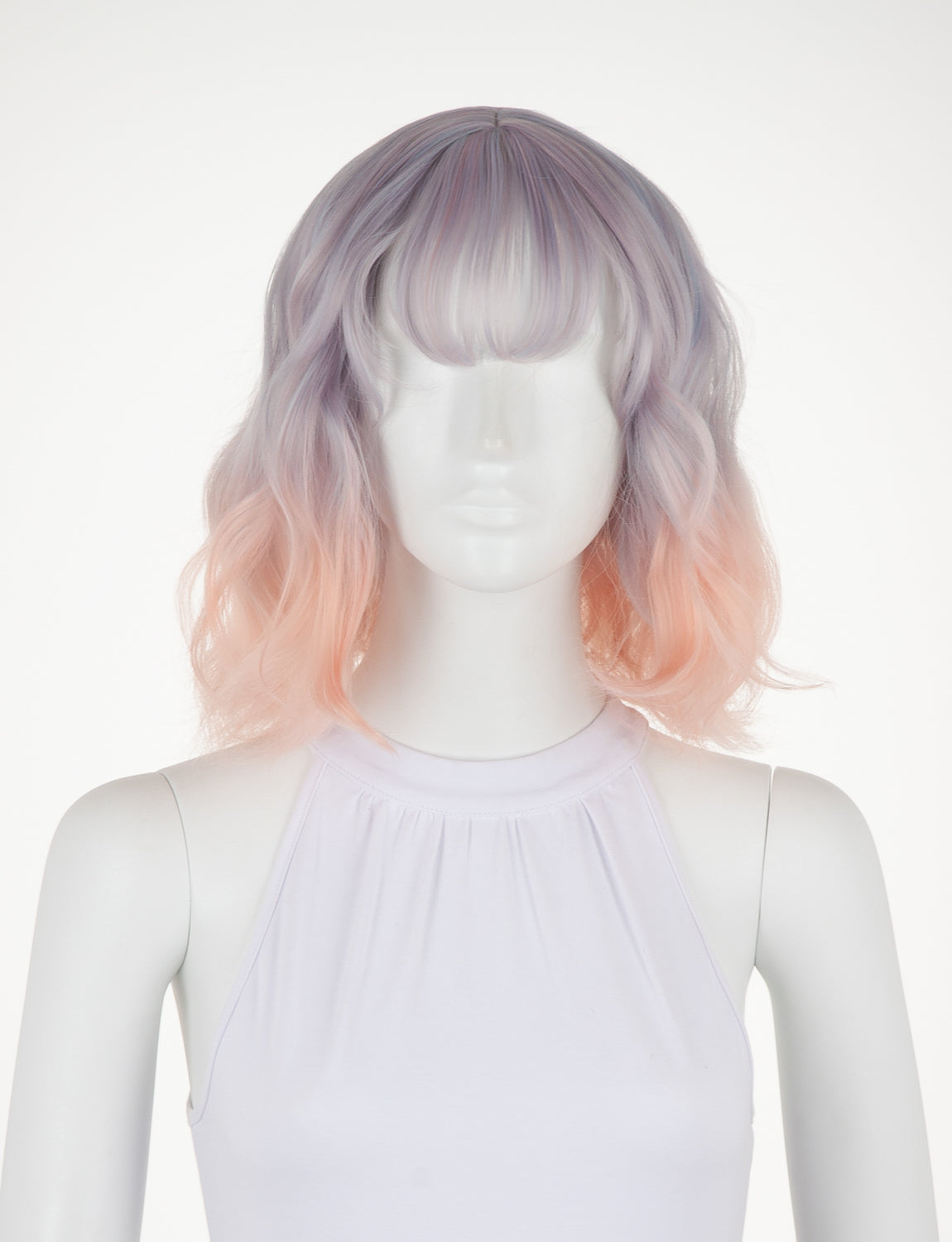 The purple/pink blend does not match our Classic colors, but the closest would be Pale Lilac to Light Pink. The soft pink can be seen throughout the wig.