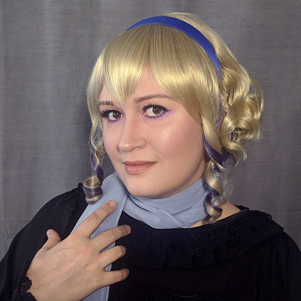 A stylish option for when you really need to get down to rebuilding your family name, our Connie wig is a mixture of our Jane with two longer, fashionable side-curls. The base colors in this wig are Classic Champagne CL-055A on top with an underlayer of Silky SI-019 Heather Purple. Because of this blending of Classic and Silky fibers together, if you need to restyle this wig we recommend temps no higher than 300-320 degrees fahrenheit.
