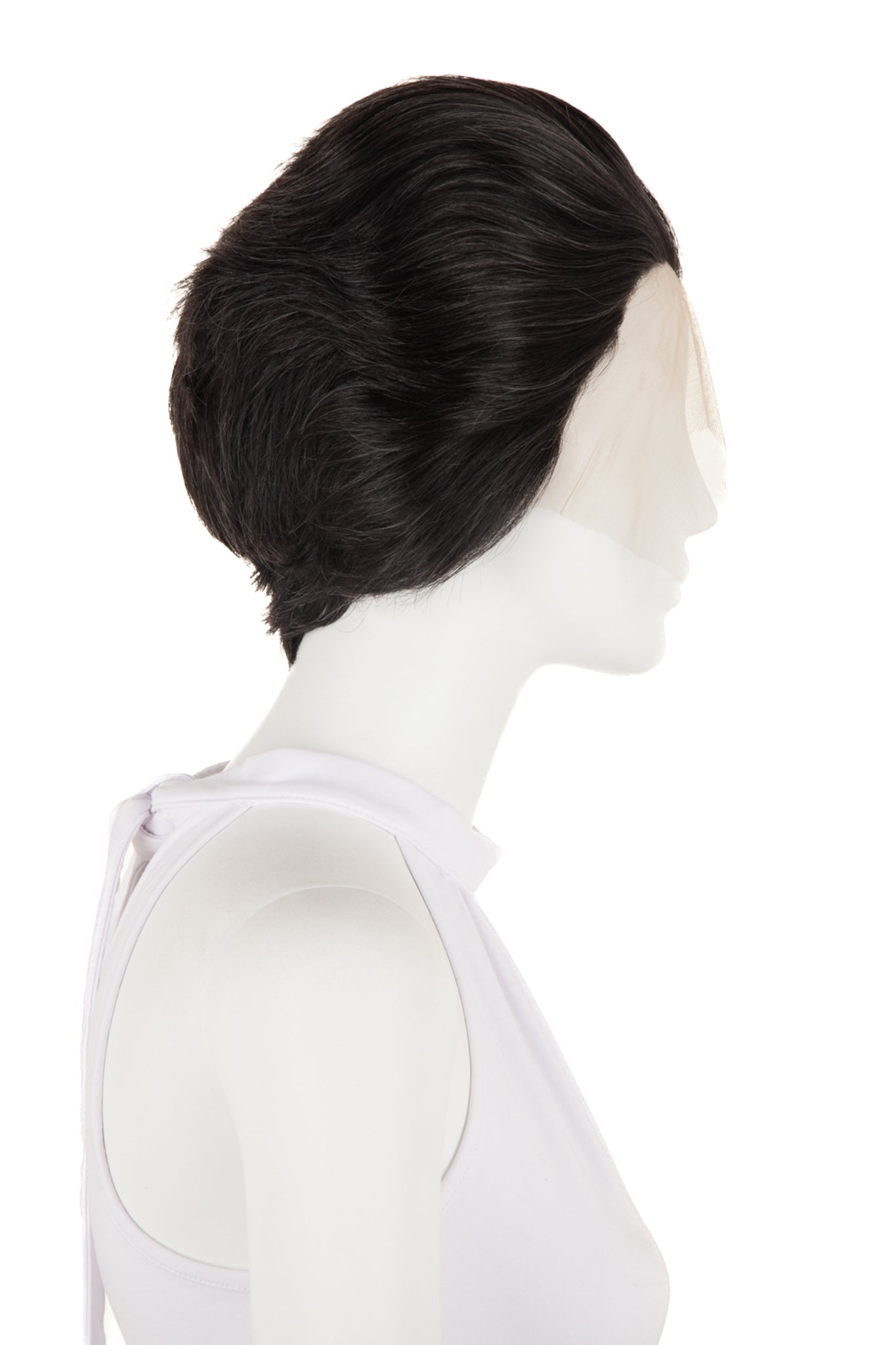 This wig has 5.5" (14 cm) long layers from crown to end at the front with 2” (5 cm) long layers at nape. Ear to ear lace hairline measures 11.5” (29 cm) and 2” (5 cm) wide.