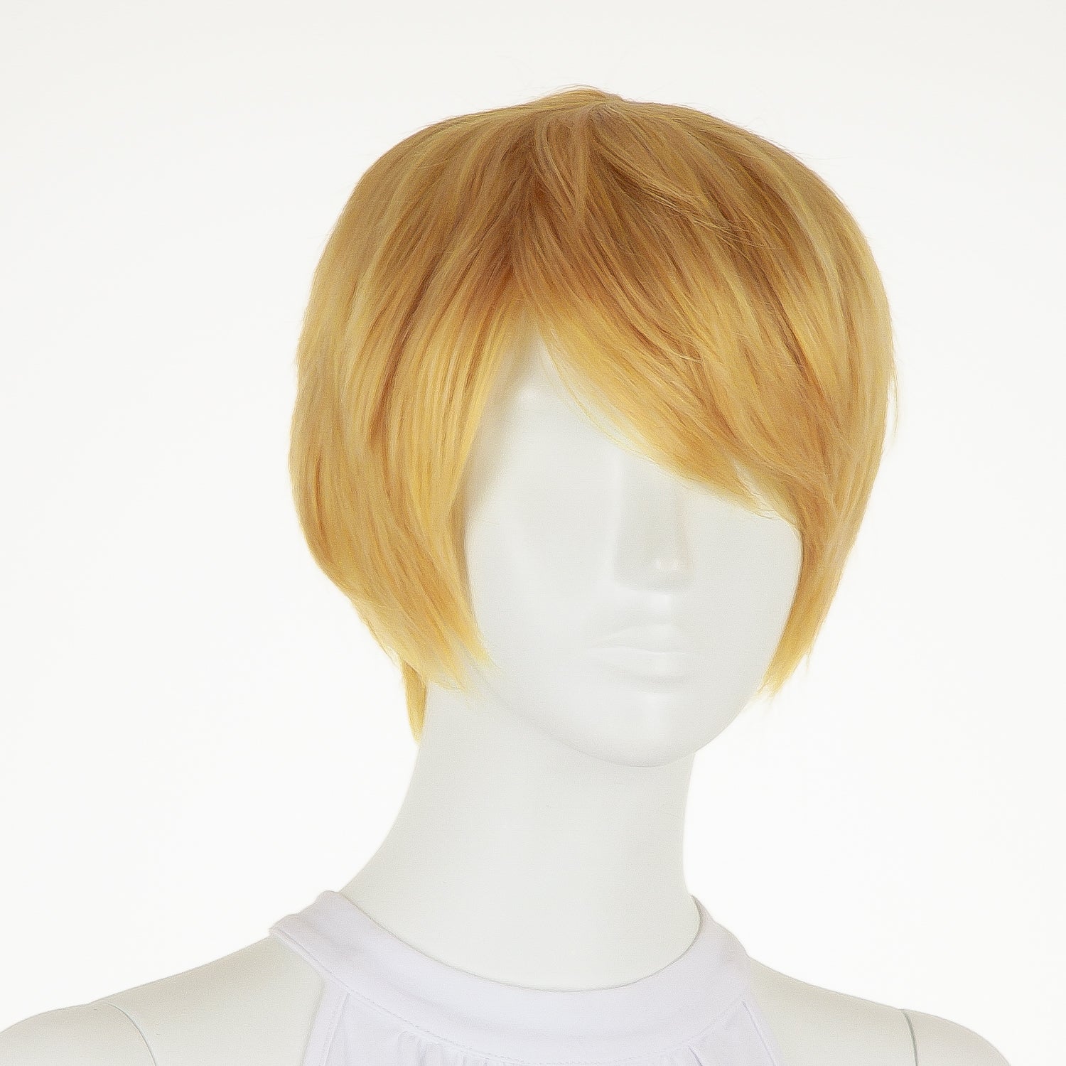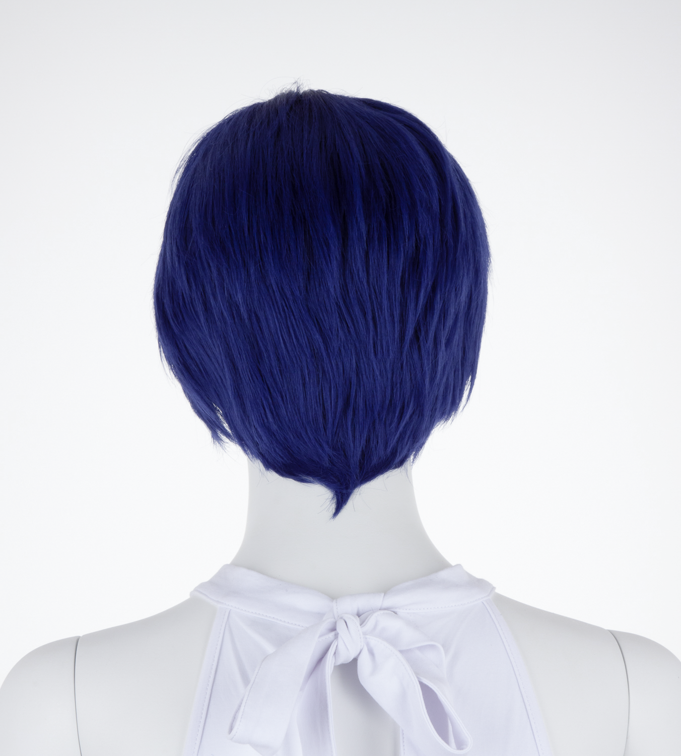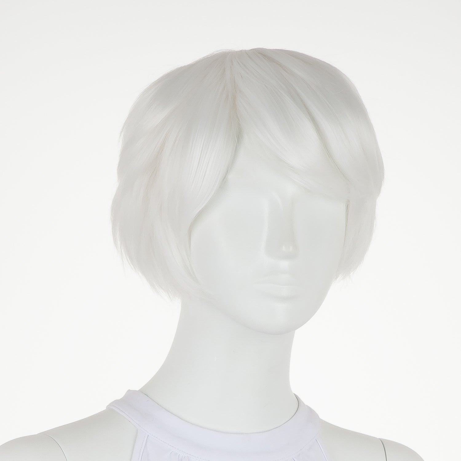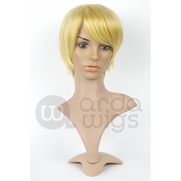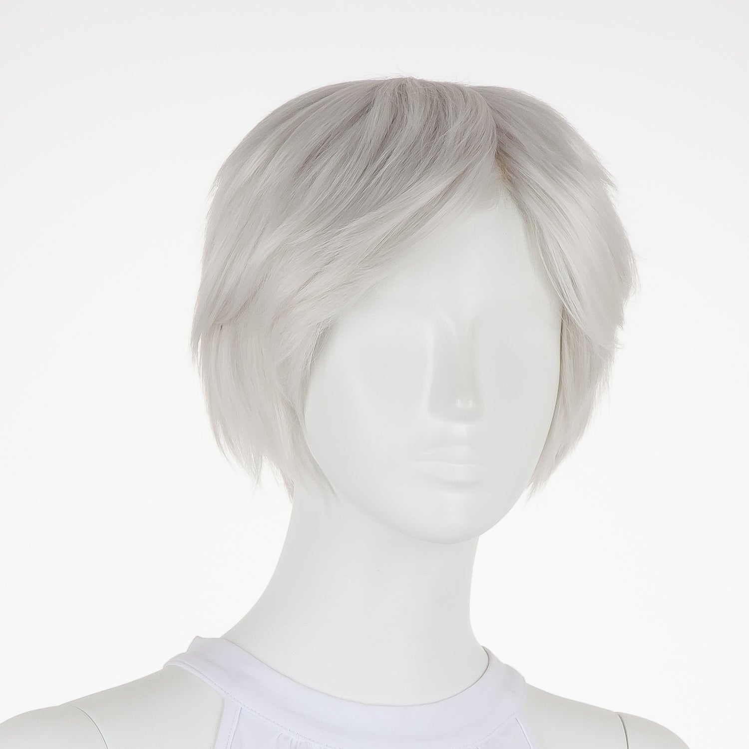A short, scruffy wig with a small 1" (2.5 cm) skin top at the crown. The fibers are straight and do not flip out like a Hansel, but they are of a similar length. Shorter in the back, with long bangs that hit the bridge of the nose on a person's head.