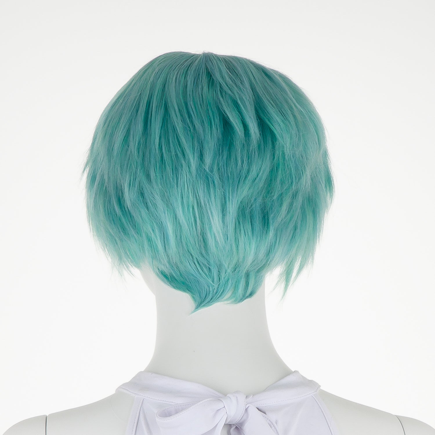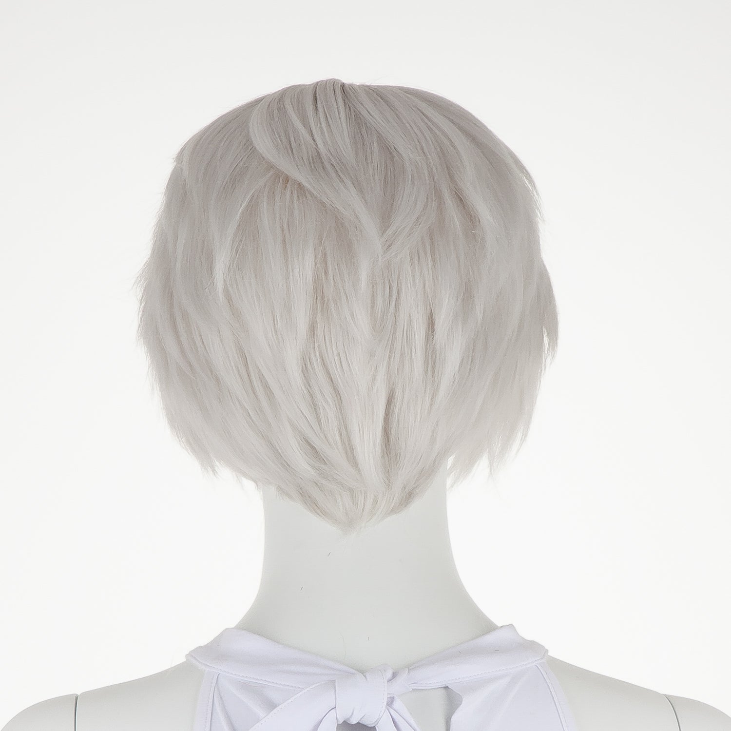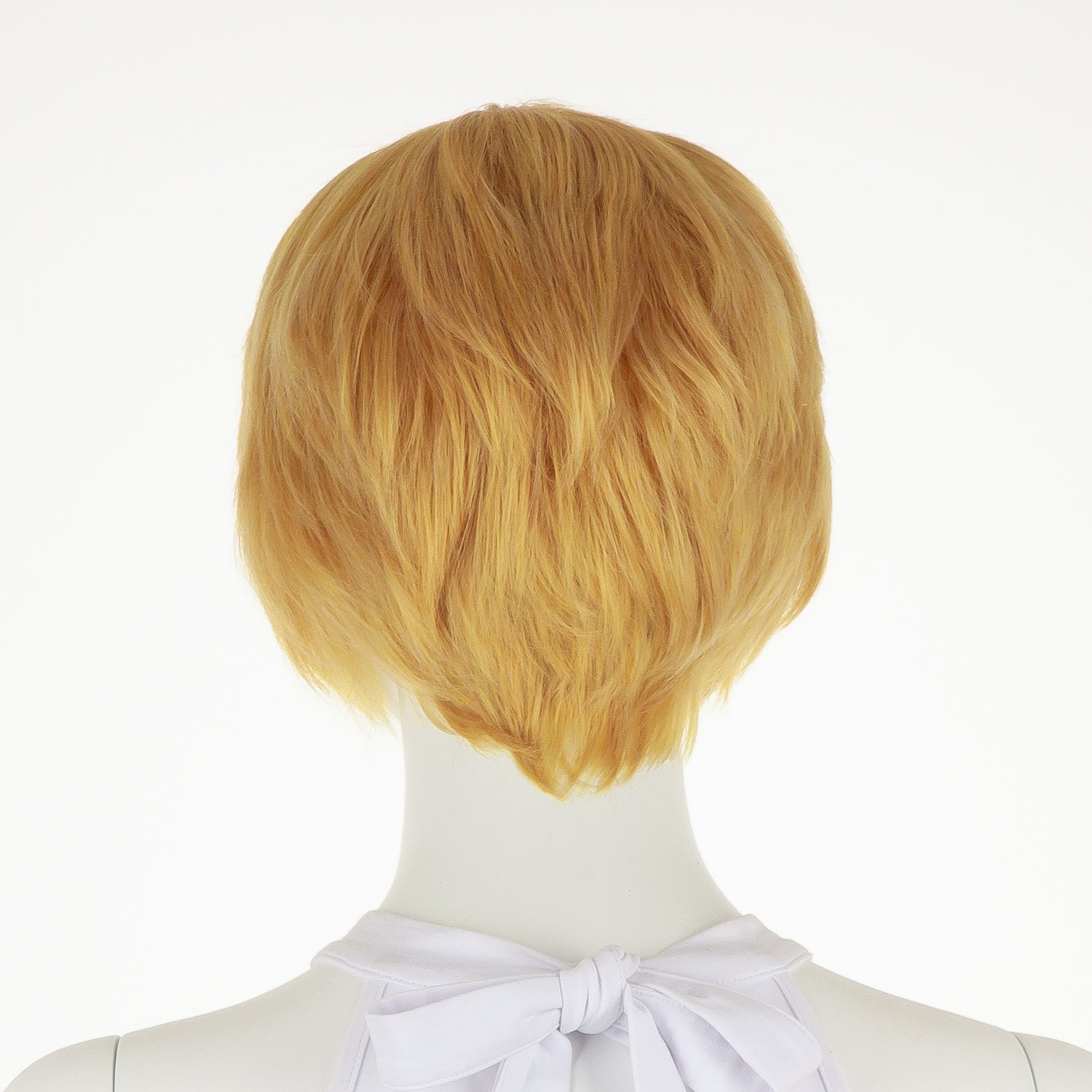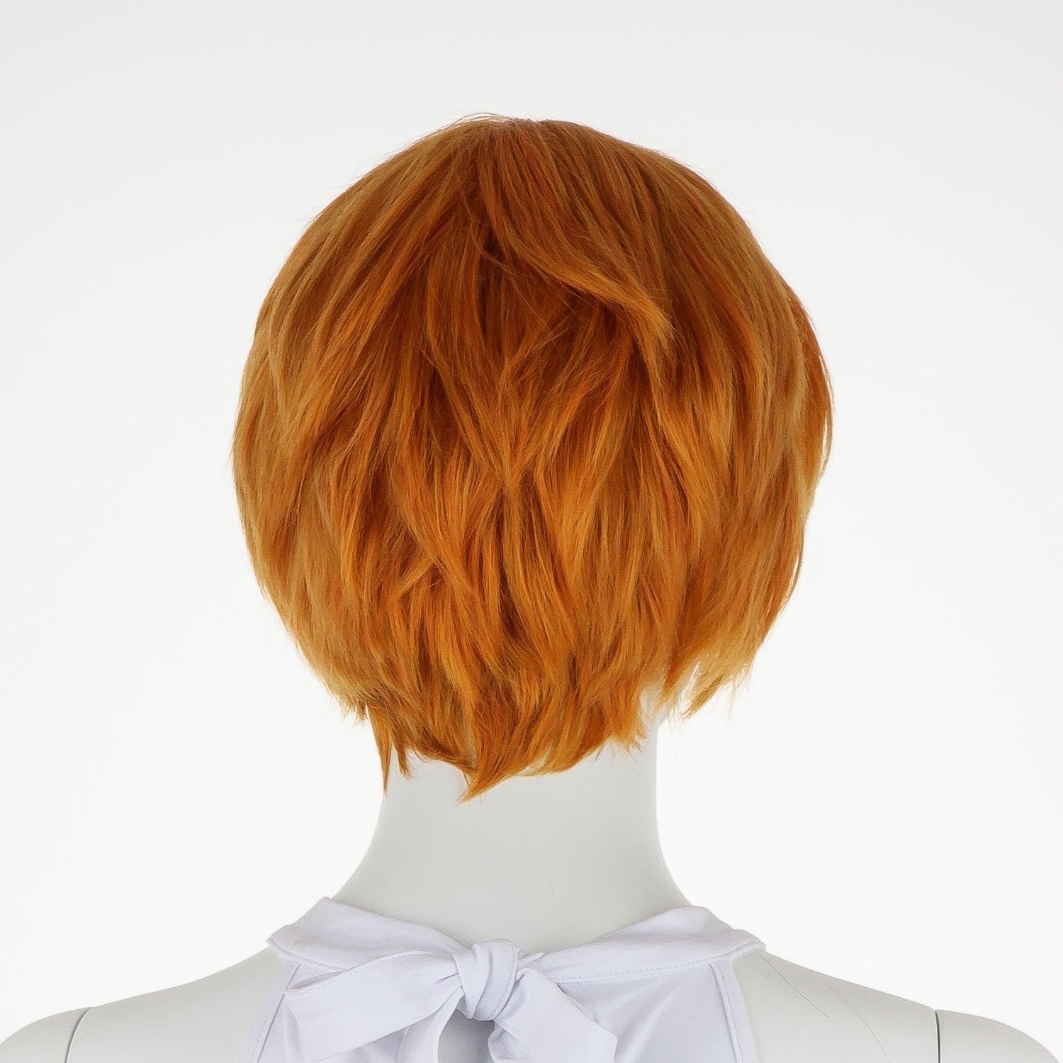 A short, scruffy wig with a small 1" (2.5 cm) skin top at the crown. The fibers are straight and do not flip out like a Hansel, but they are of a similar length. Shorter in the back, with long bangs that hit the bridge of the nose on a person's head.