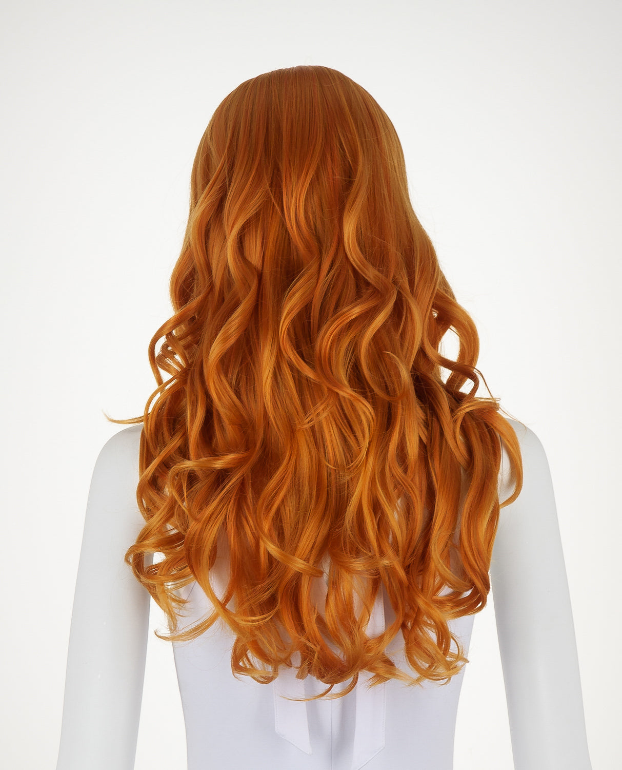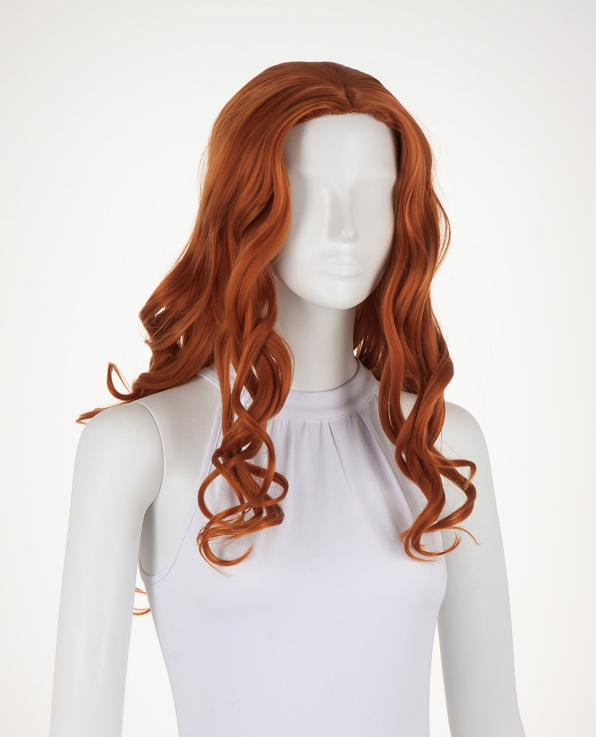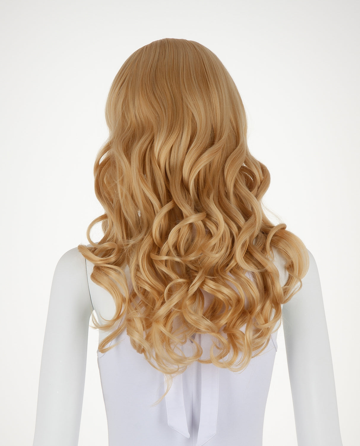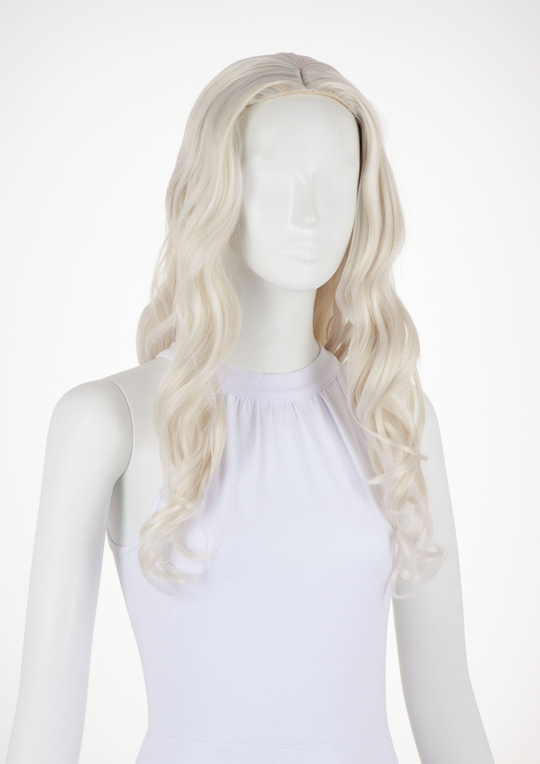 Grace is a mid-length 28-29" (71-73 cm), gentle wave wig. This wig has a half-circle skin top in the front that measures approx 4.5" (11.5 cm) wide and 3" (7.5 cm) deep. The center part can be altered to either side with heat from a hair dryer, similarly to our Buttercup and Westley styles.