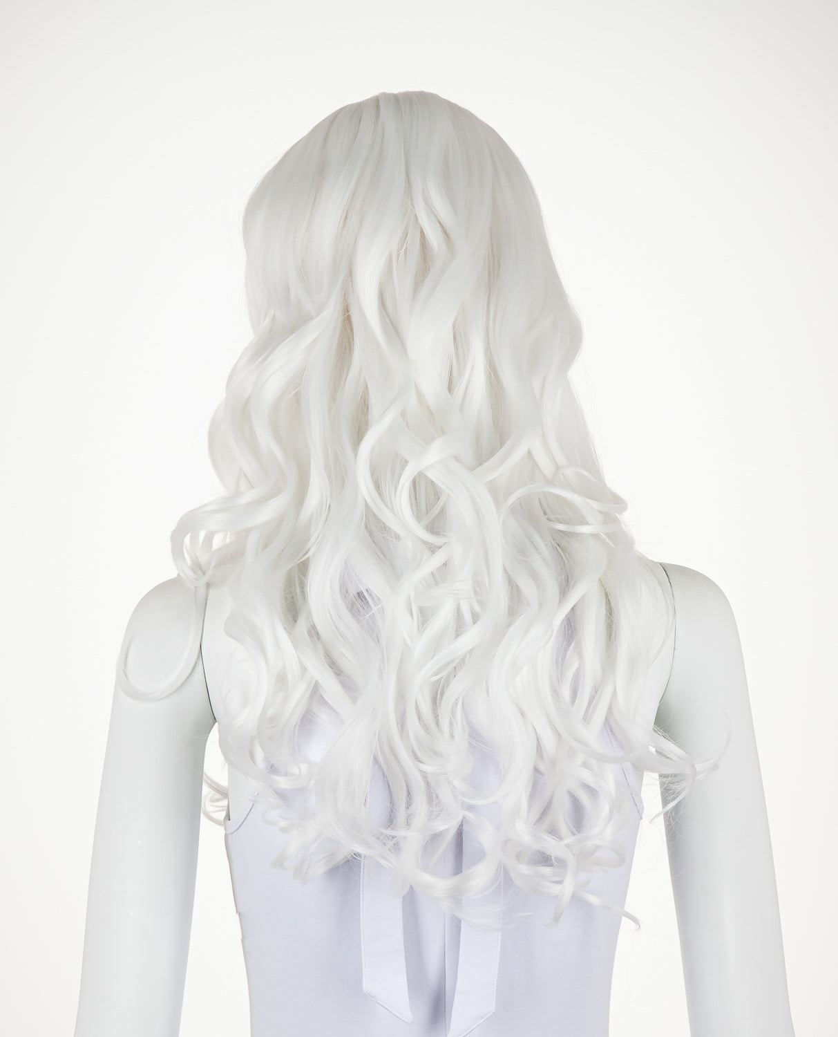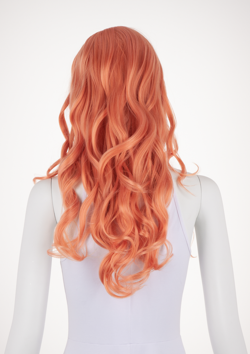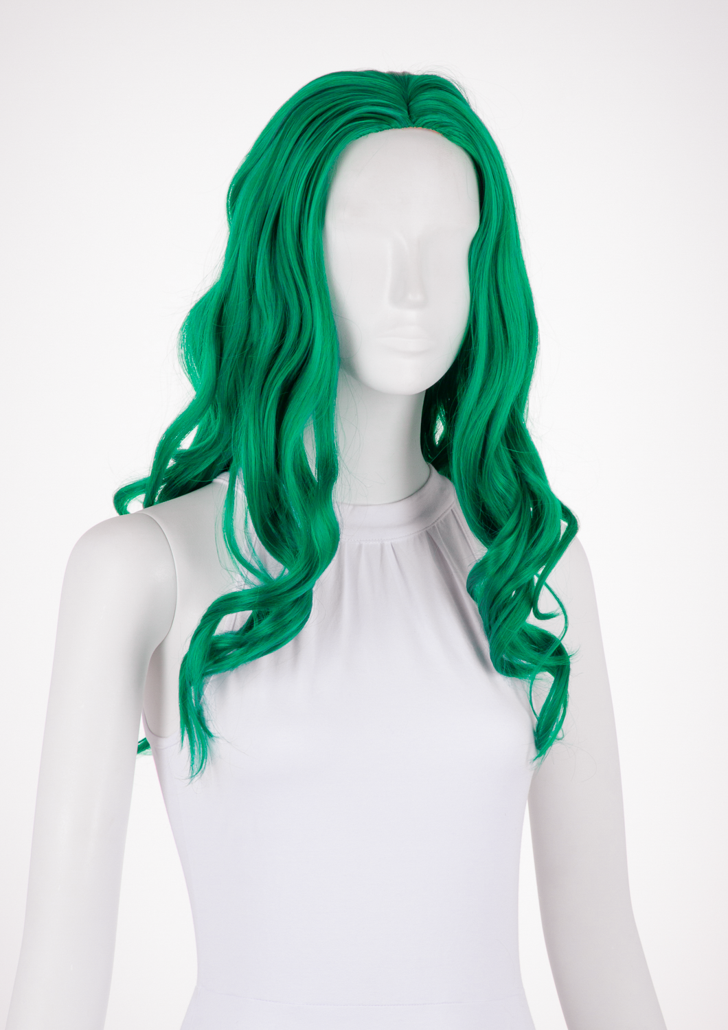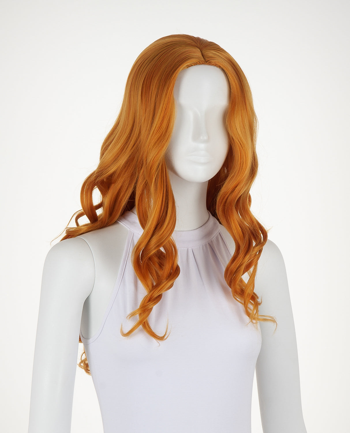 Grace is a mid-length 28-29" (71-73 cm), gentle wave wig. This wig has a half-circle skin top in the front that measures approx 4.5" (11.5 cm) wide and 3" (7.5 cm) deep. The center part can be altered to either side with heat from a hair dryer, similarly to our Buttercup and Westley styles.