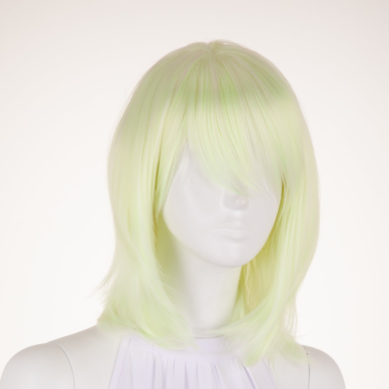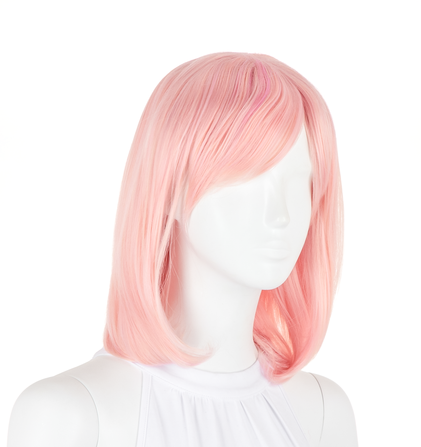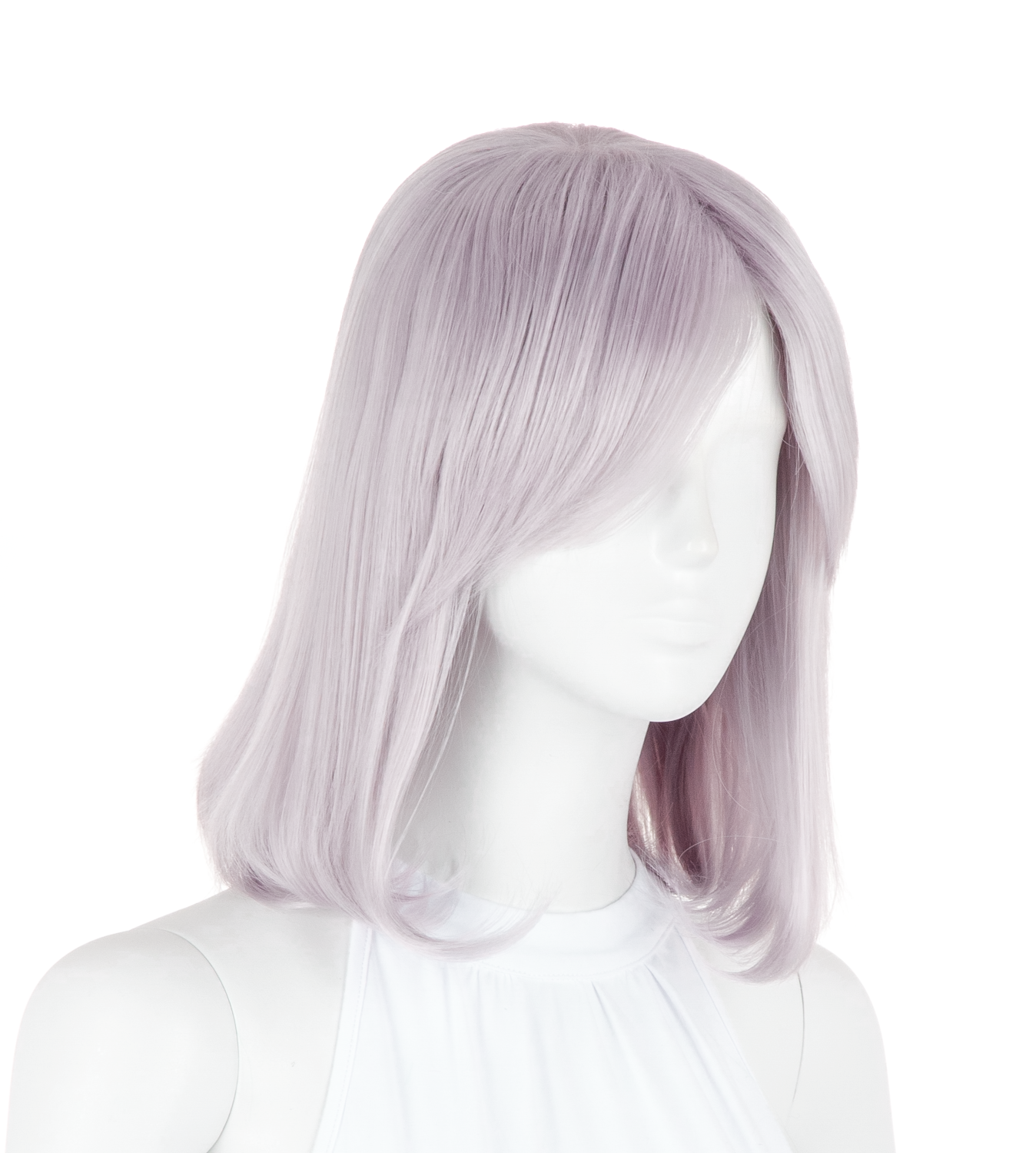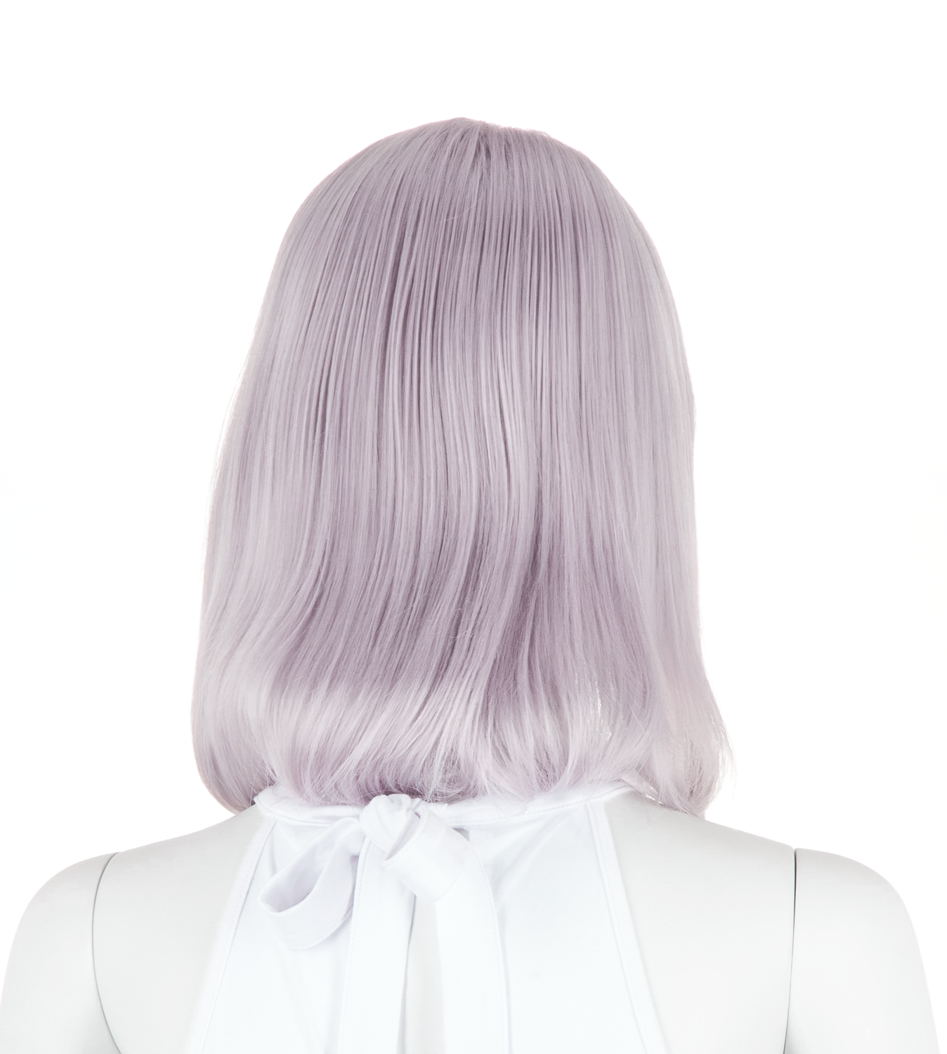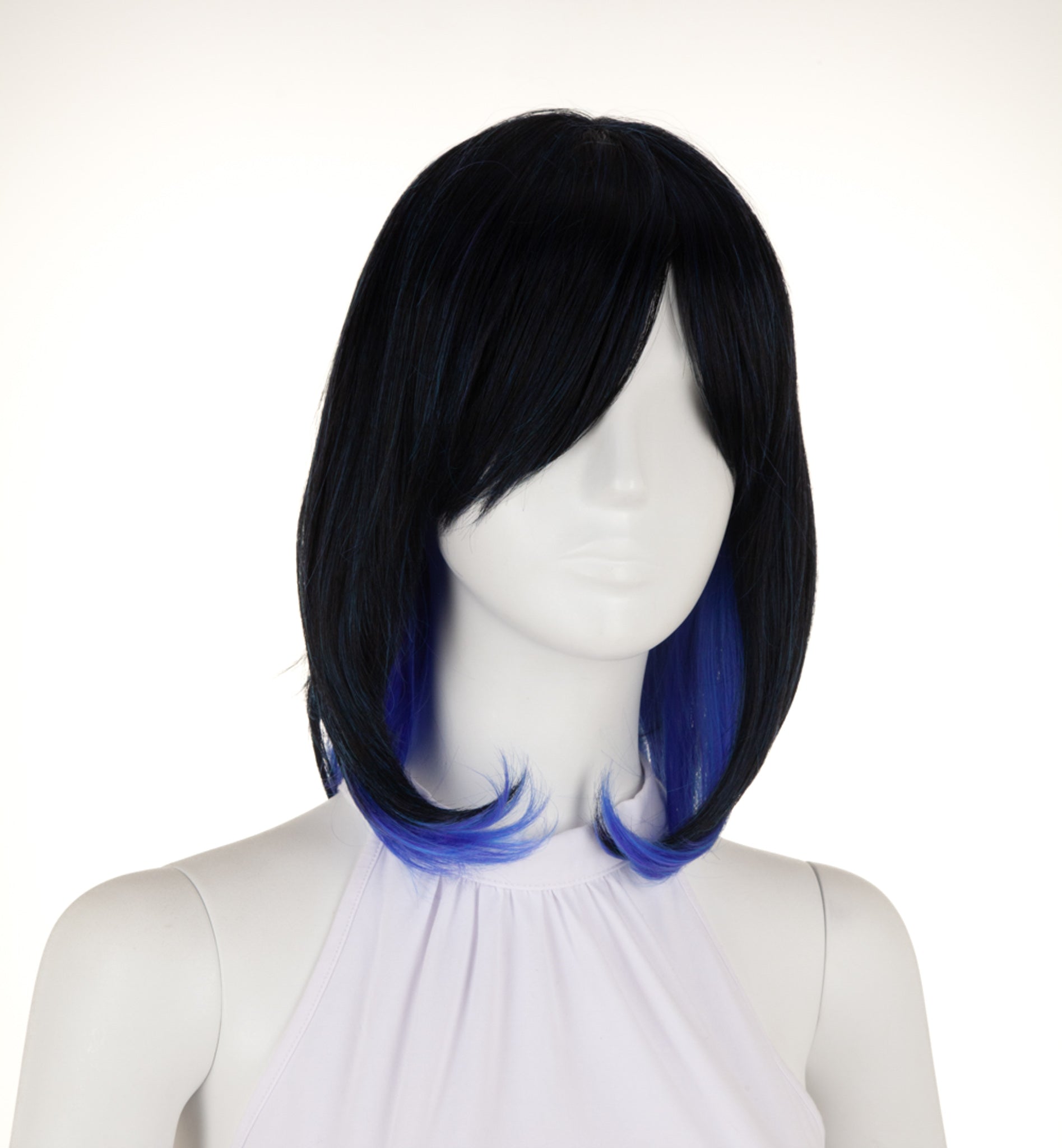 Inigo is a versatile medium-length bob for all your waifu needs. This style is feathered and flips out gently at the bottom where it sits at about the shoulders when worn. The hair measures about 16" (41 cm) from crown to end and bangs measure approx 4.5" (11.5 cm) from root to tip. There is no skin cap on this wig; it is crimped at the base of the hair on top for ease of spiking and styling.