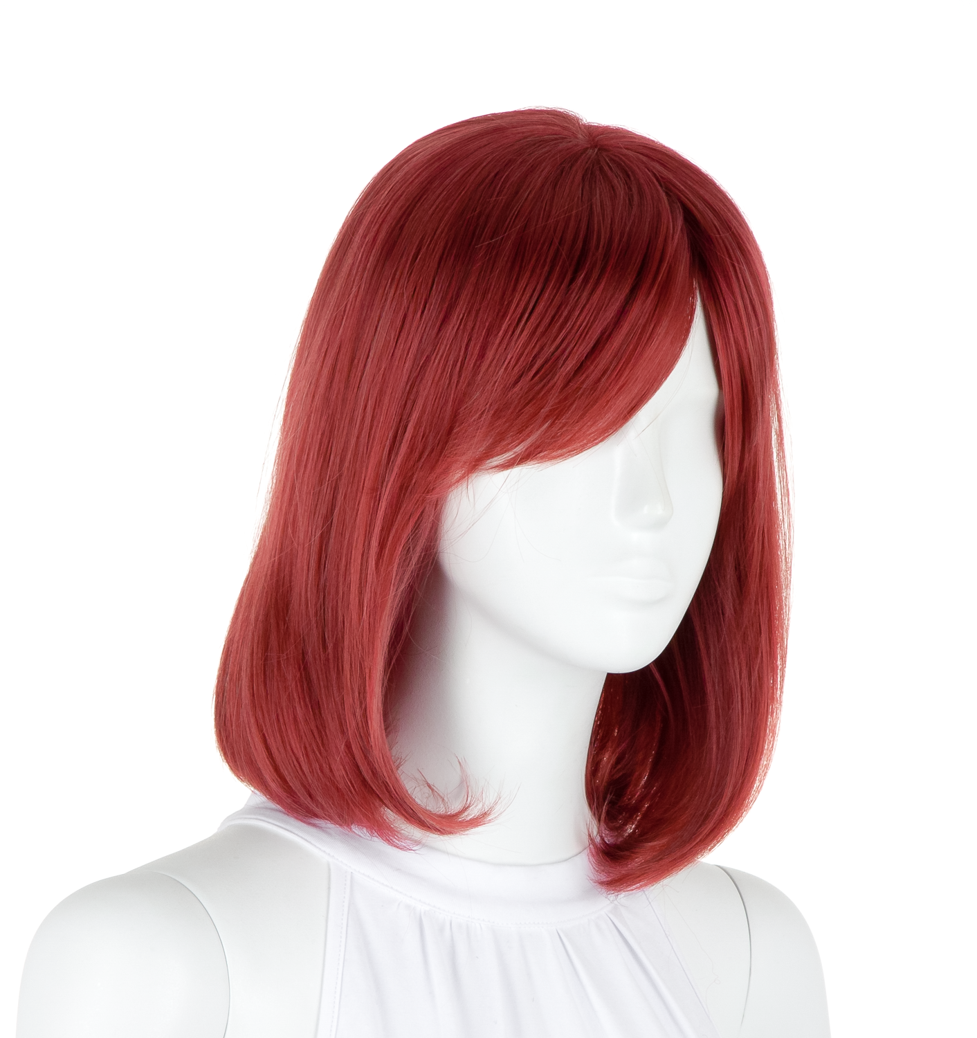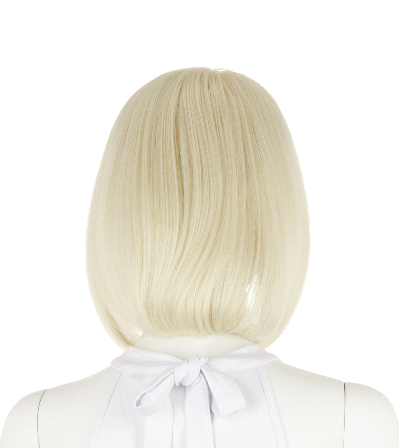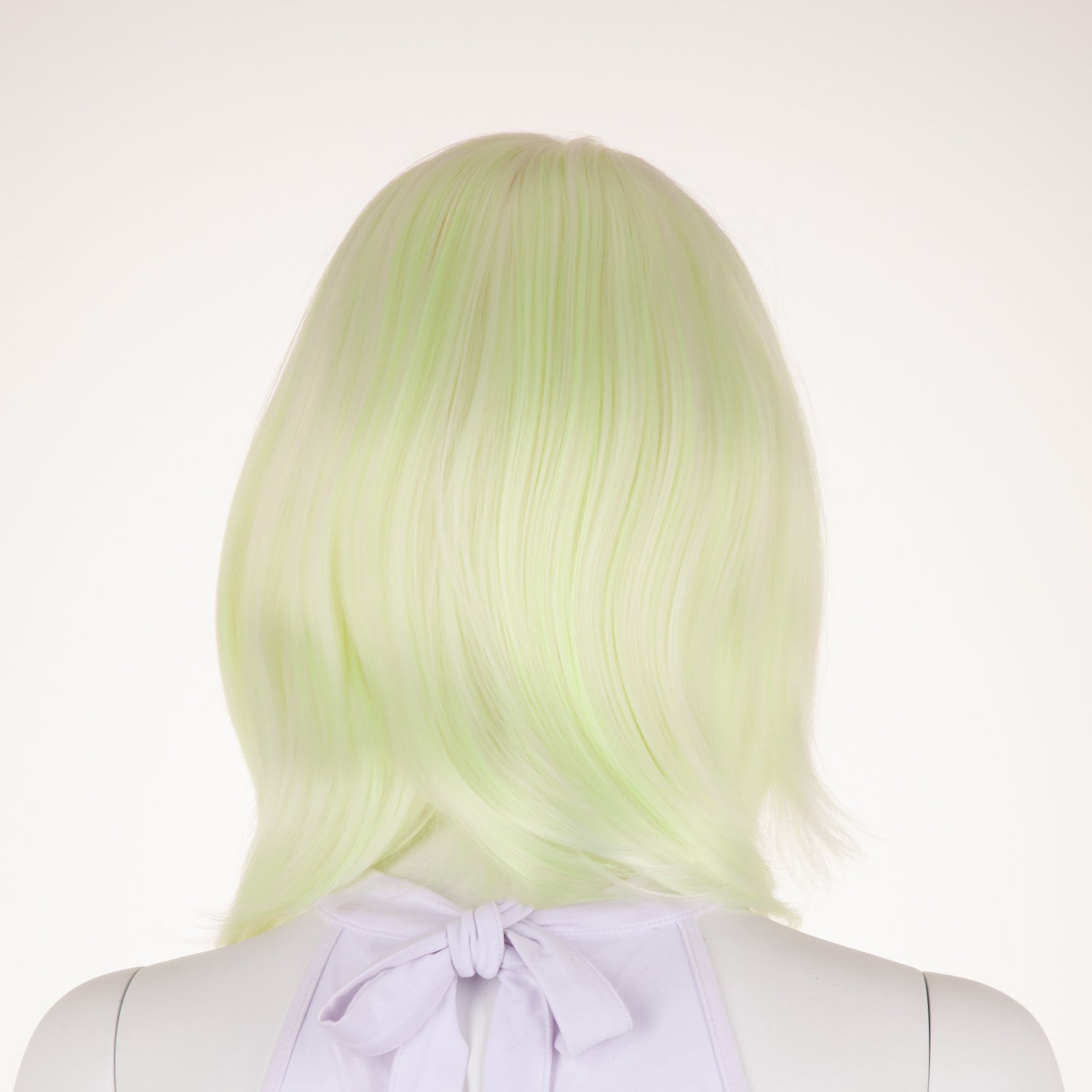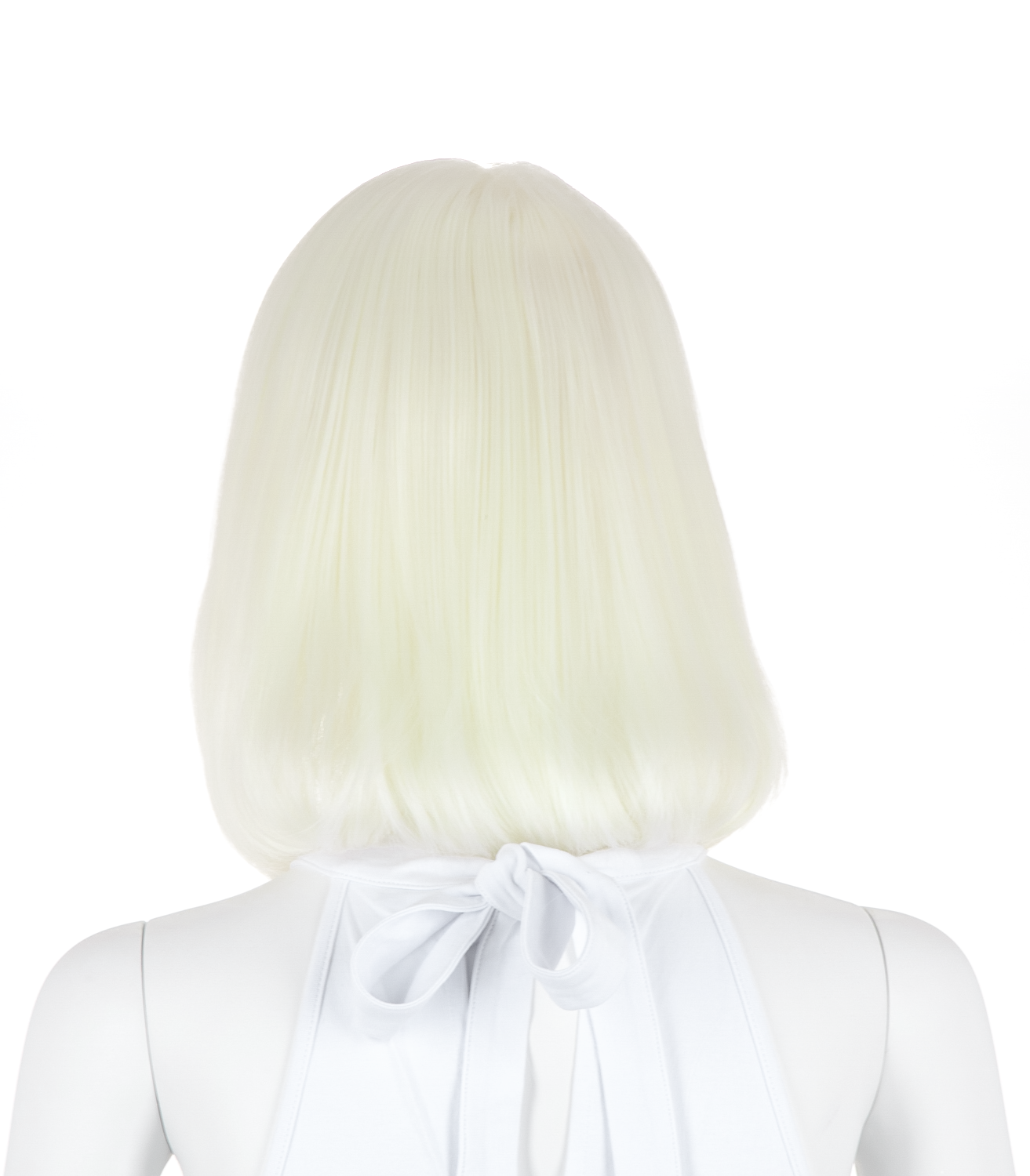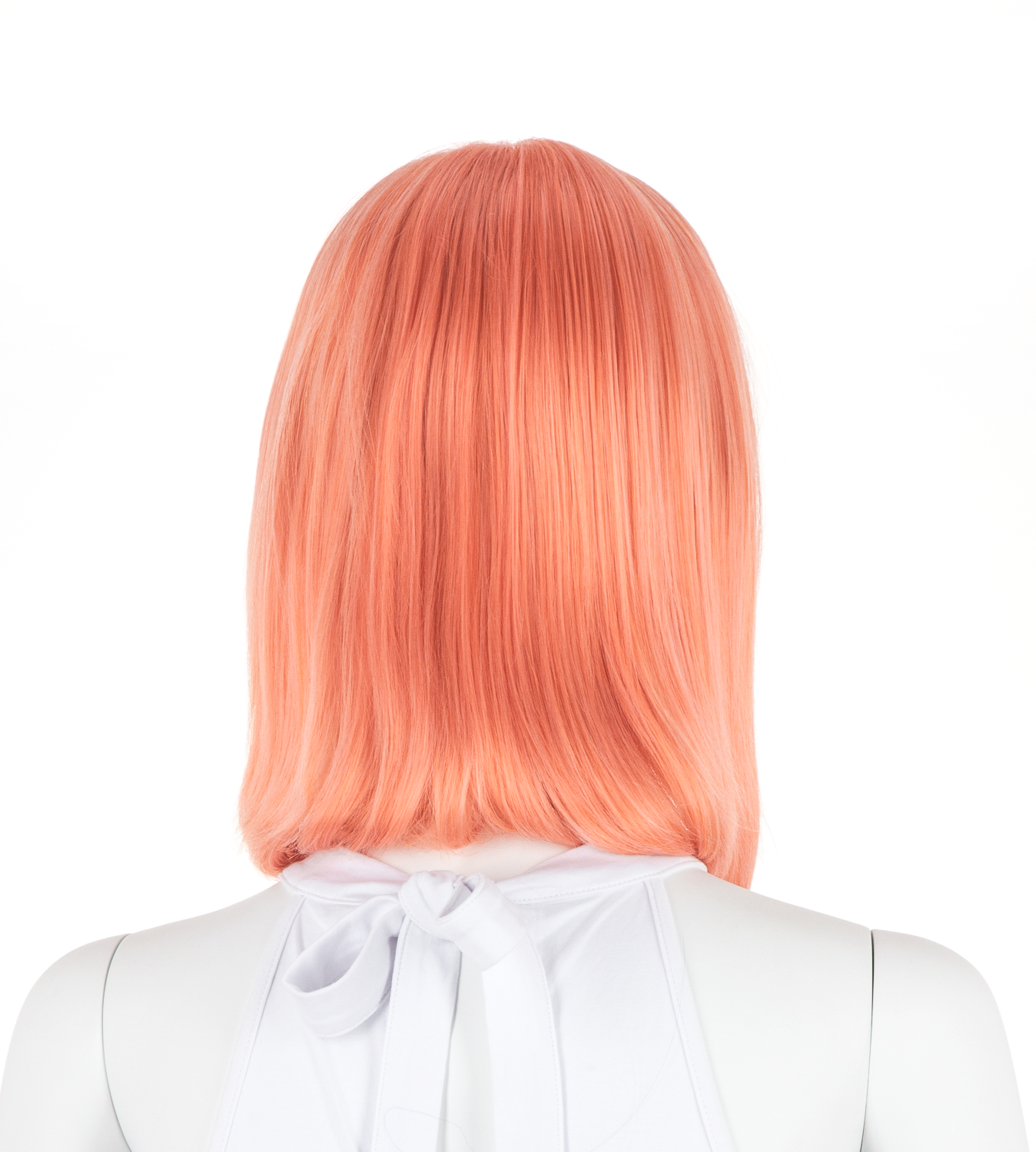 Inigo is a versatile medium-length bob for all your waifu needs. This style is feathered and flips out gently at the bottom where it sits at about the shoulders when worn. The hair measures about 16" (41 cm) from crown to end and bangs measure approx 4.5" (11.5 cm) from root to tip. There is no skin cap on this wig; it is crimped at the base of the hair on top for ease of spiking and styling.