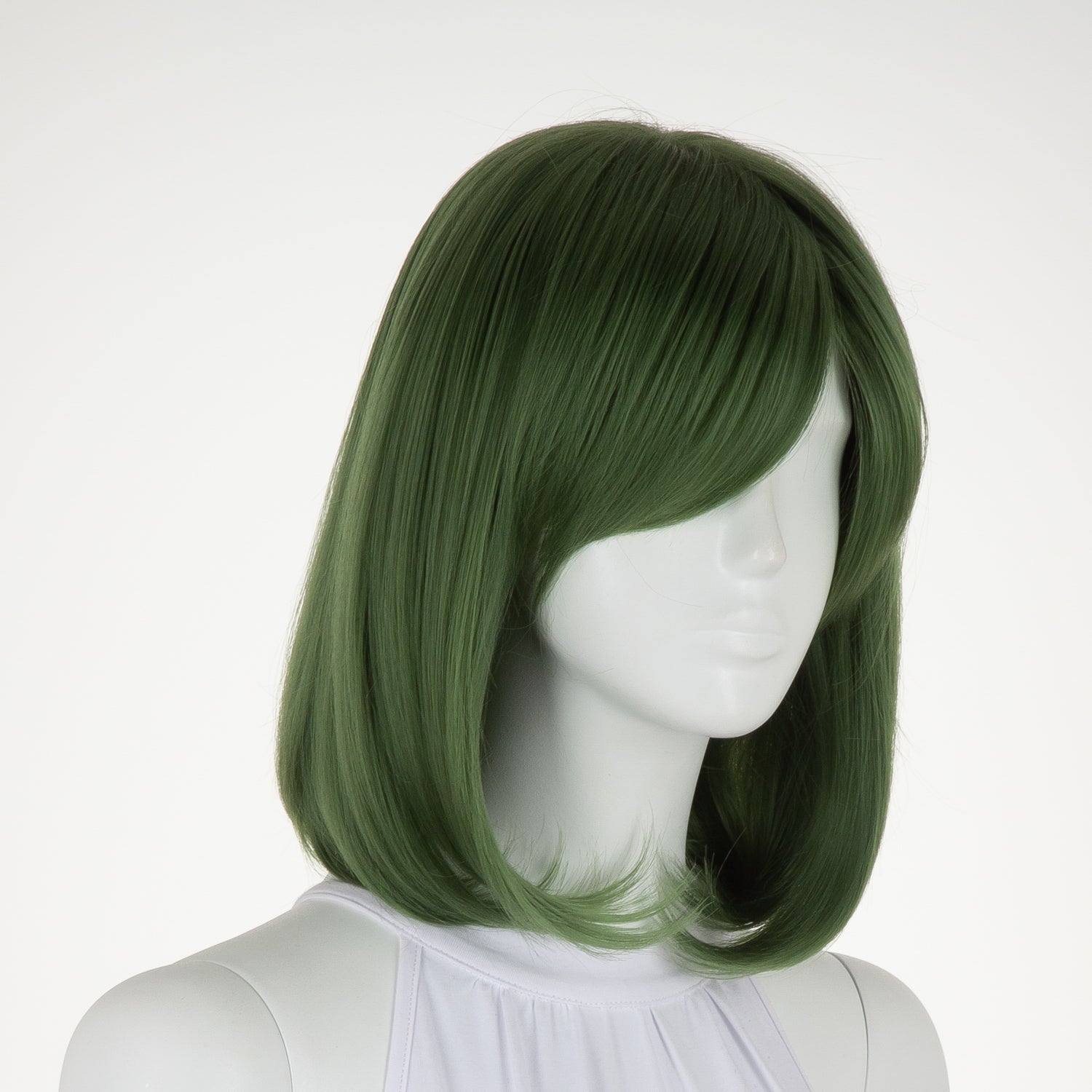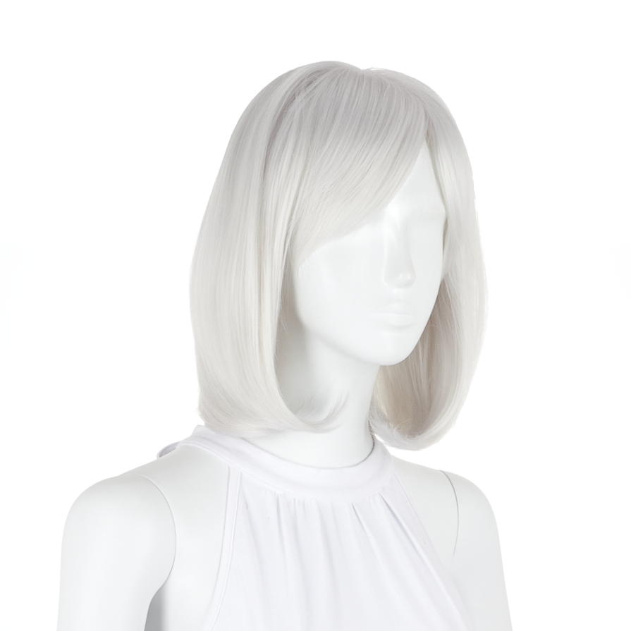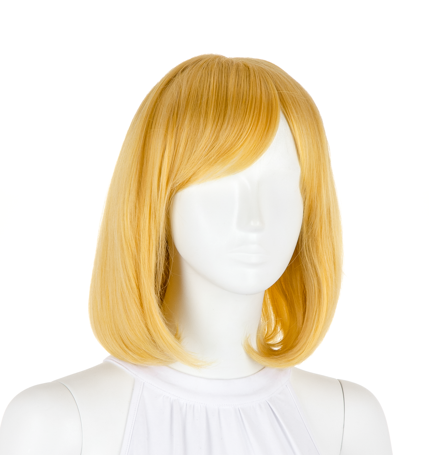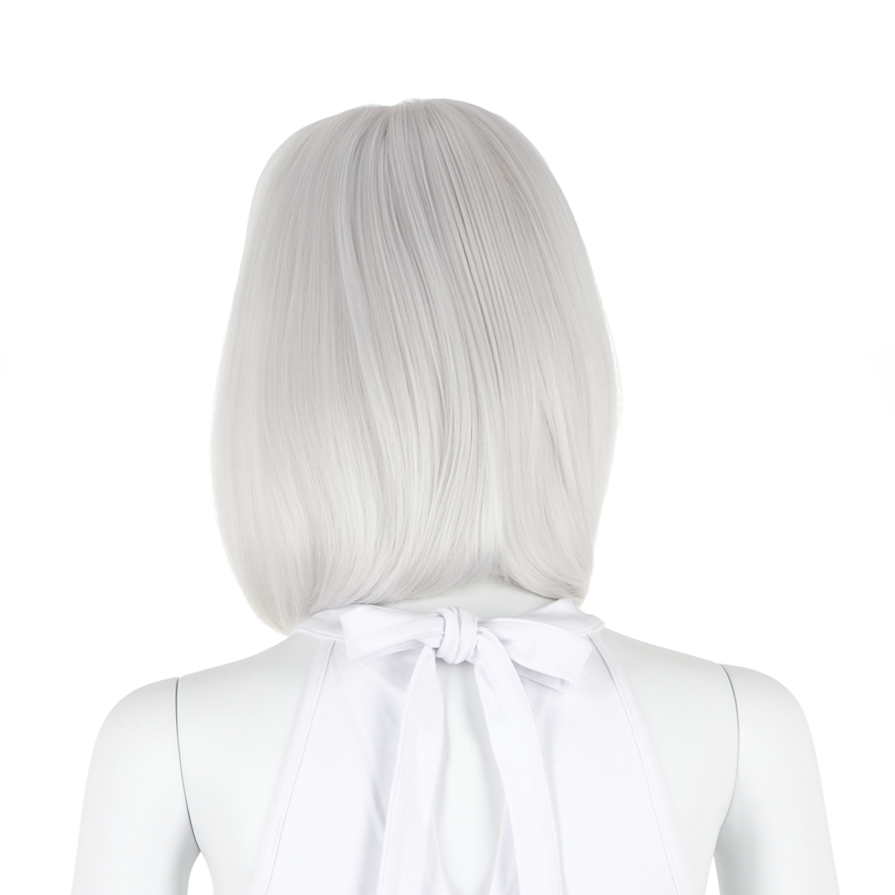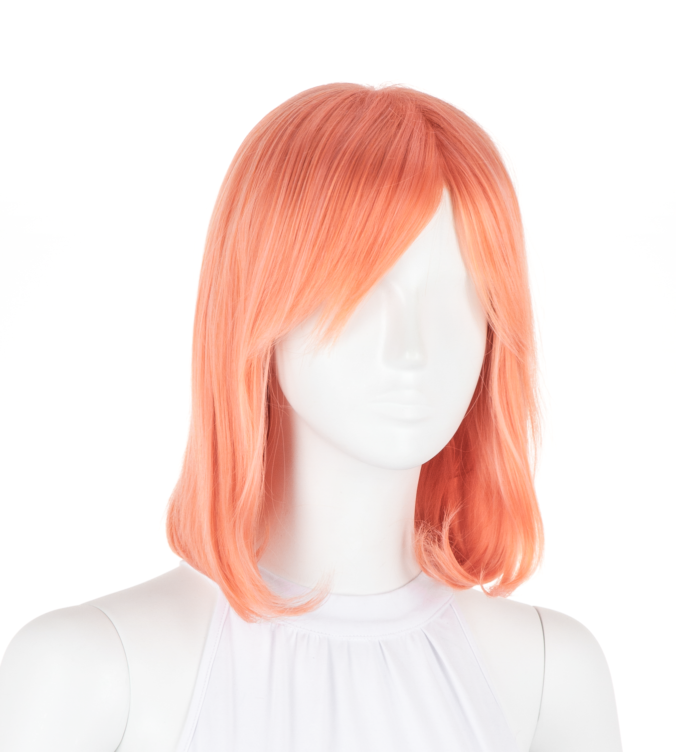 Inigo is a versatile medium-length bob for all your waifu needs. This style is feathered and flips out gently at the bottom where it sits at about the shoulders when worn. The hair measures about 16" (41 cm) from crown to end and bangs measure approx 4.5" (11.5 cm) from root to tip. There is no skin cap on this wig; it is crimped at the base of the hair on top for ease of spiking and styling.