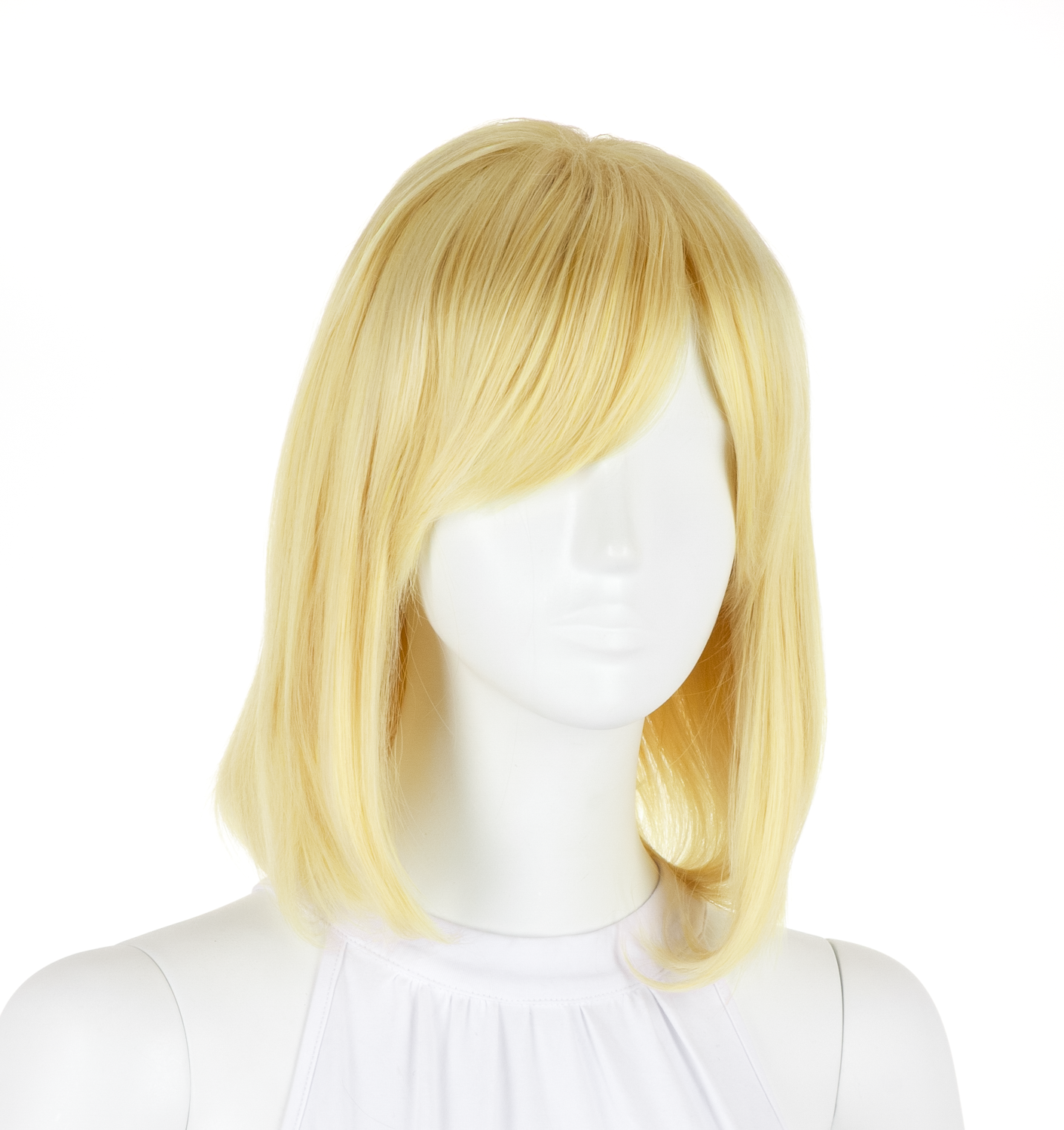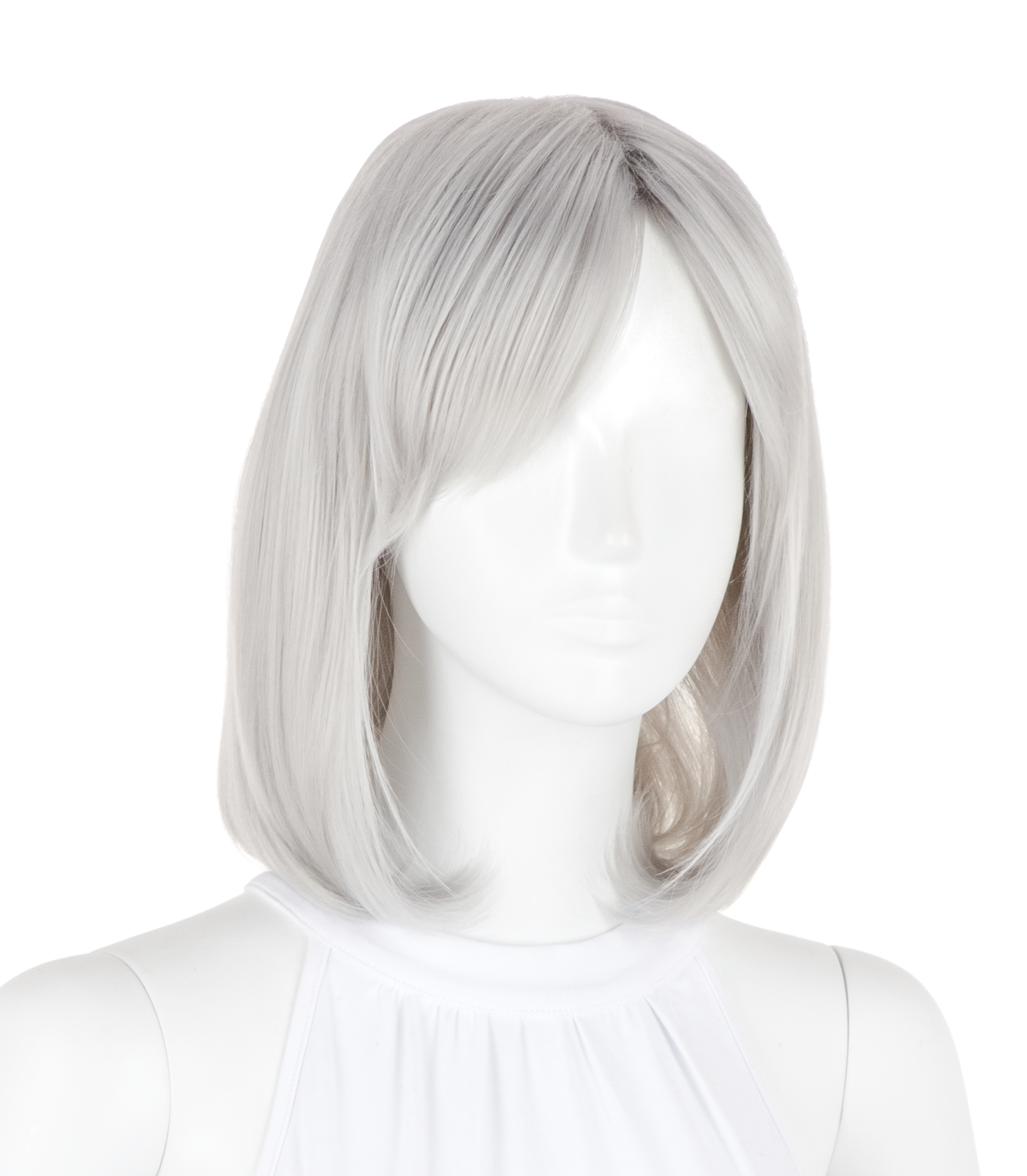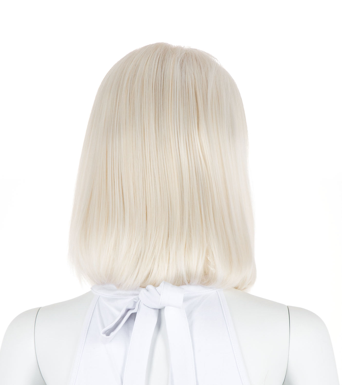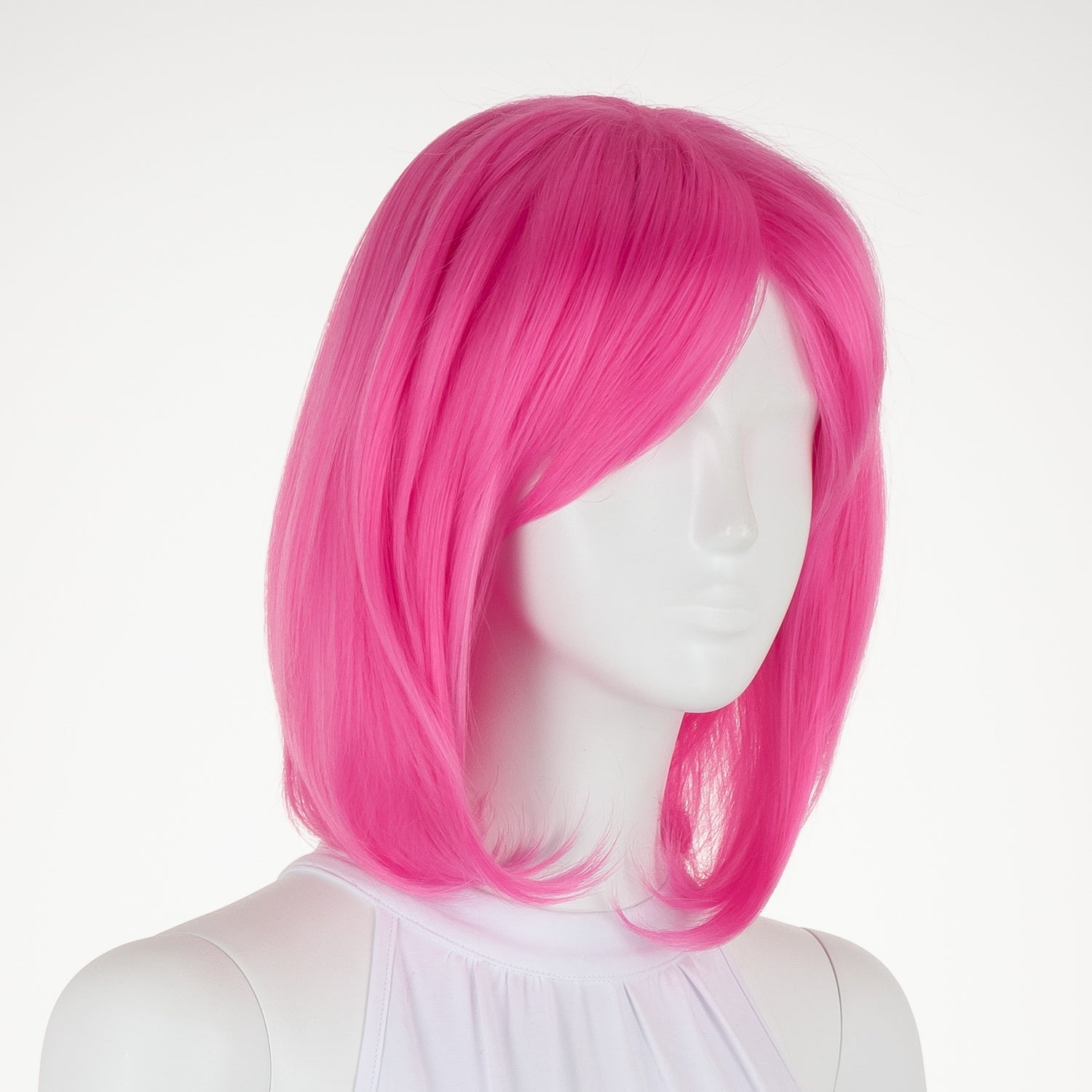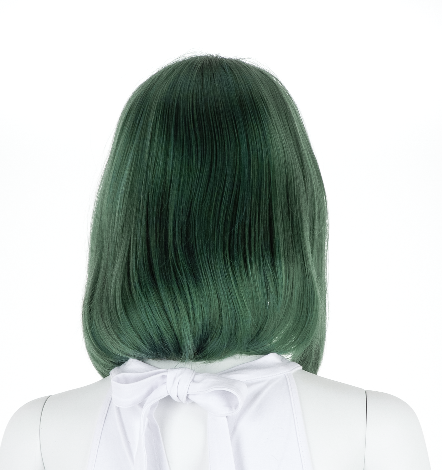 Inigo is a versatile medium-length bob for all your waifu needs. This style is feathered and flips out gently at the bottom where it sits at about the shoulders when worn. The hair measures about 16" (41 cm) from crown to end and bangs measure approx 4.5" (11.5 cm) from root to tip. There is no skin cap on this wig; it is crimped at the base of the hair on top for ease of spiking and styling.