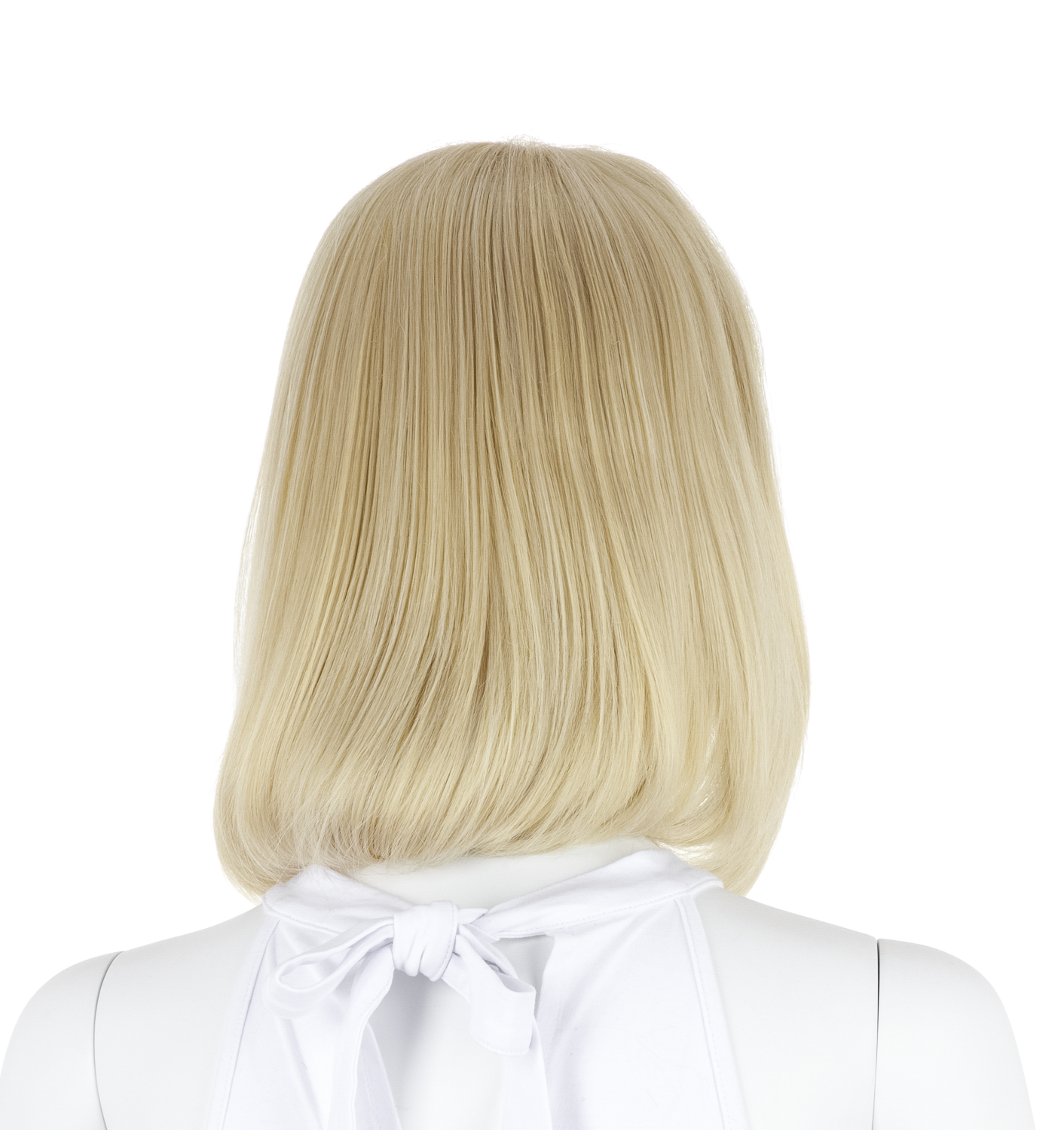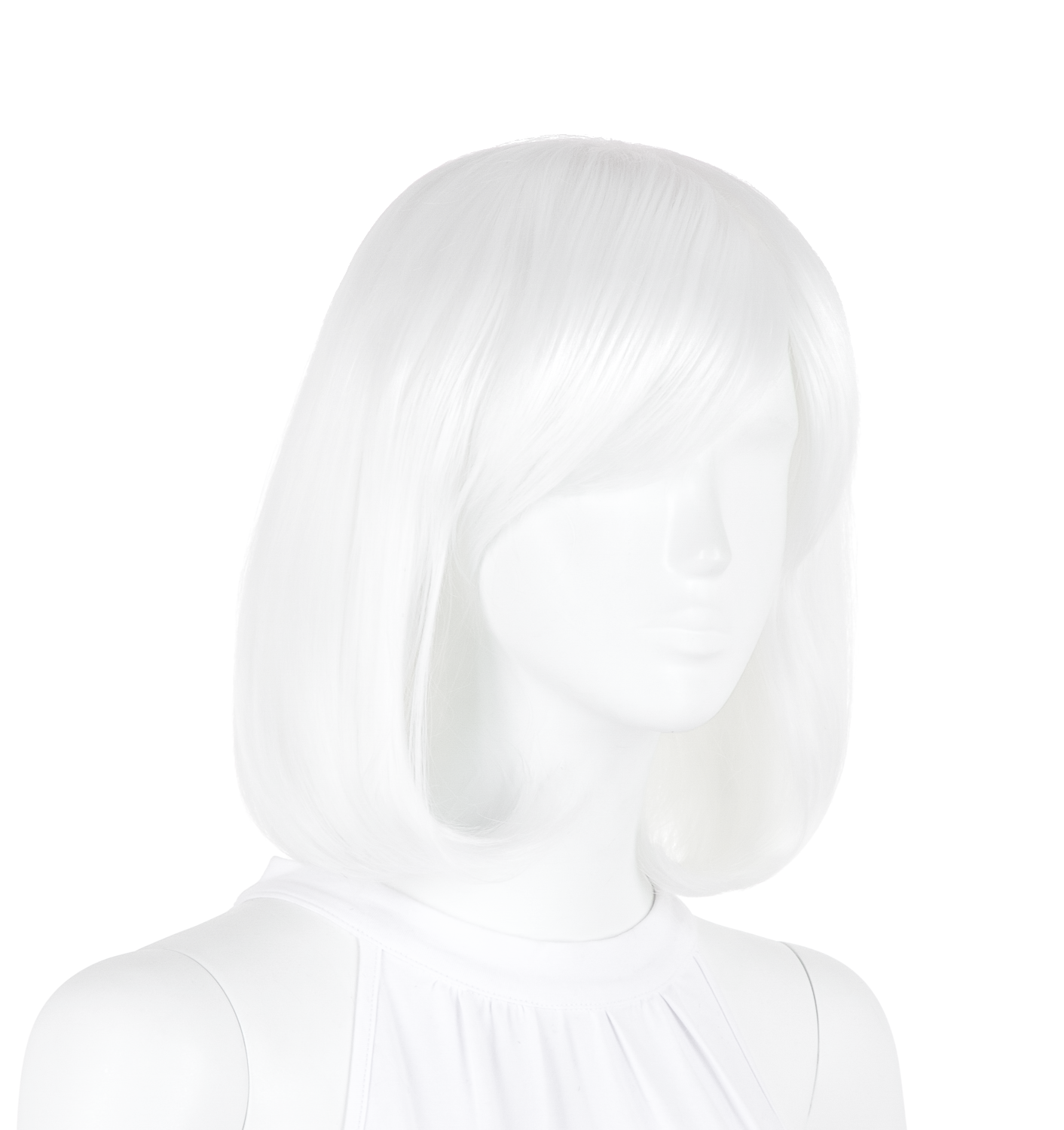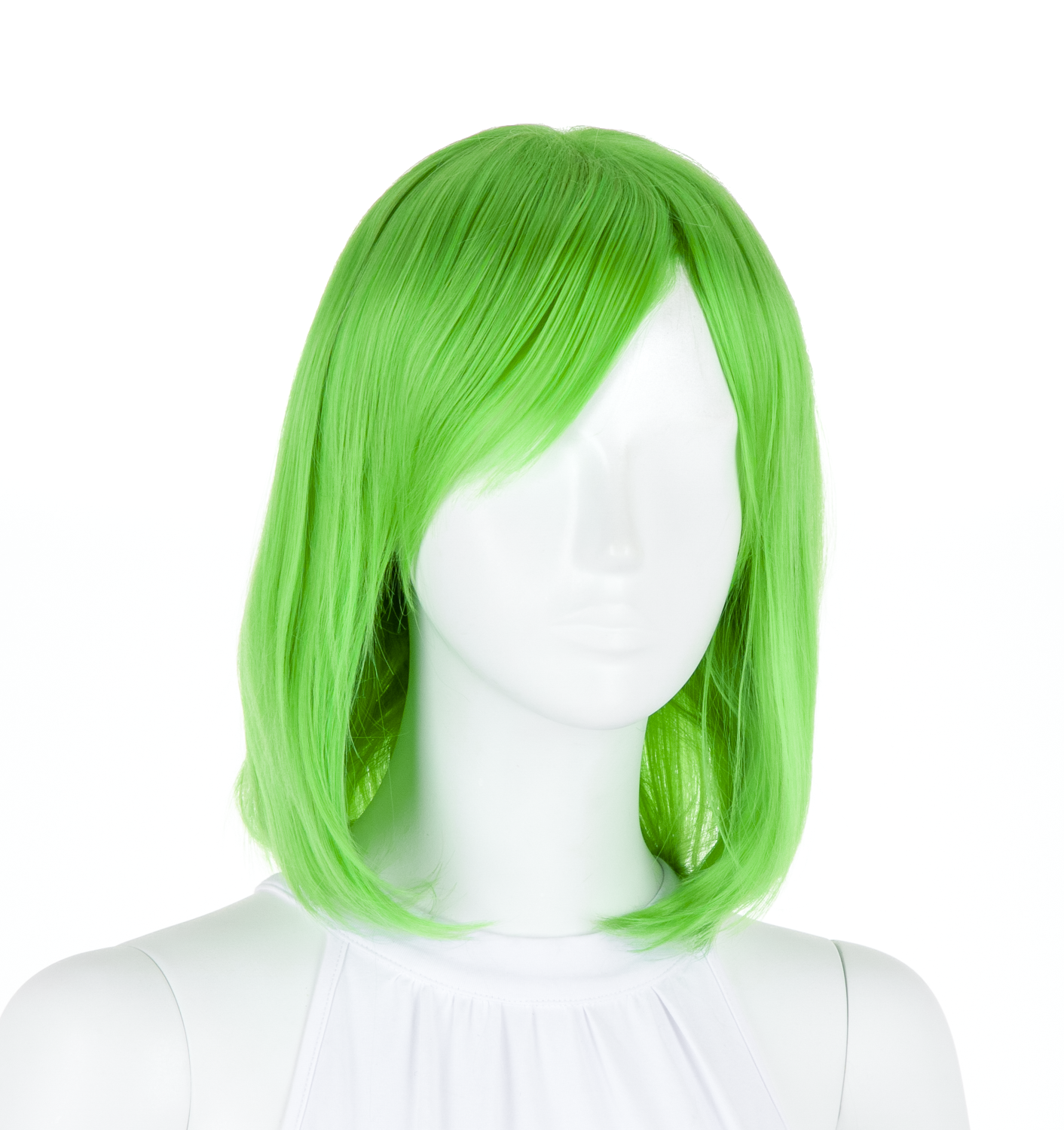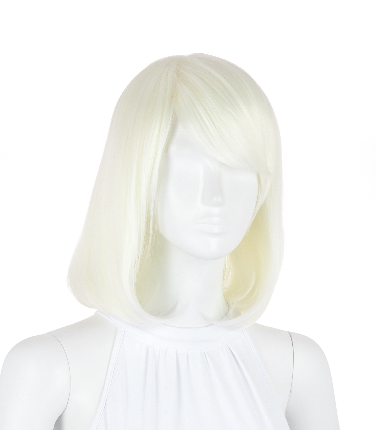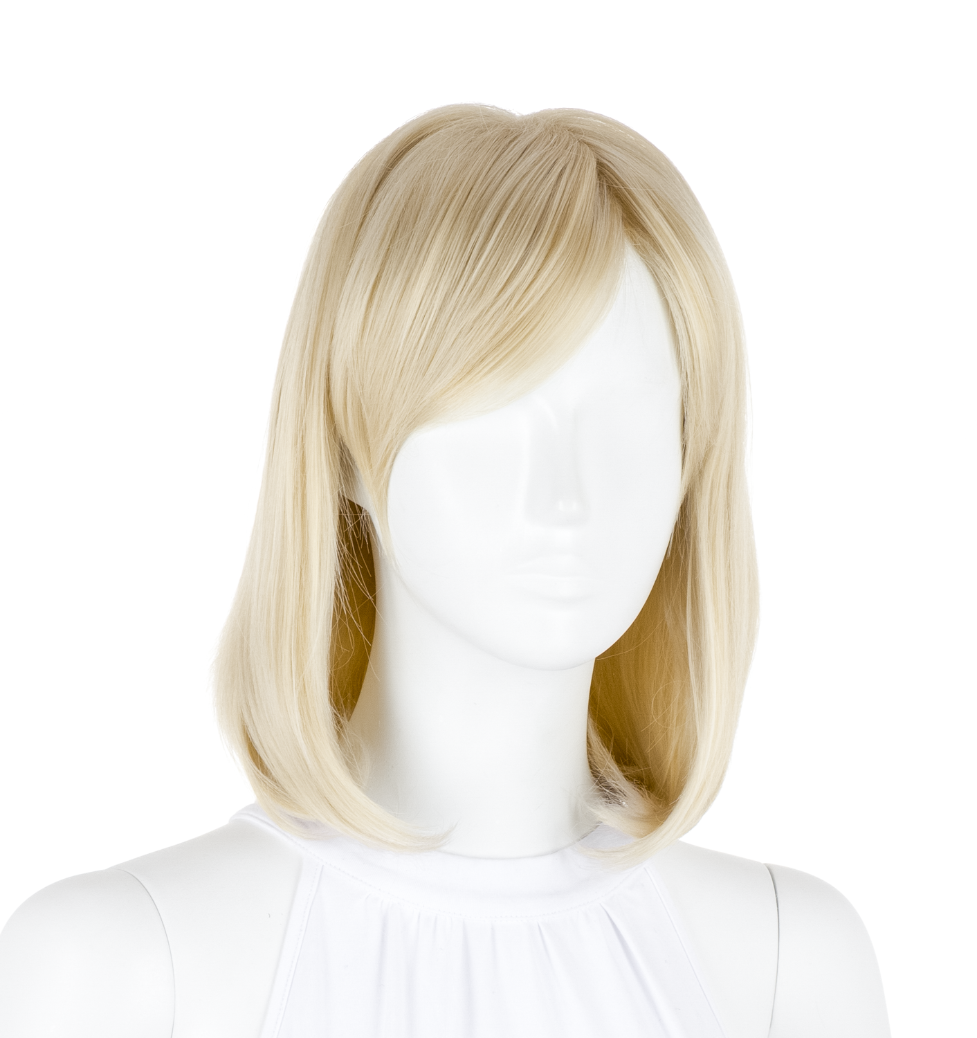 Inigo is a versatile medium-length bob for all your waifu needs. This style is feathered and flips out gently at the bottom where it sits at about the shoulders when worn. The hair measures about 16" (41 cm) from crown to end and bangs measure approx 4.5" (11.5 cm) from root to tip. There is no skin cap on this wig; it is crimped at the base of the hair on top for ease of spiking and styling.